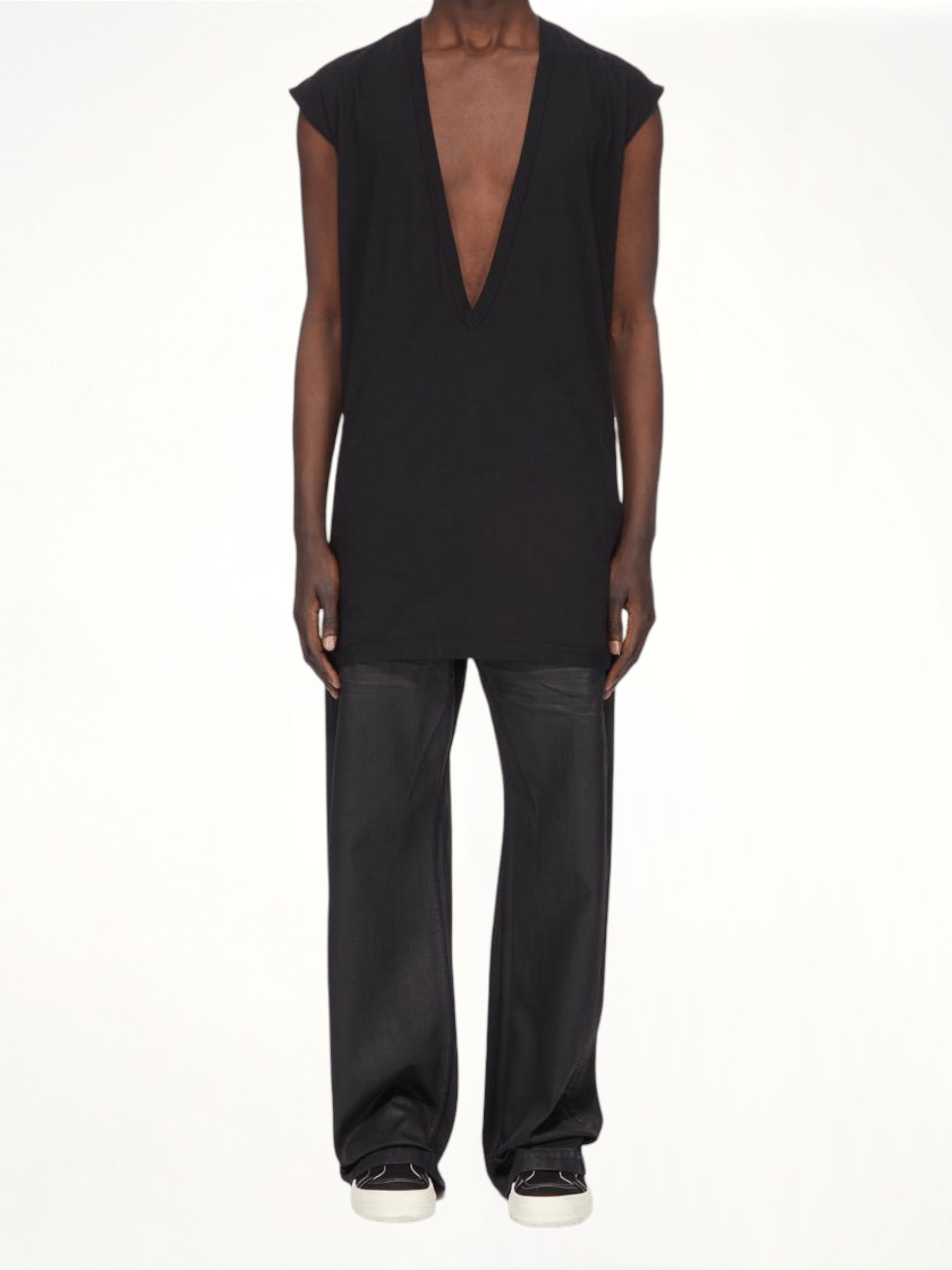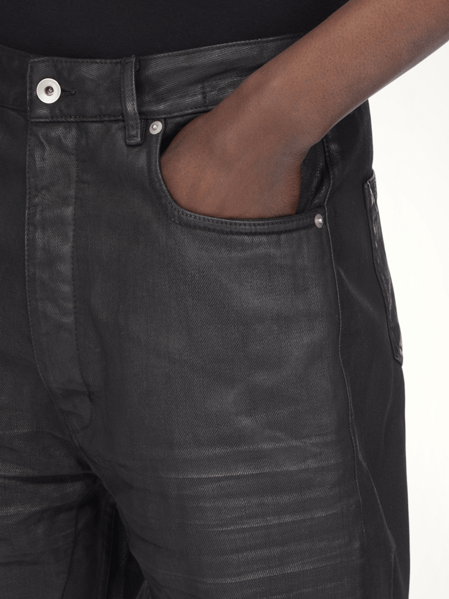 Rick Owens DRKSHDW's Geth Jeans in Black Wax is a bold statement piece that combines avant-garde design with everyday wearability. These jeans feature a sleek, waxed finish that adds a touch of edge to any outfit.