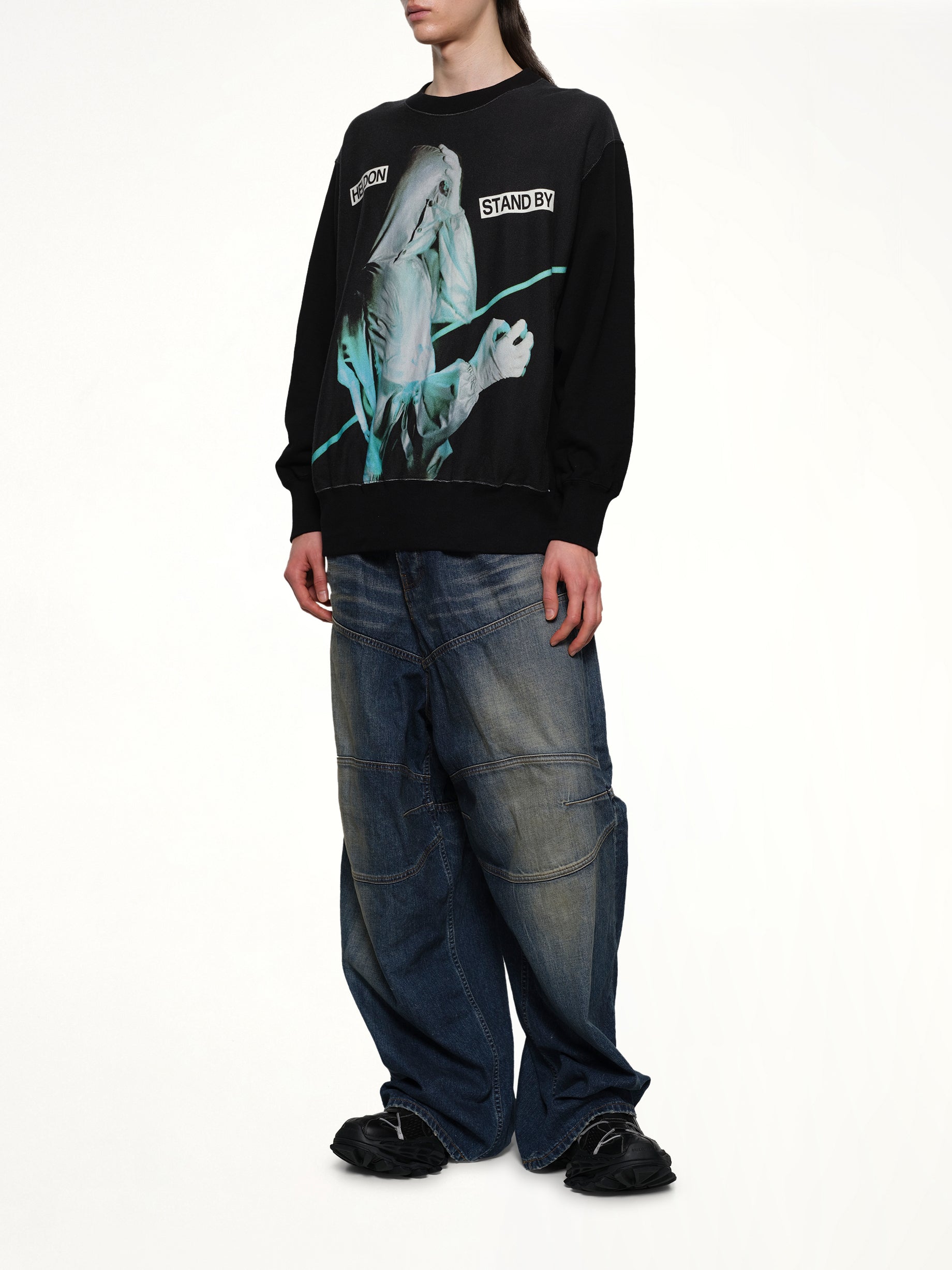 Undercover's Heldon Stand By L/S T-Shirt in Black is a stylish and versatile piece that embodies the brand's avant-garde aesthetic. Perfect for layering or wearing on its own, this long-sleeve tee offers both comfort and a statement look.
