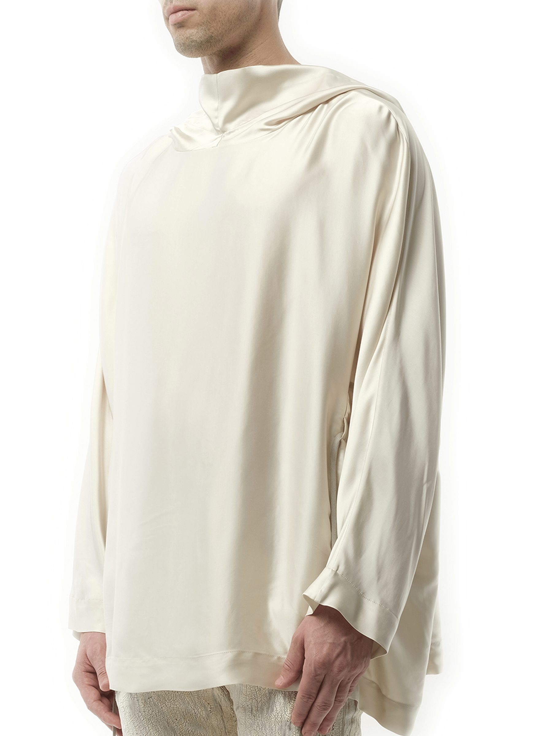 Rick Owens' Hooded Tunic in Dinge combines comfort and high fashion with its oversized, relaxed fit. The tunic features a large hood, dropped shoulders, and an elongated silhouette, creating a dramatic, street-inspired look.