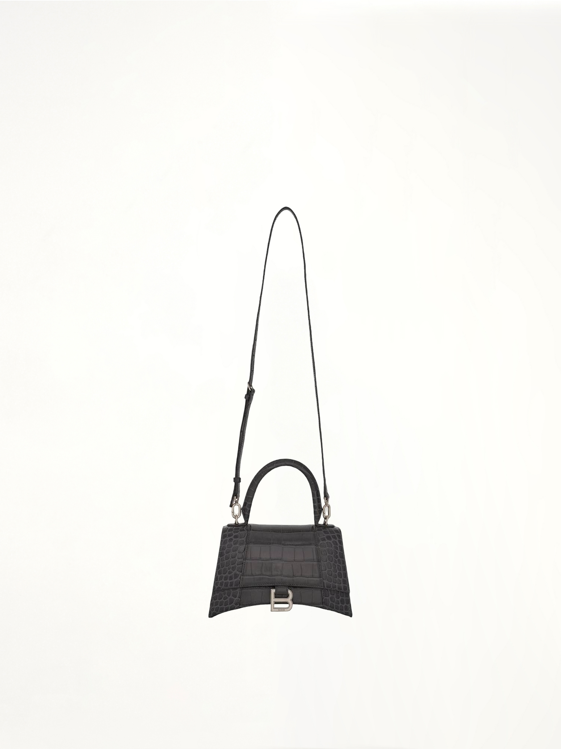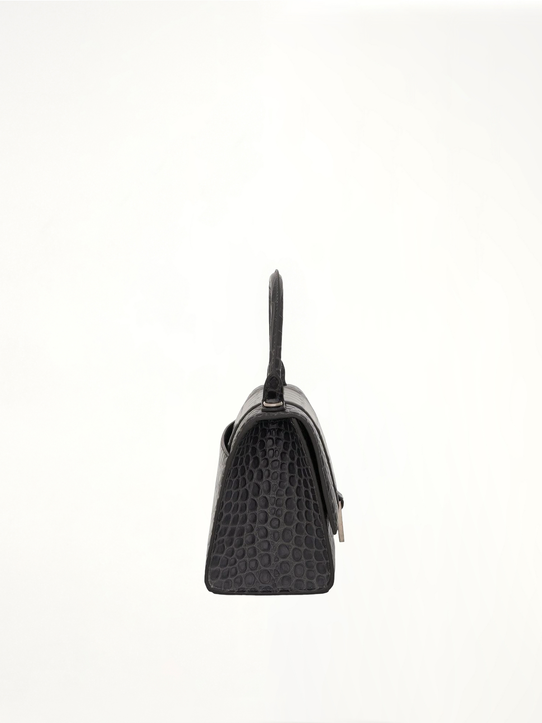 Hourglass Small Croco Embossed Bag in Dark Grey