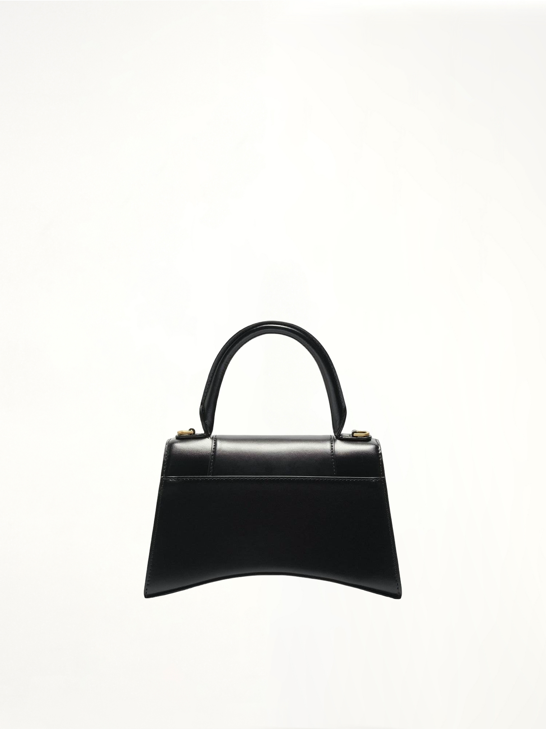 Hourglass Small Handbag in Box Calfskin in Black with Gold Plaque