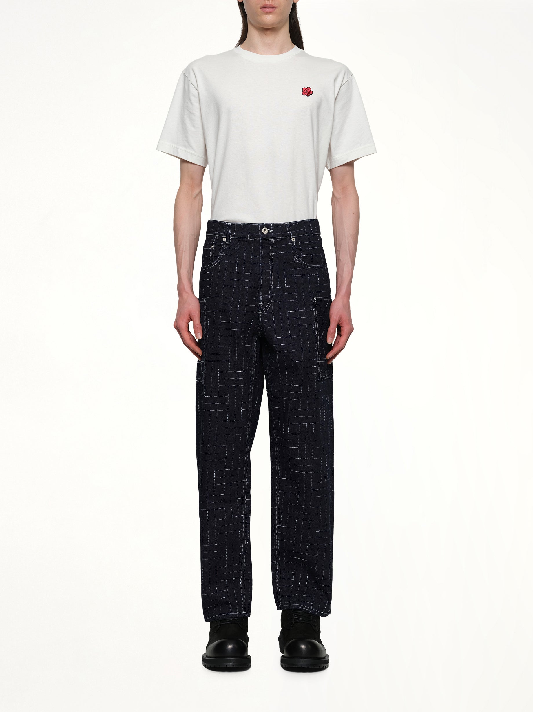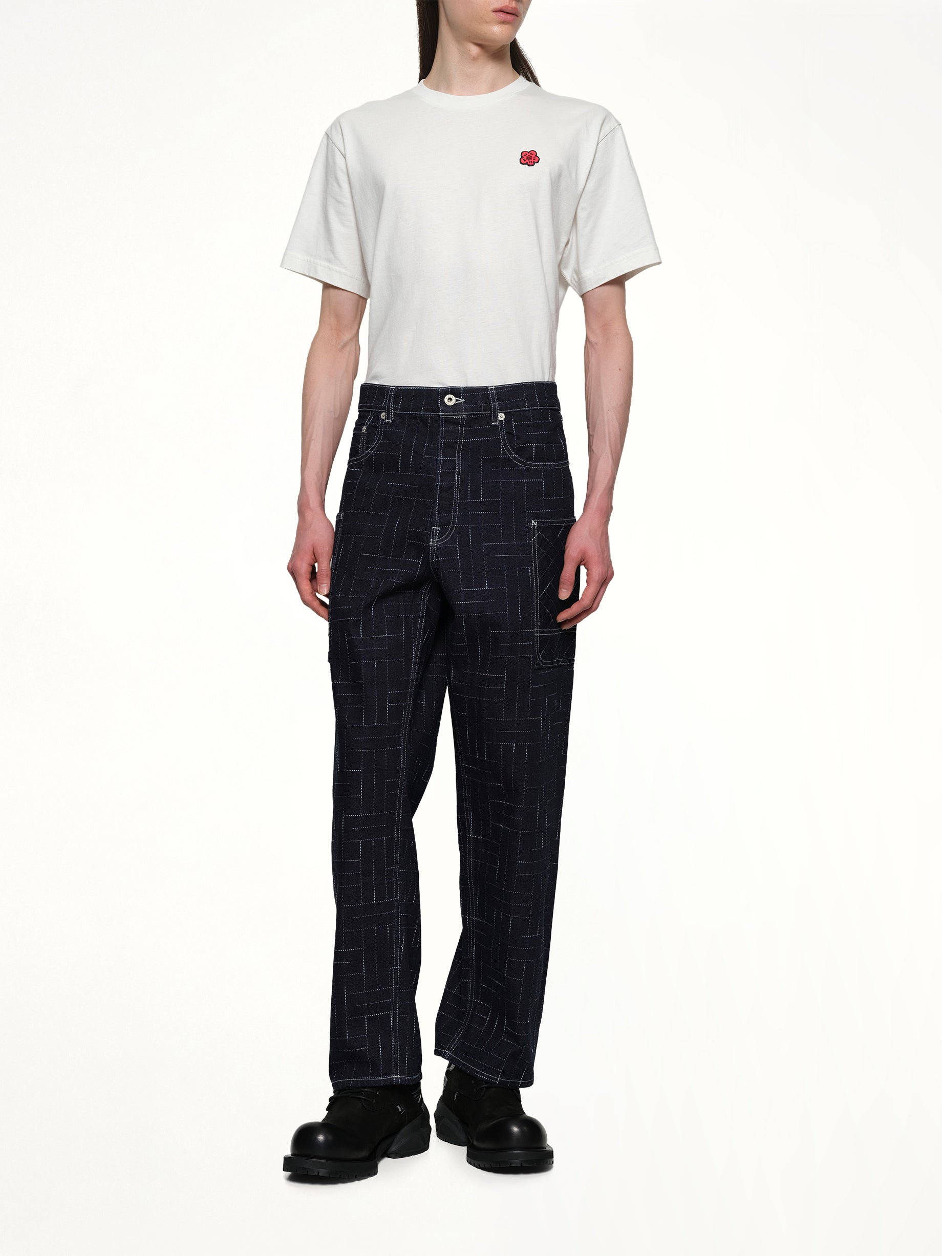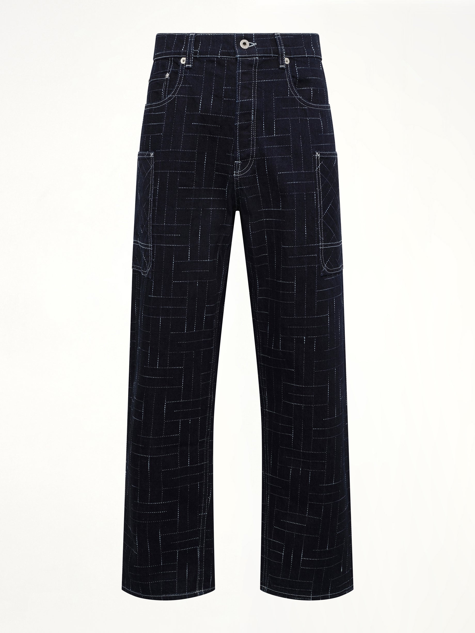 Kenzo's Kenzo Weave Cargo Monkey Fit Jeans in Rinse Blue Denim is a stylish and functional addition to any wardrobe. These jeans offer a unique blend of contemporary design and practical features.