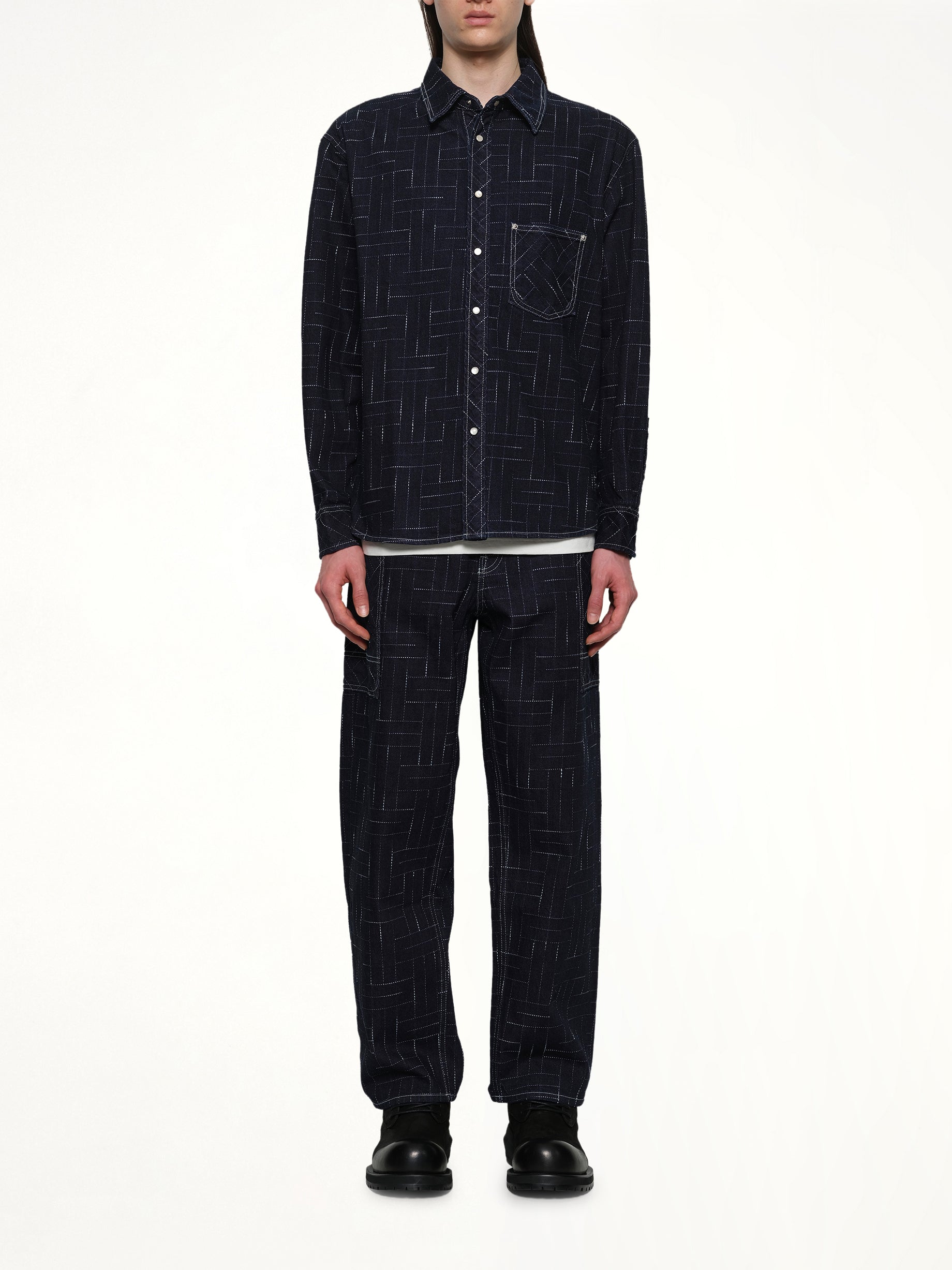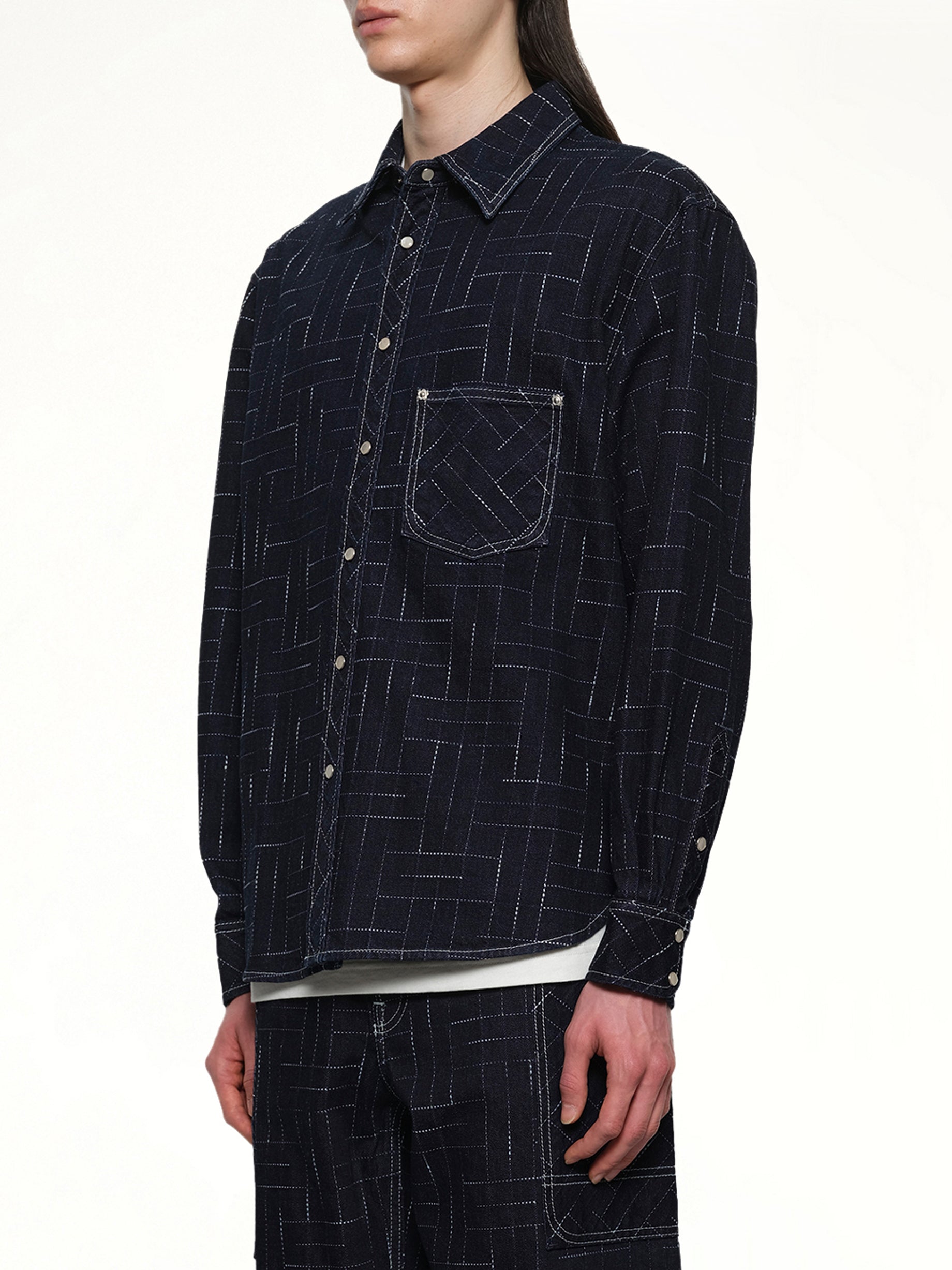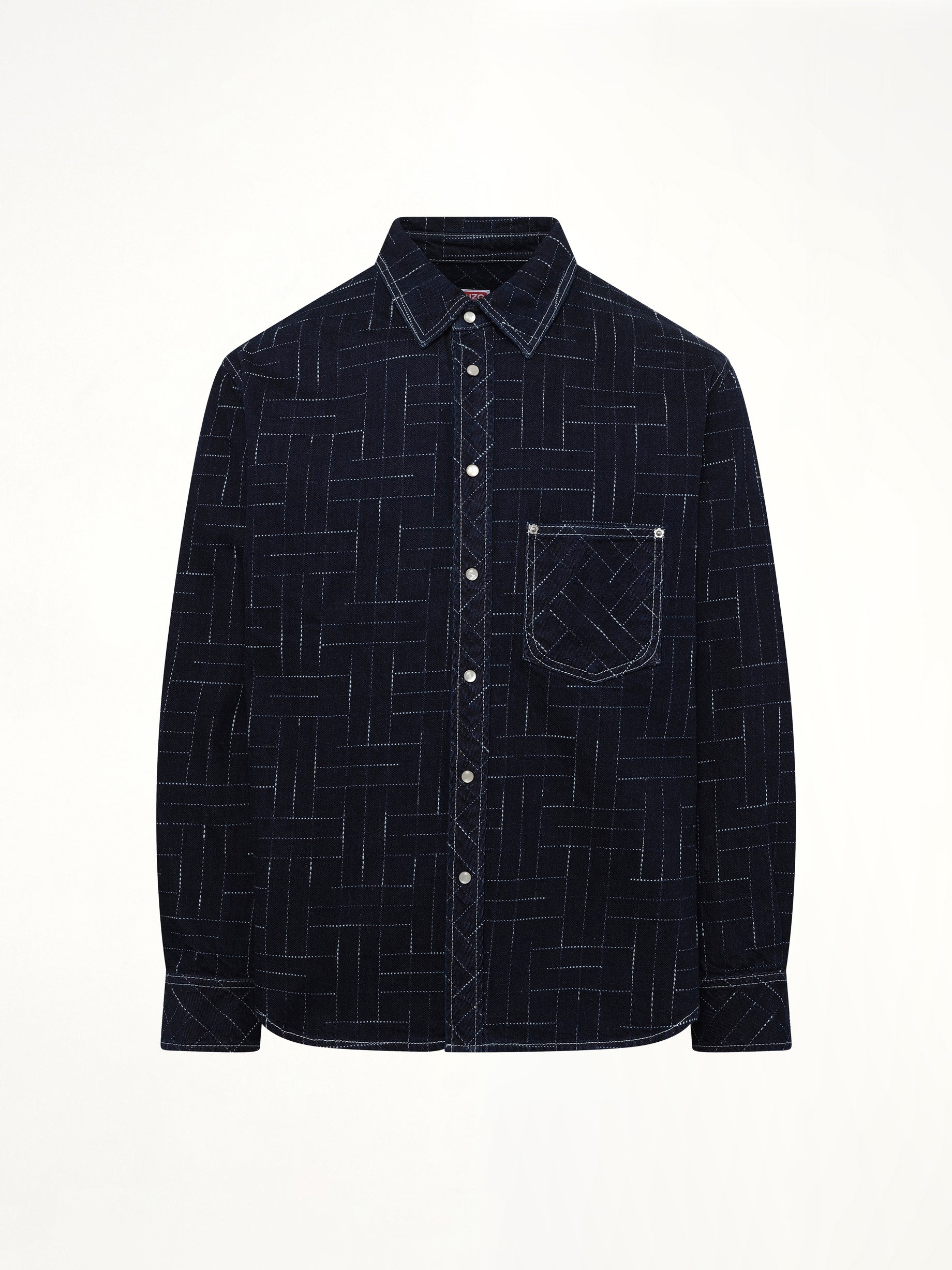 Kenzo Weave Casual Shirt in Rinse Blue Denim