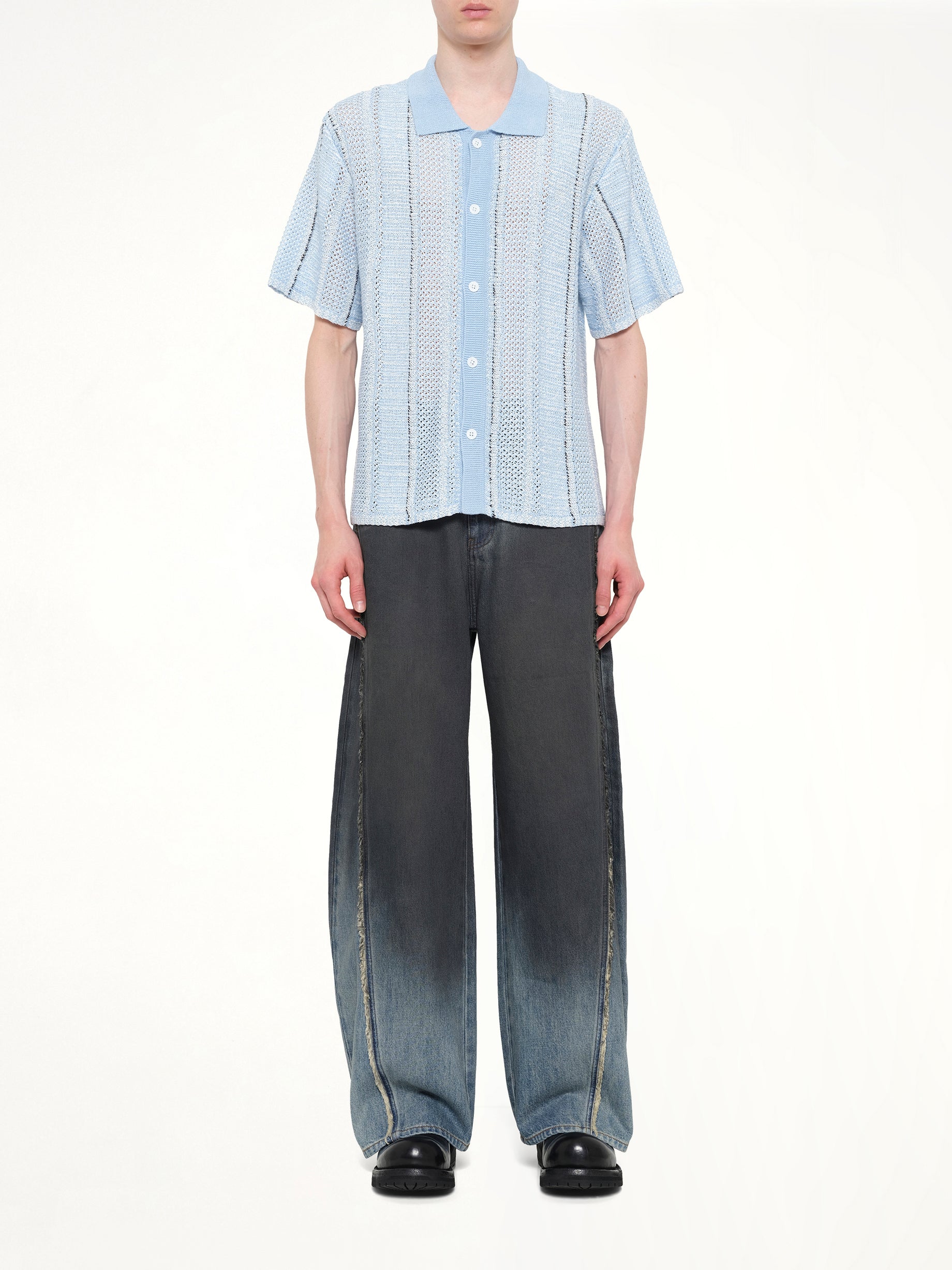 Feng Chen Wang's Knited Shirt in Blue Check is a stylish and contemporary piece that combines traditional patterns with modern design. This shirt is perfect for those looking to make a bold fashion statement while maintaining a classic look.