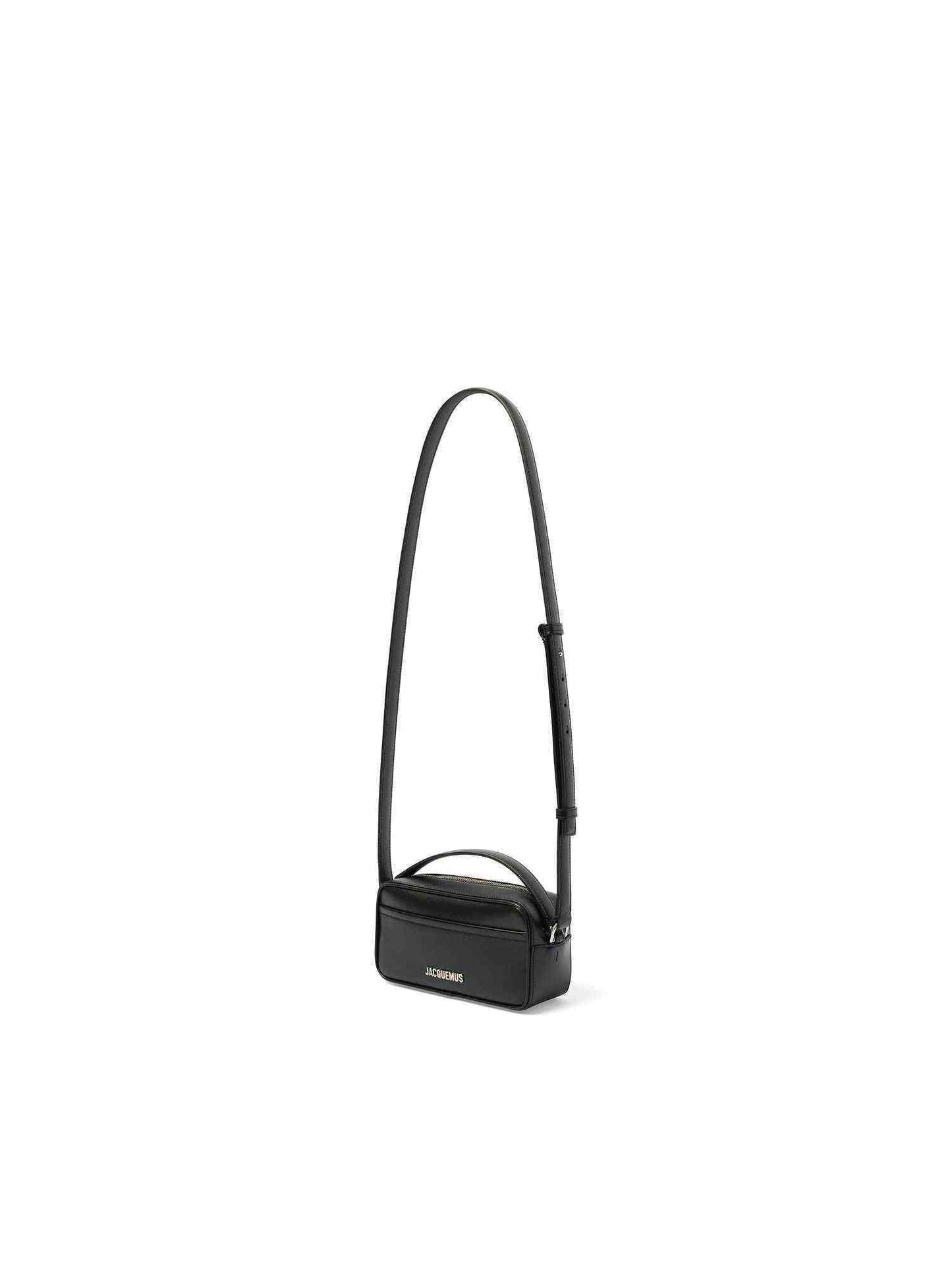 Jacquemus' Le Baneto Crossbody Bag in Black, a compact yet striking accessory designed with functionality and modern flair. The rectangular structure and front logo plaque make it a versatile staple for daily use.