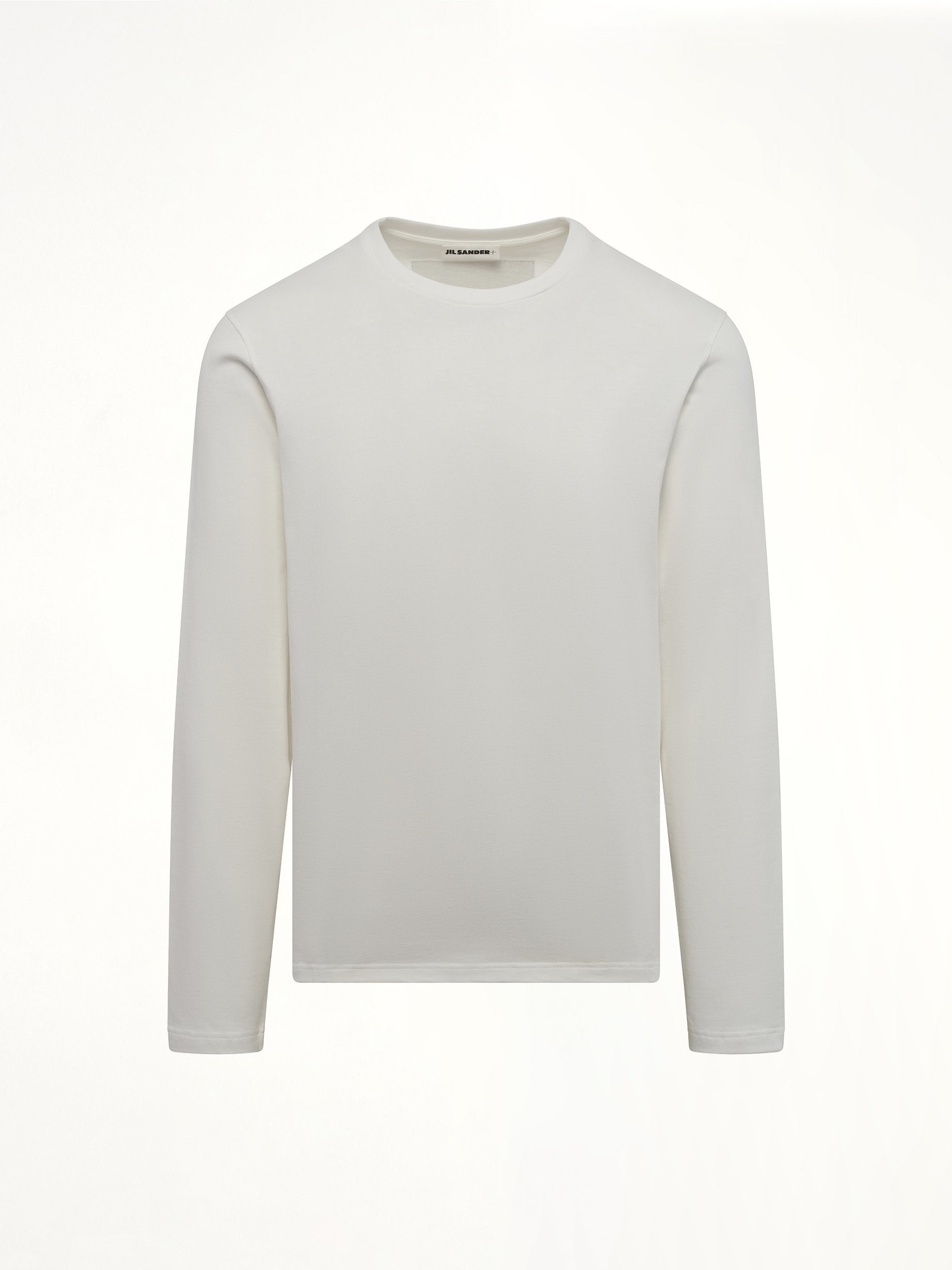 Jil Sander's Leather Patch Long Sleeve T-Shirt in Porcelain is a sophisticated blend of minimalism and modern design. This piece offers a unique touch with its leather patch detailing, making it a standout addition to any wardrobe.