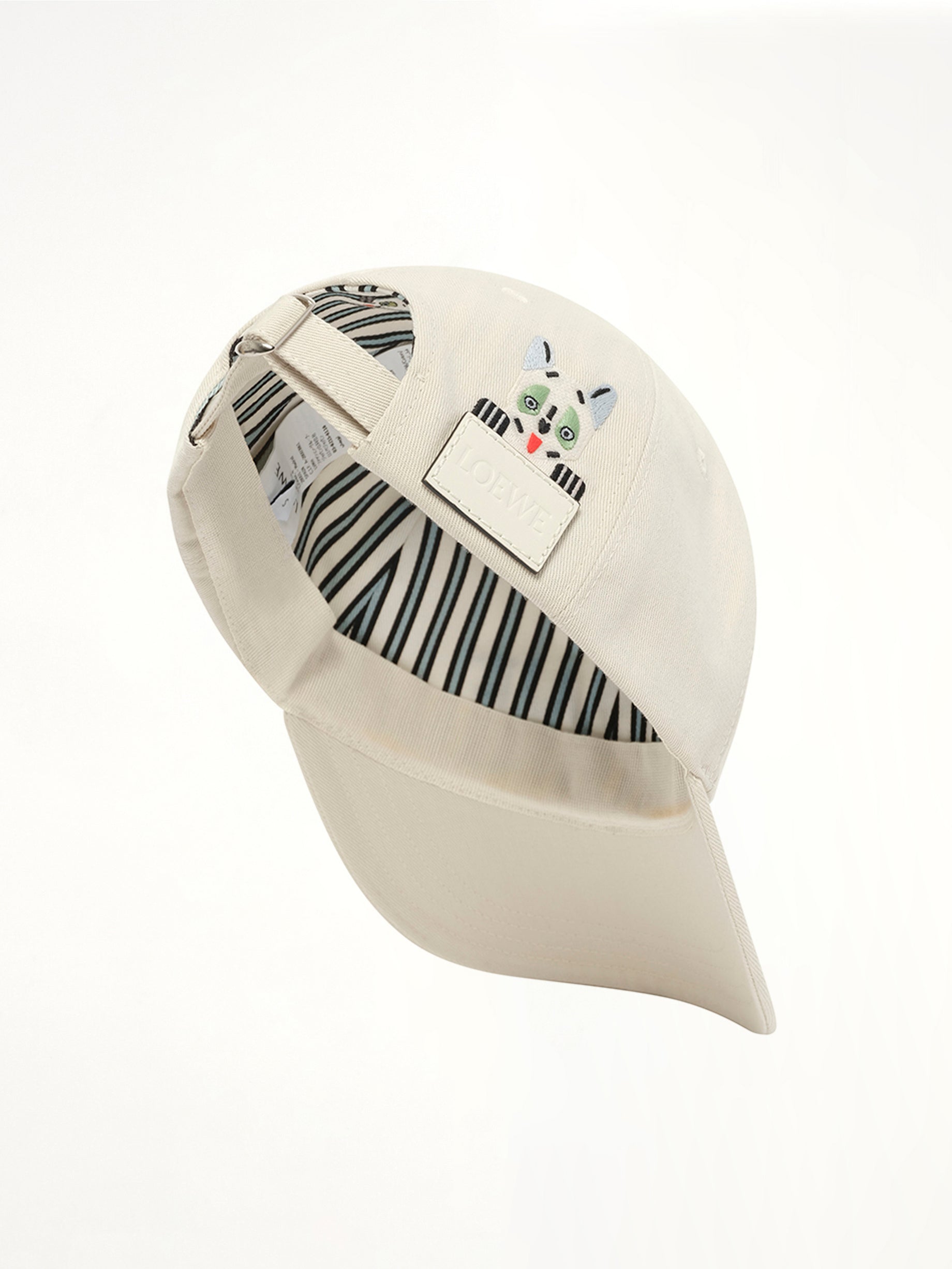 Loewe's Louis Wain Loewe Cap in Soft White is a stylish and unique accessory that combines artistic flair with everyday functionality. This cap features a soft white hue, making it a versatile addition to any wardrobe.