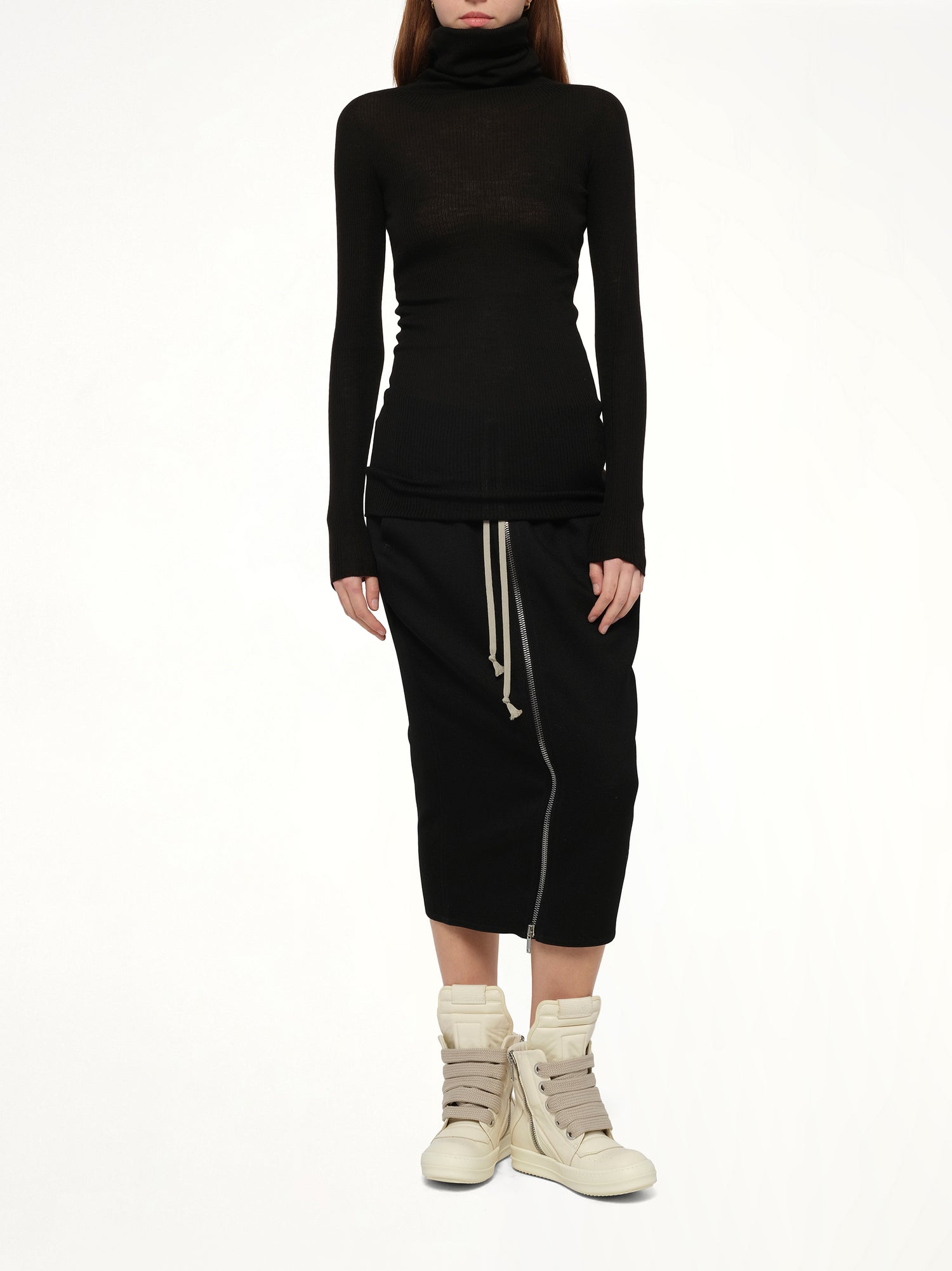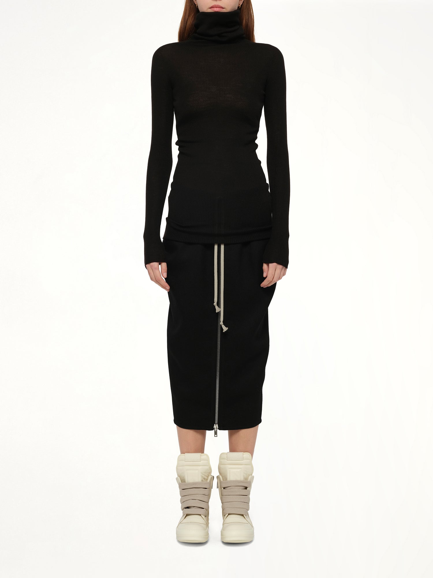 Rick Owens's LS Tube Sweater in Black is a striking piece that embodies the designer's avant-garde aesthetic. This sweater offers a unique silhouette that is both modern and versatile, perfect for elevating any wardrobe.