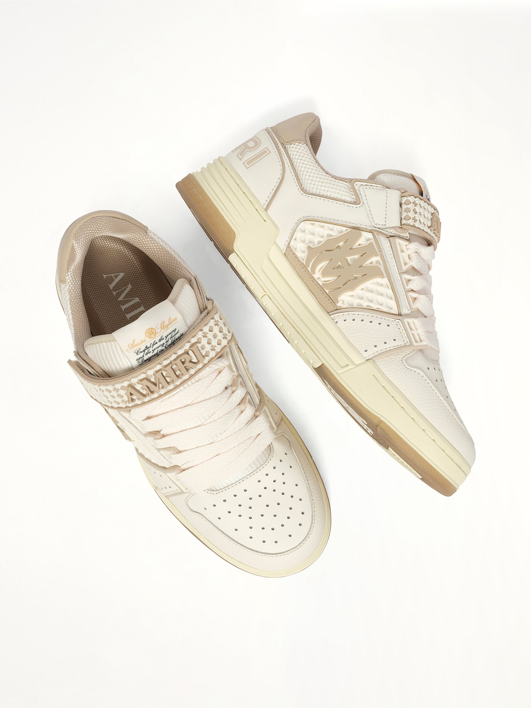 Amiri's MA Skyline in Alabaster sneakers offer a sleek, contemporary design with premium craftsmanship. Their neutral tones make them a versatile addition to any wardrobe.