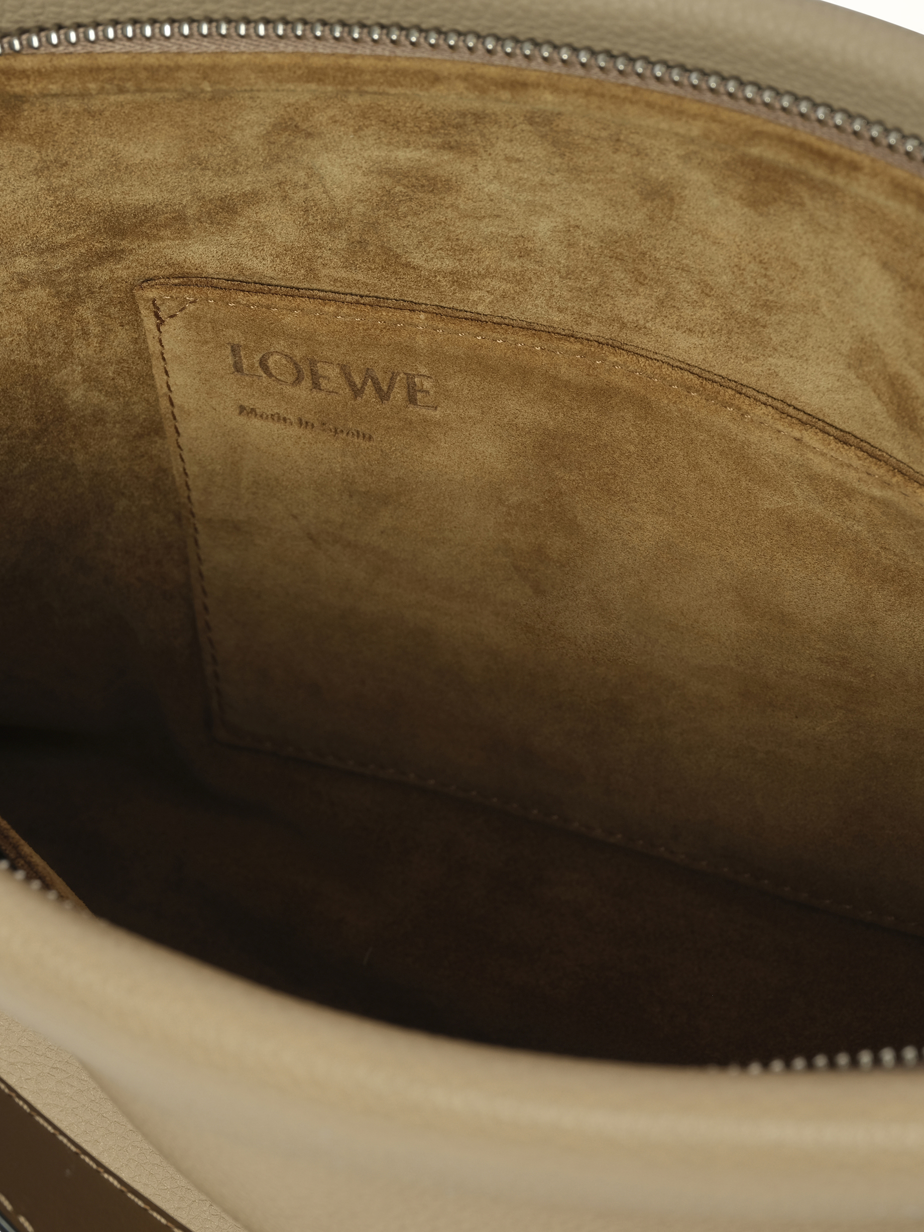 Expertly crafted and designed, Loewe's Missy Bag in Sand is the perfect addition to your wardrobe. Made with high-quality materials, this bag offers both practicality and style. With its spacious interior and sleek design, it's the ideal accessory for any occasion. Elevate your look with the Missy Bag in Sand.