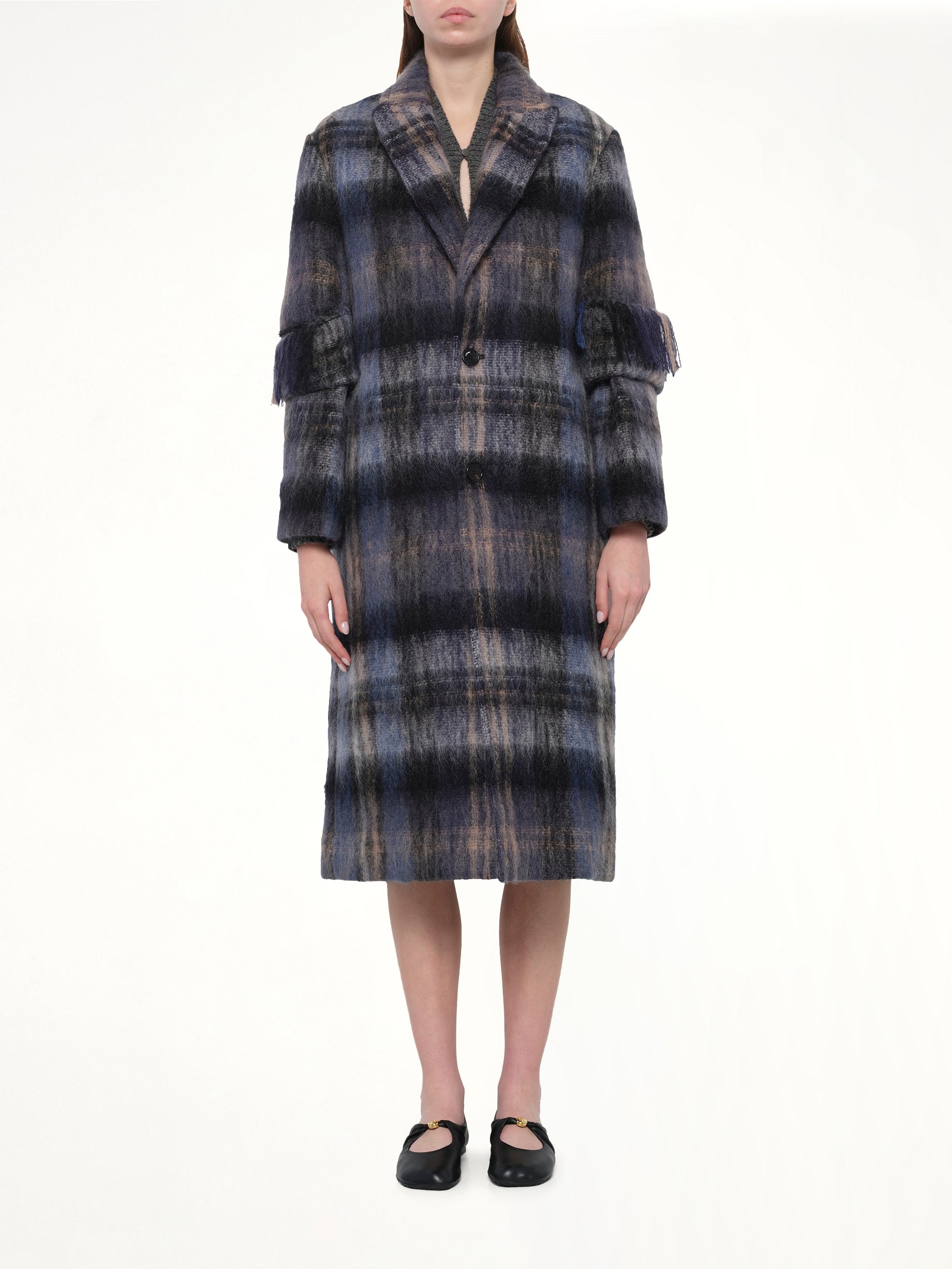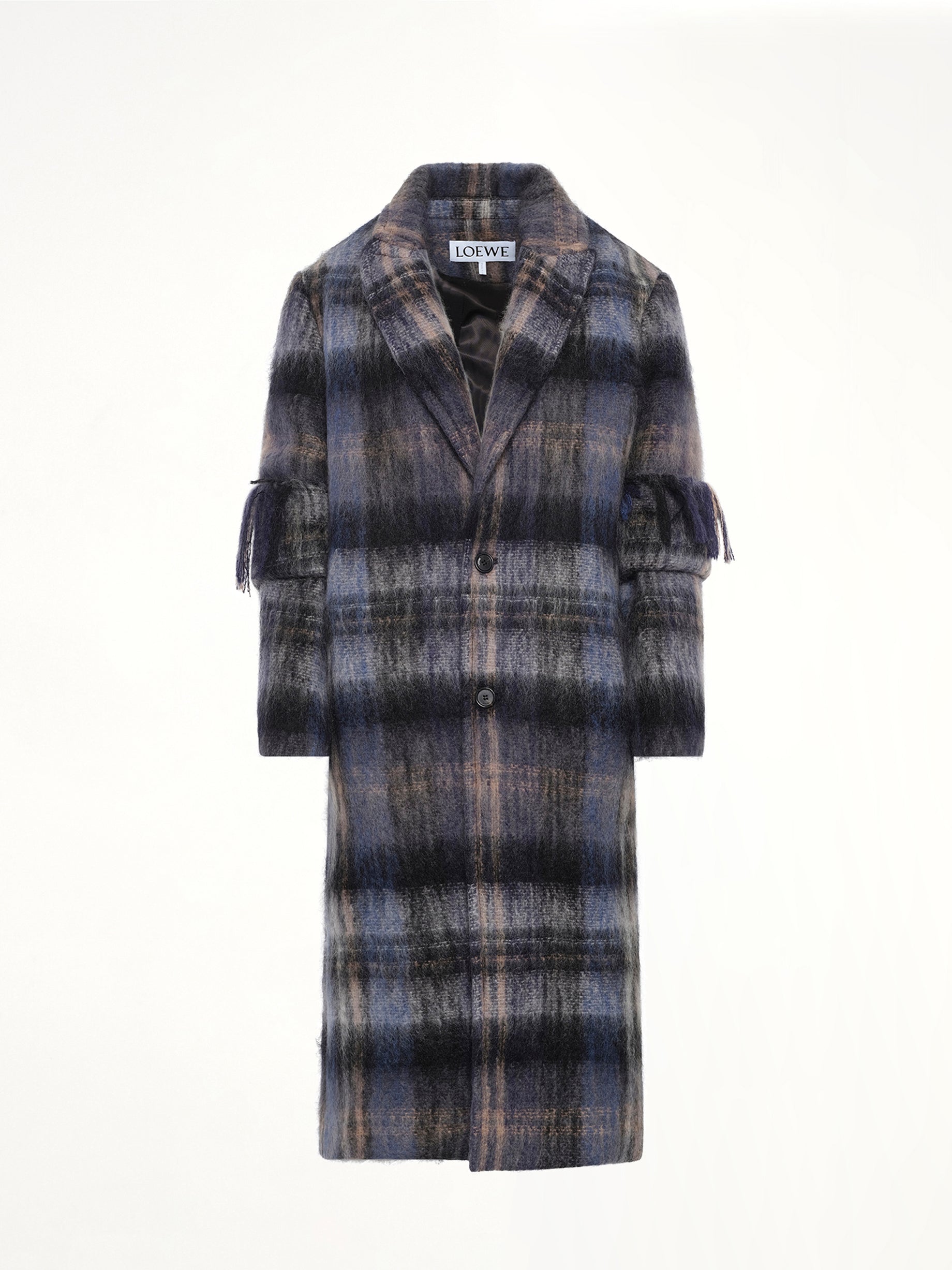 LOEWE's Mohair Coat in Blue/Multicolour is a statement piece that combines luxury with vibrant design. This coat offers a unique blend of colors, making it a standout addition to any wardrobe.