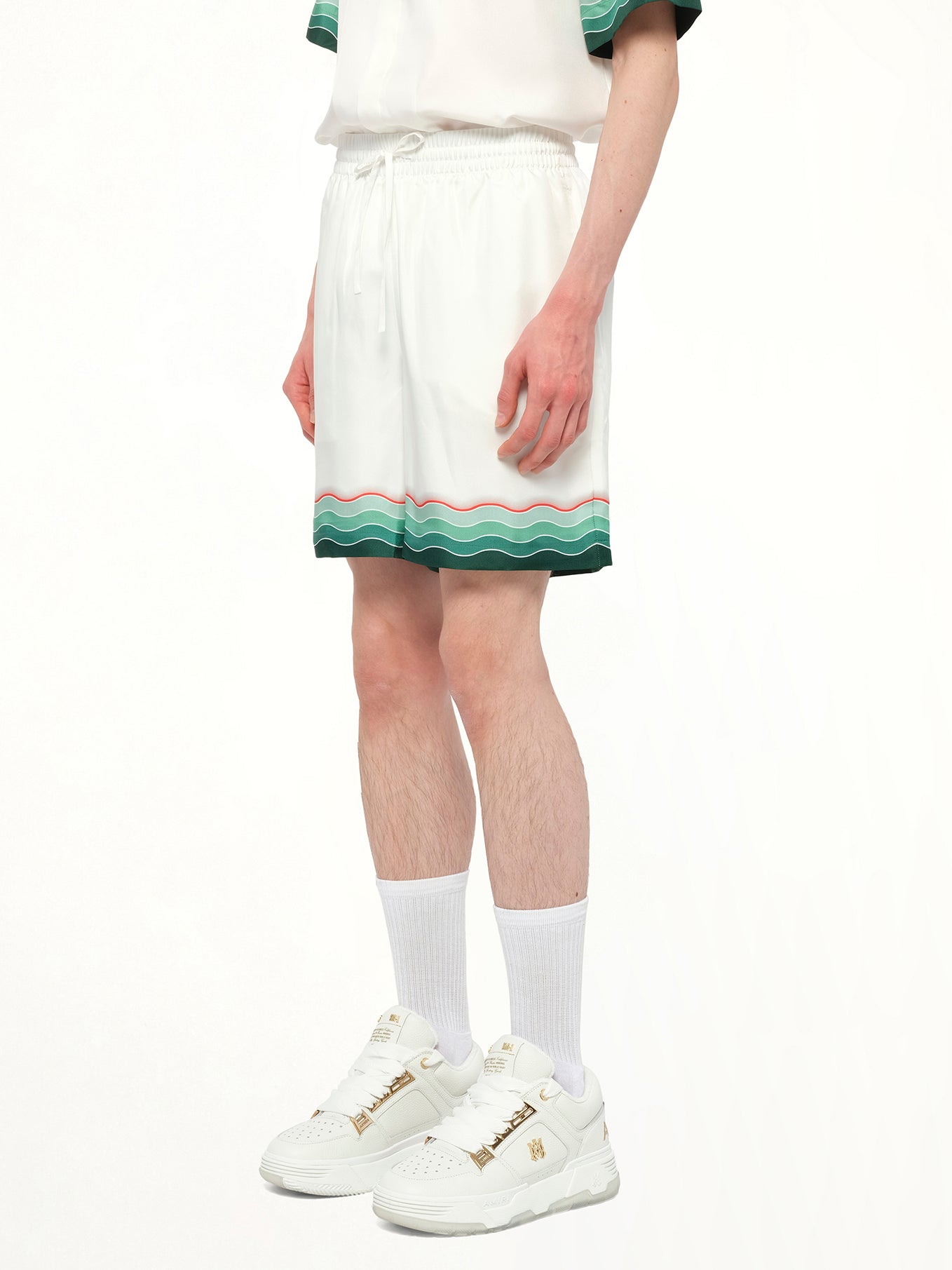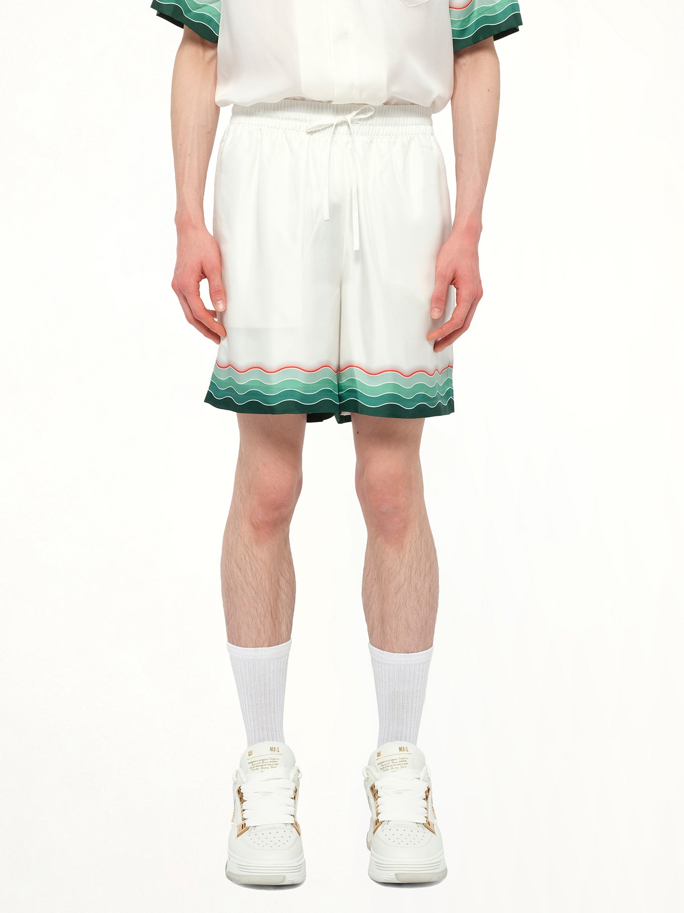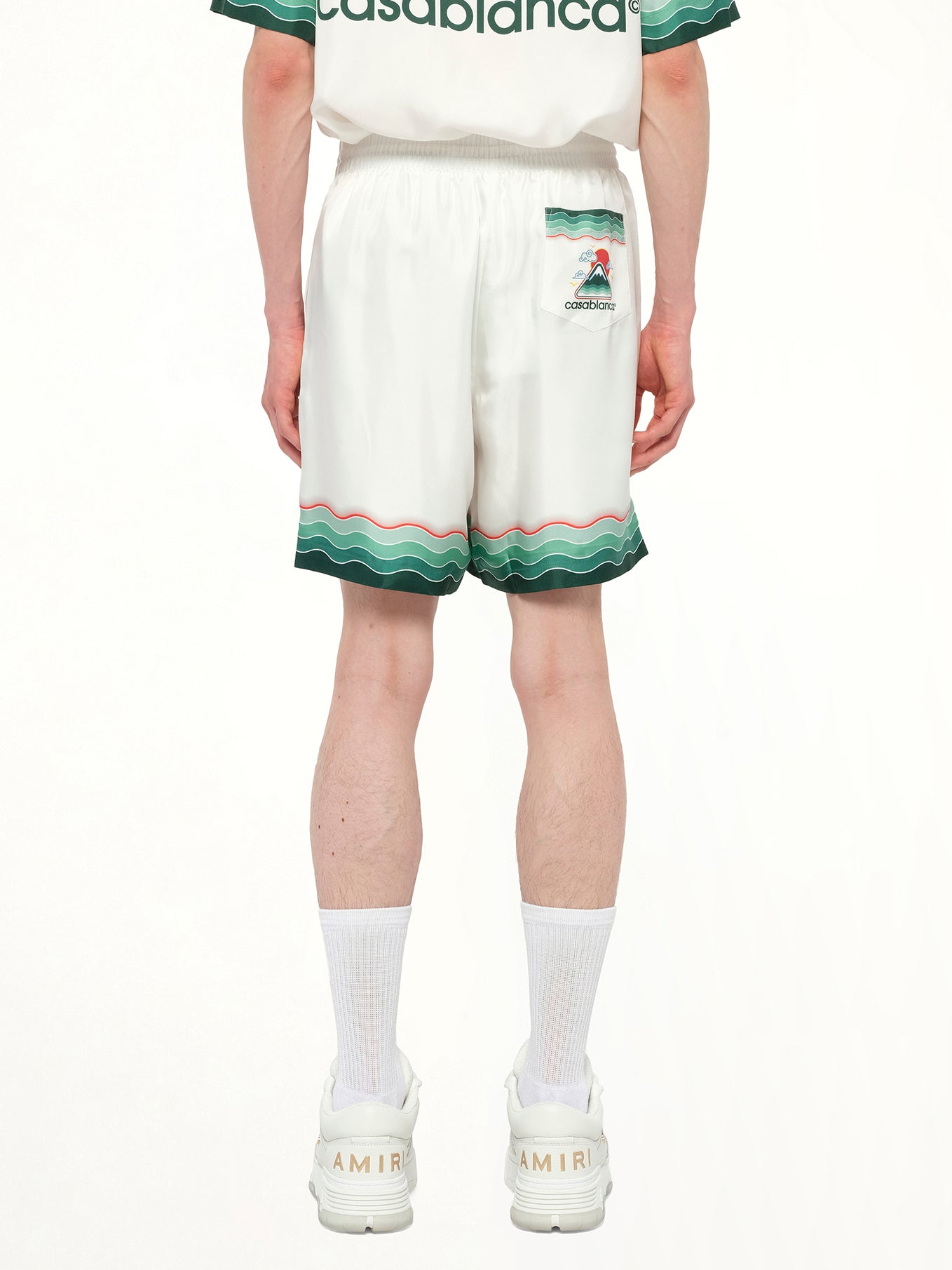 Casablanca's Montagne Ondulee Shorts in Multicolour is a vibrant addition to any wardrobe, offering a unique blend of style and comfort. These shorts feature a striking wave pattern that captures attention and exudes a sense of playful elegance.