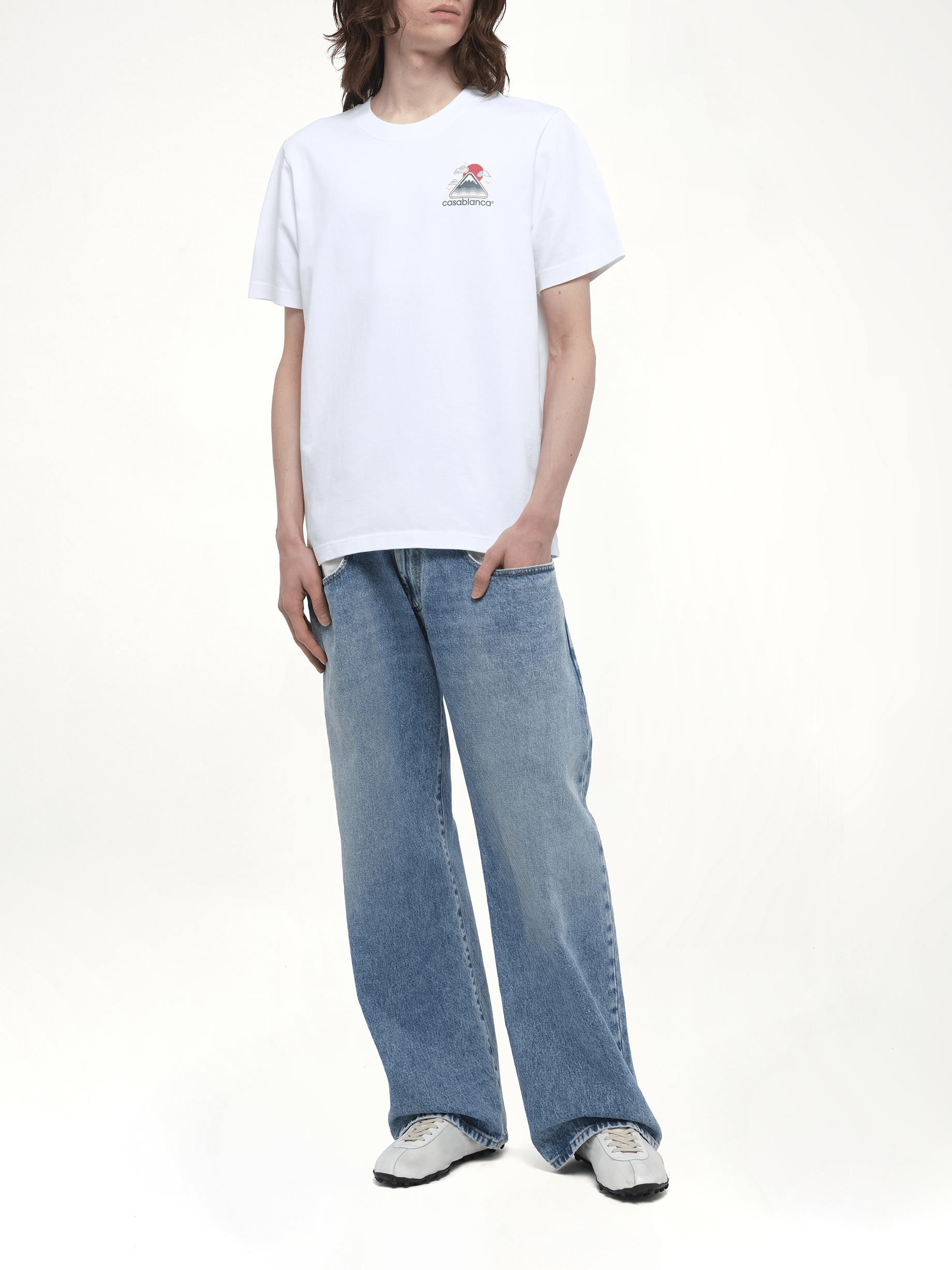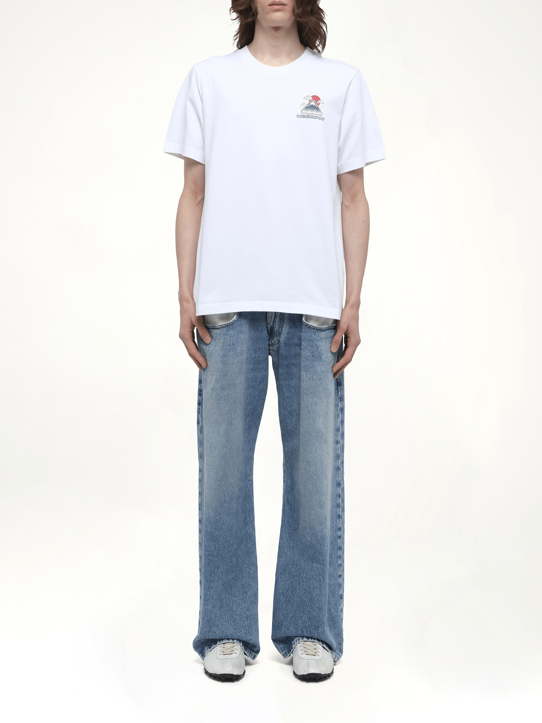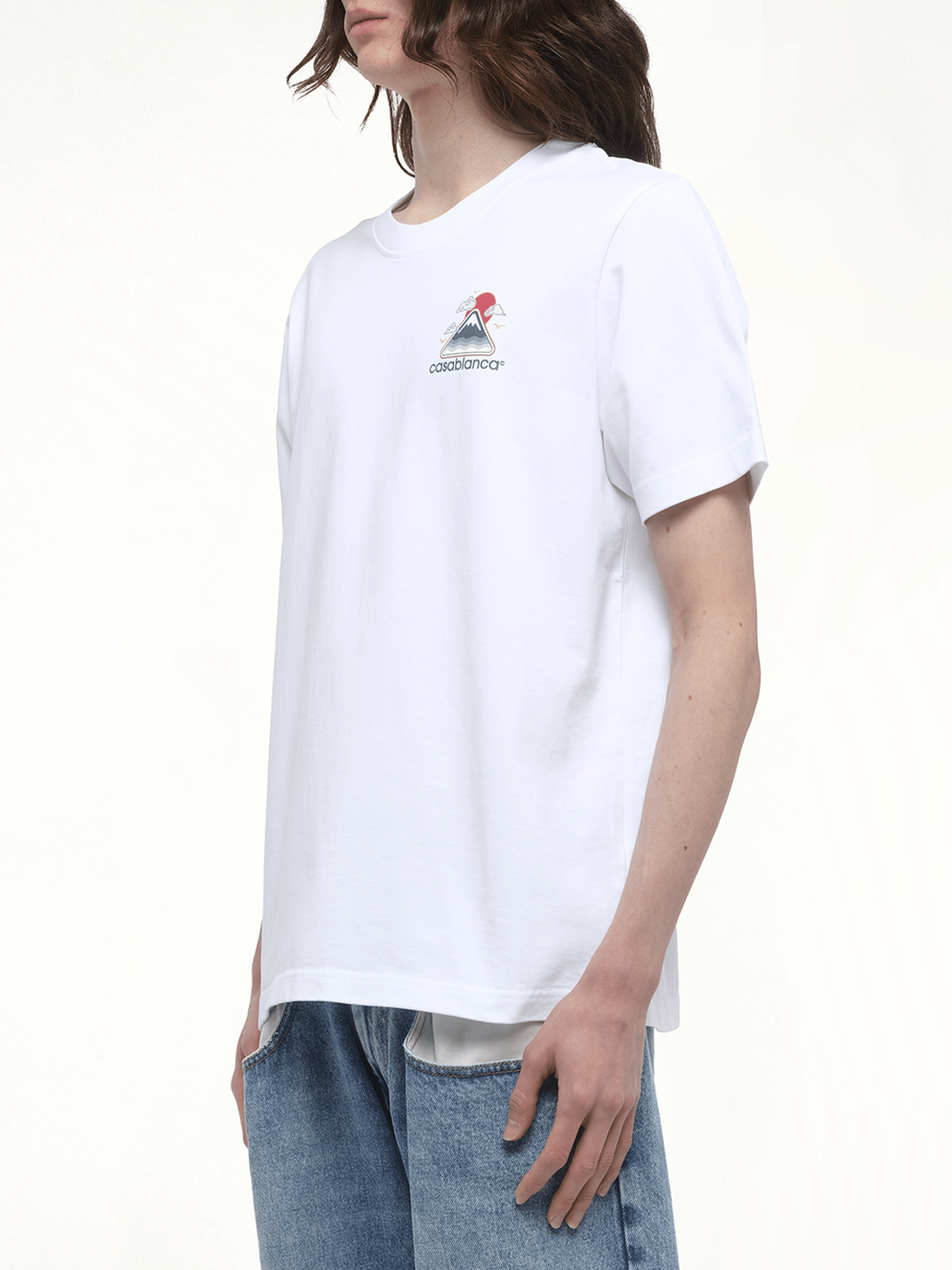CASABLANCA's Motagne Ondulee T-Shirt in White is a stylish and versatile addition to any wardrobe. This t-shirt features a unique design that effortlessly combines comfort and elegance.