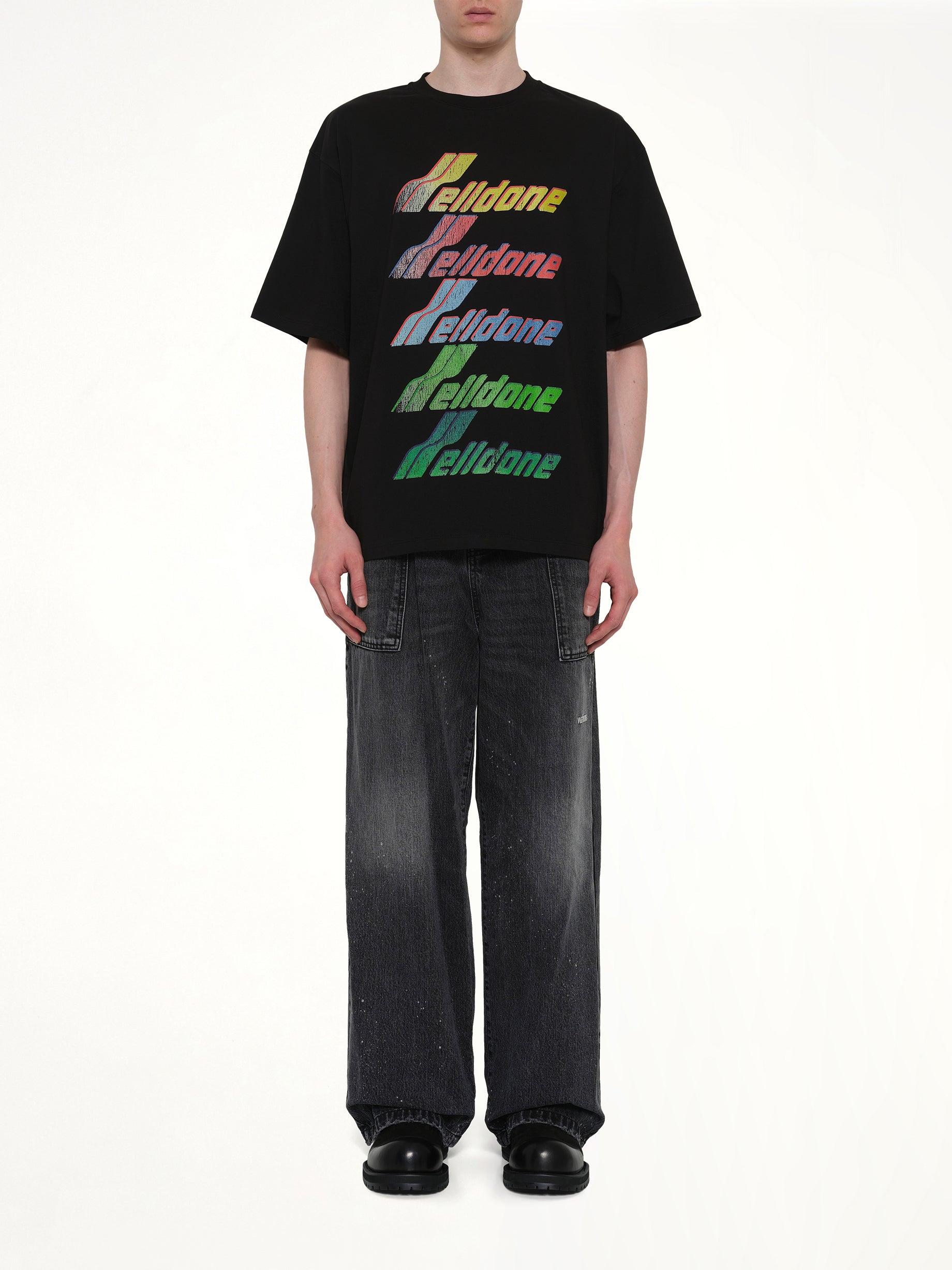 We11done's Multi Rainbow Logo T-Shirt in Black is a stylish and vibrant addition to any wardrobe. This eye-catching piece features a bold design that stands out in any setting.