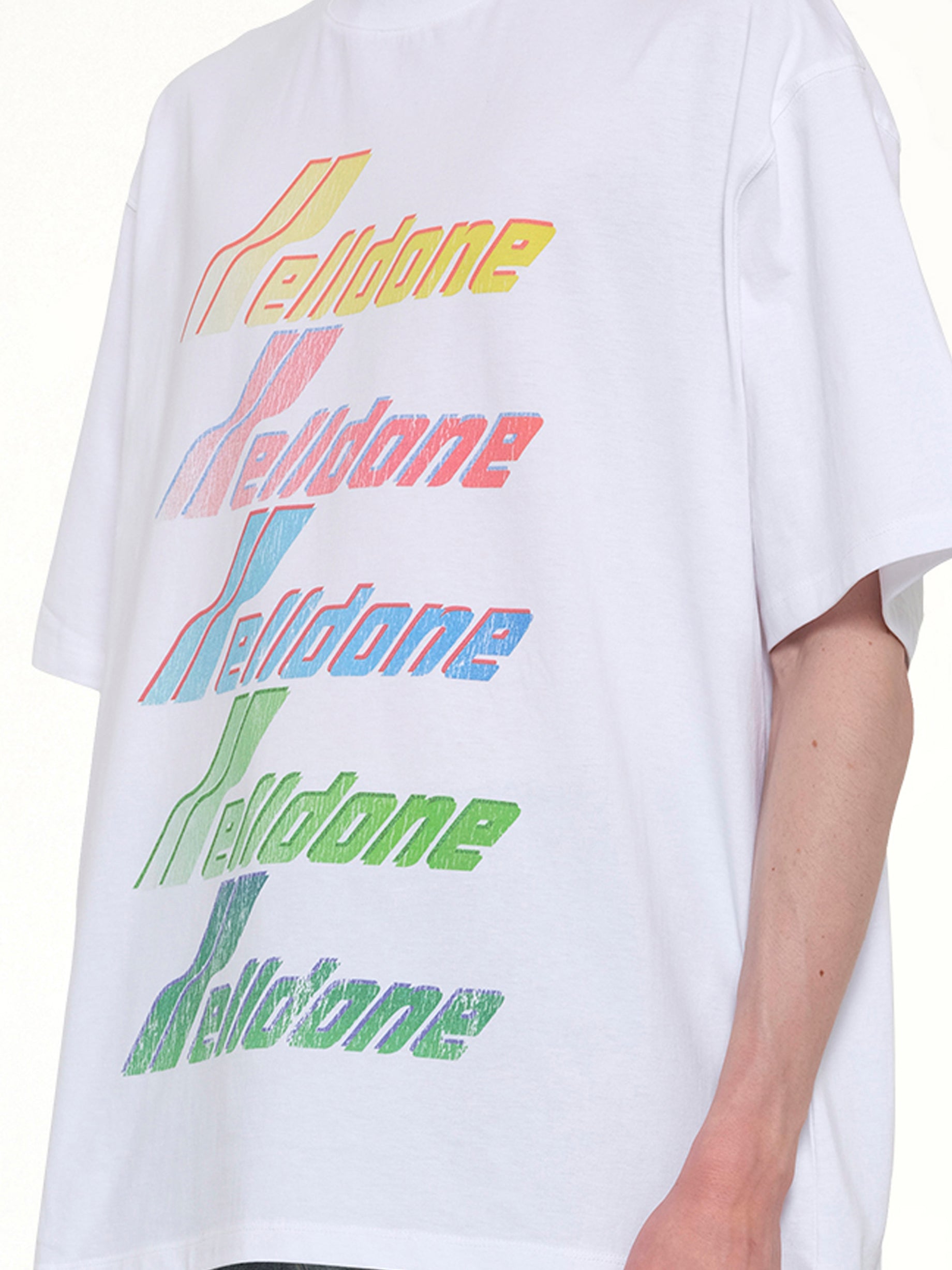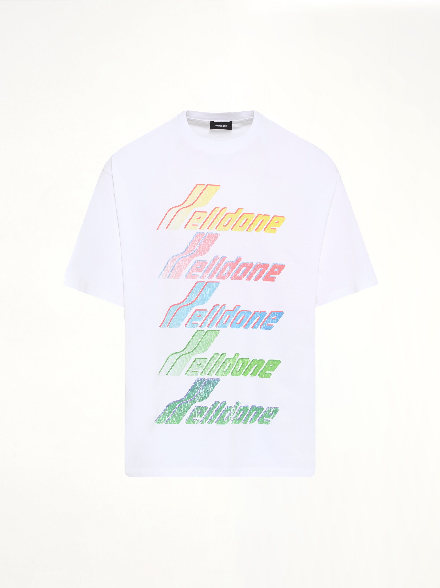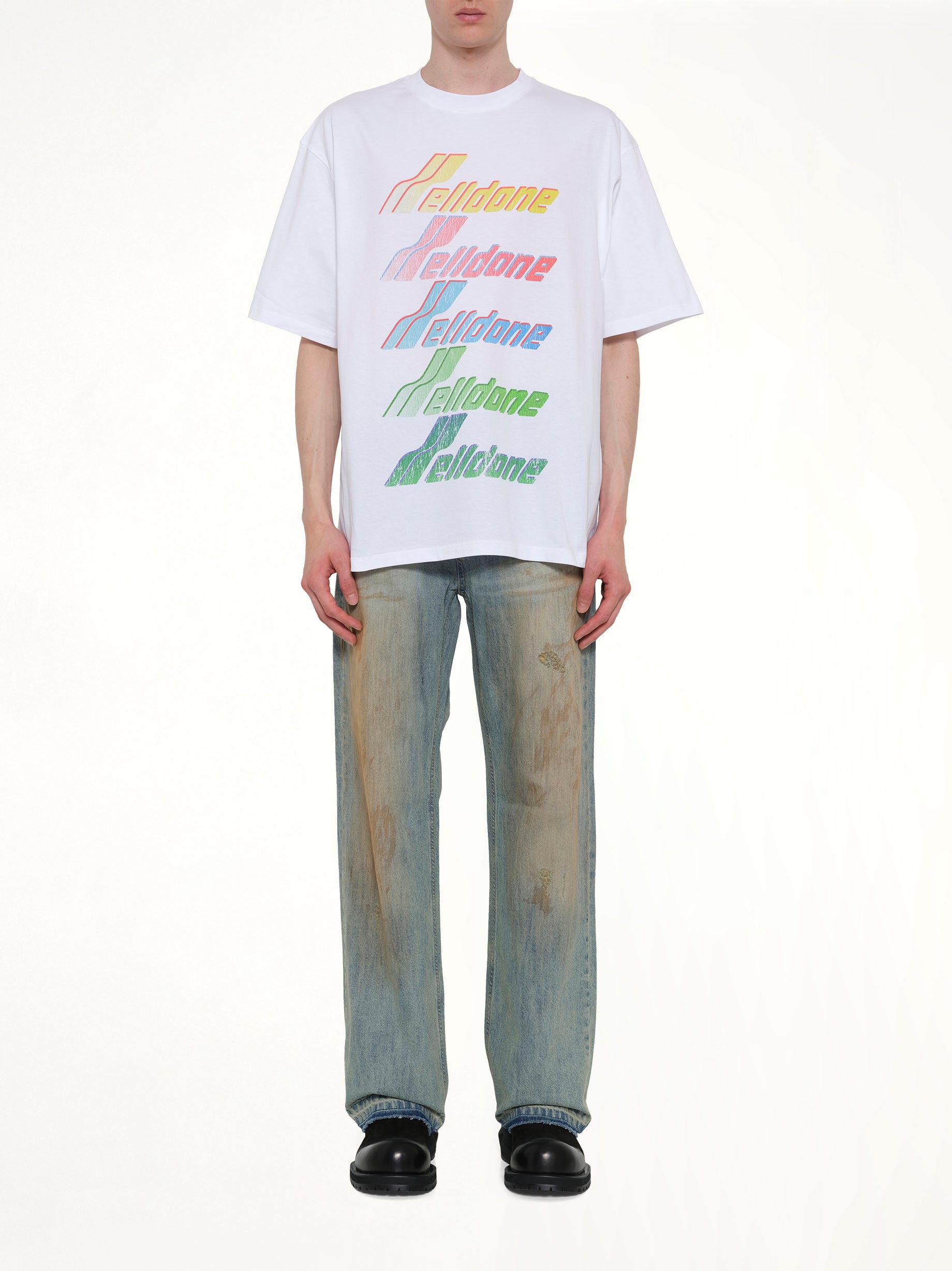 We11done's Multi Rainbow Logo T-Shirt in White is a vibrant and stylish addition to any wardrobe. Featuring a bold, colorful logo, this t-shirt offers a modern twist on a classic design.