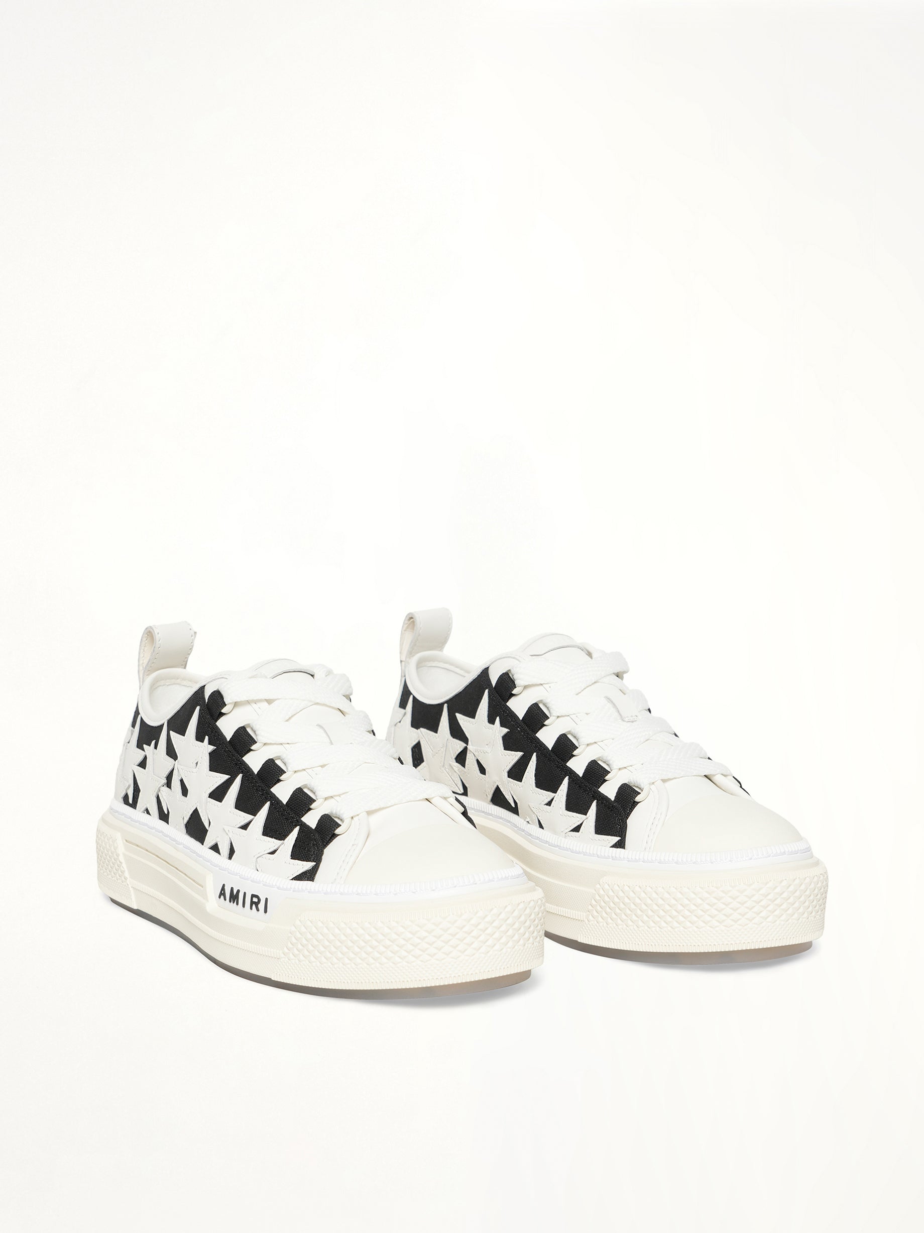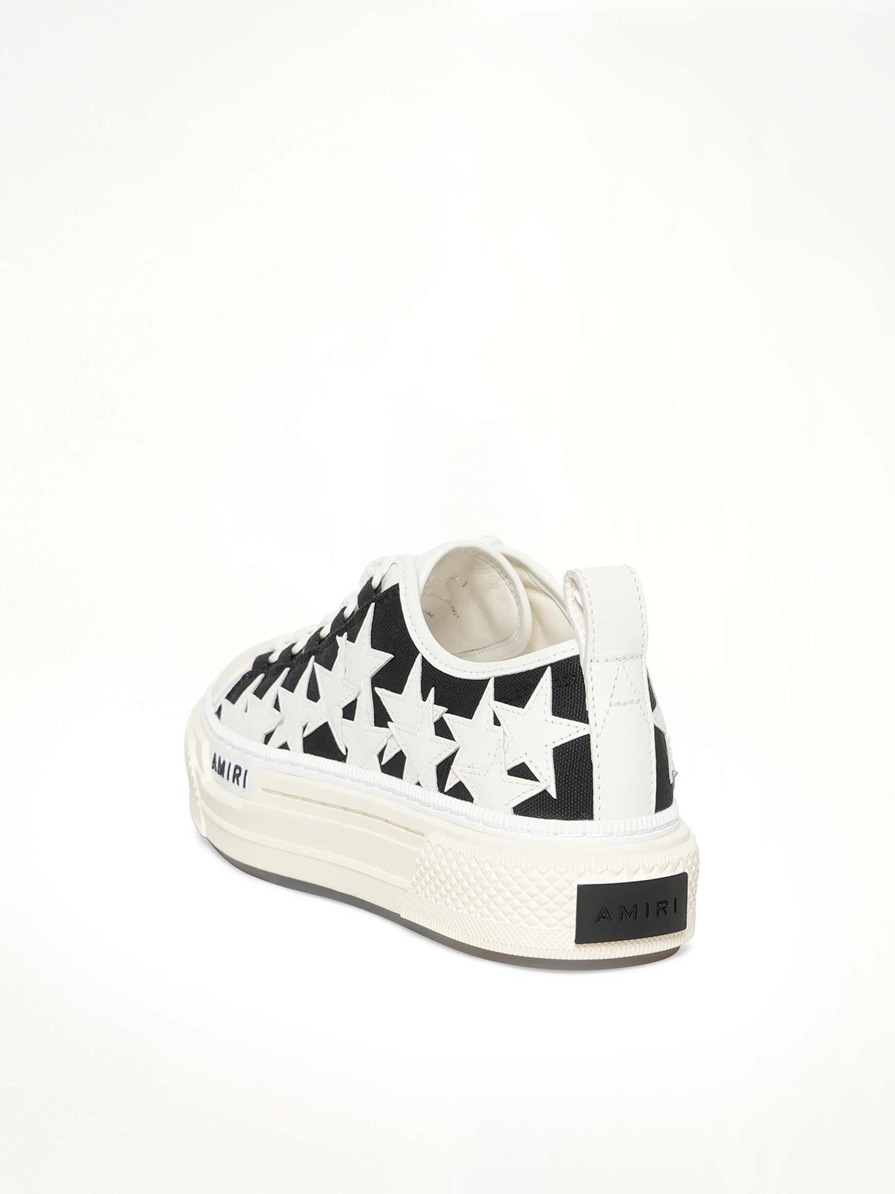 Amiri's Stars Court Low Sneaker in Black is a stylish and contemporary footwear choice that combines luxury with streetwear aesthetics. These sneakers feature a sleek design with standout star motifs, making them a versatile addition to any wardrobe.