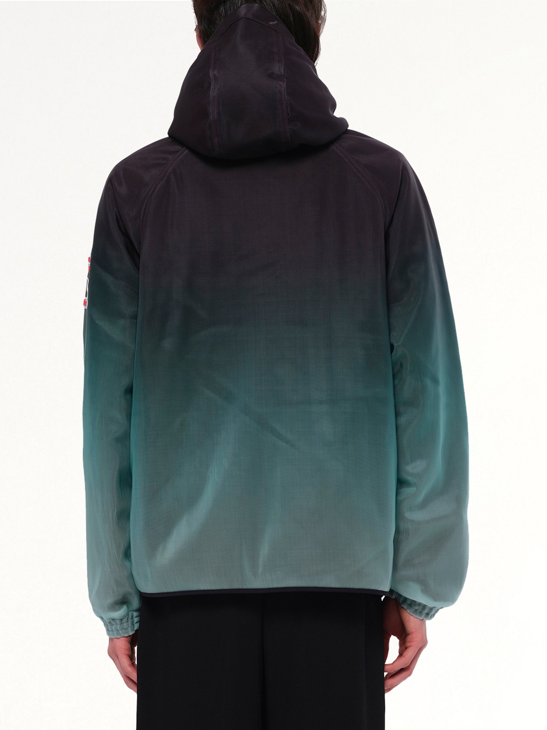 Casablanca's Nylon Gradient Windbreaker in Green is a stylish and functional outerwear piece that combines modern design with practical features. Perfect for transitional weather, this windbreaker offers both comfort and a contemporary aesthetic.