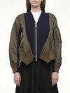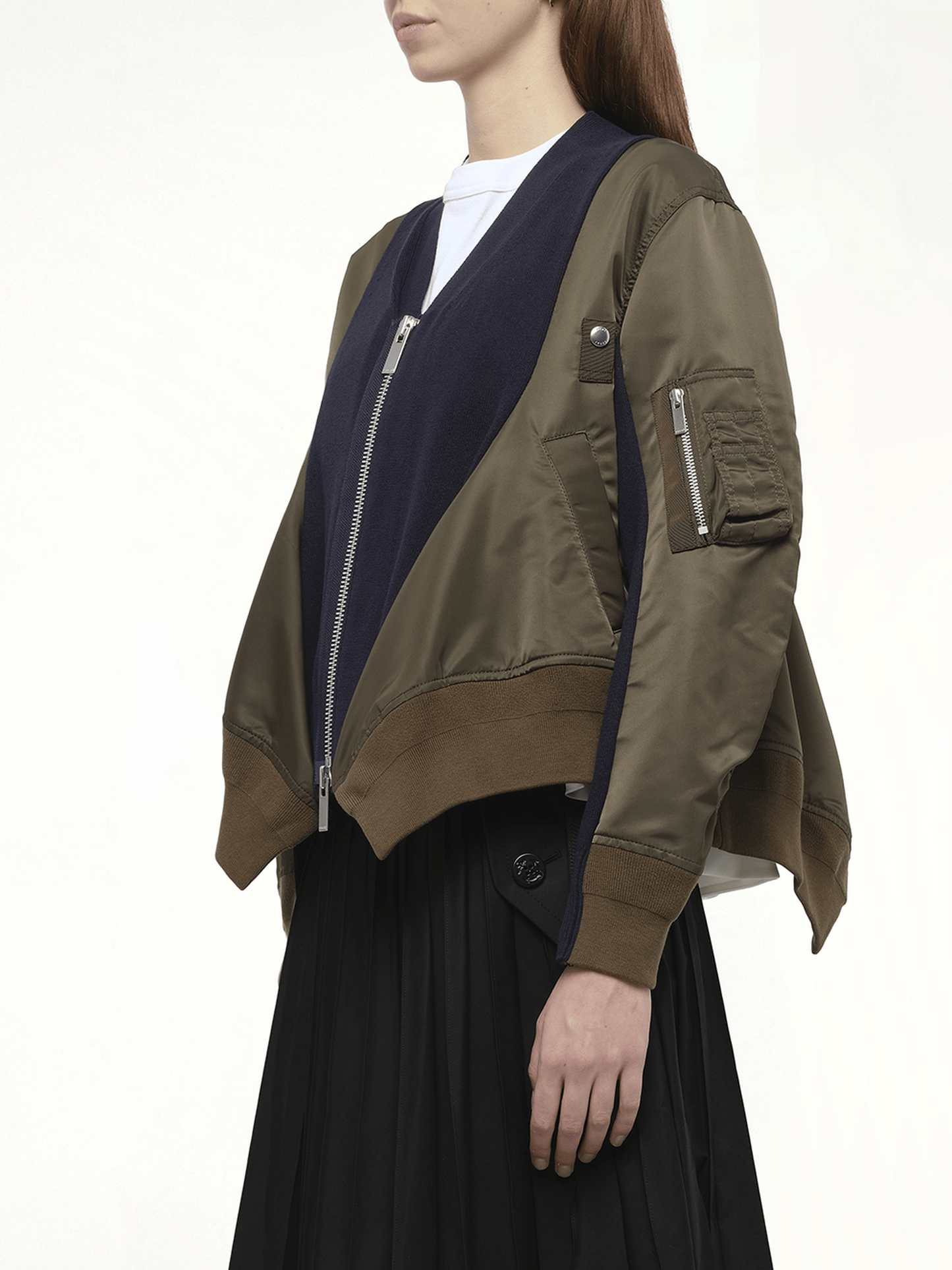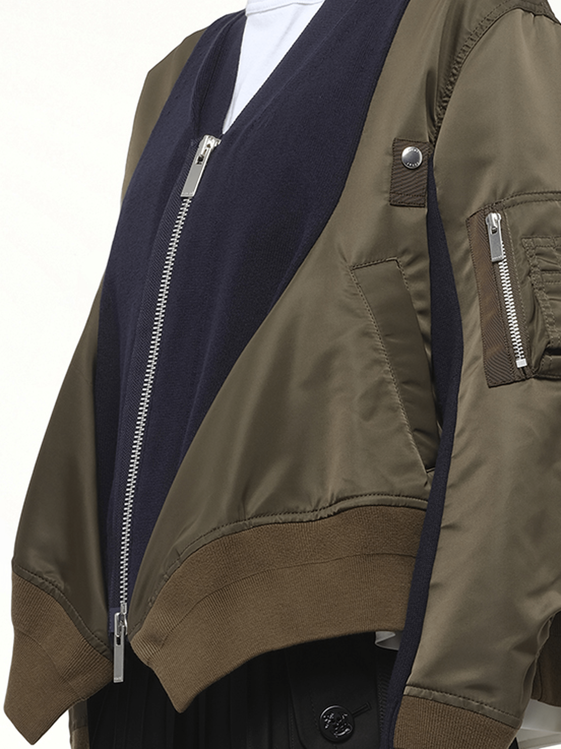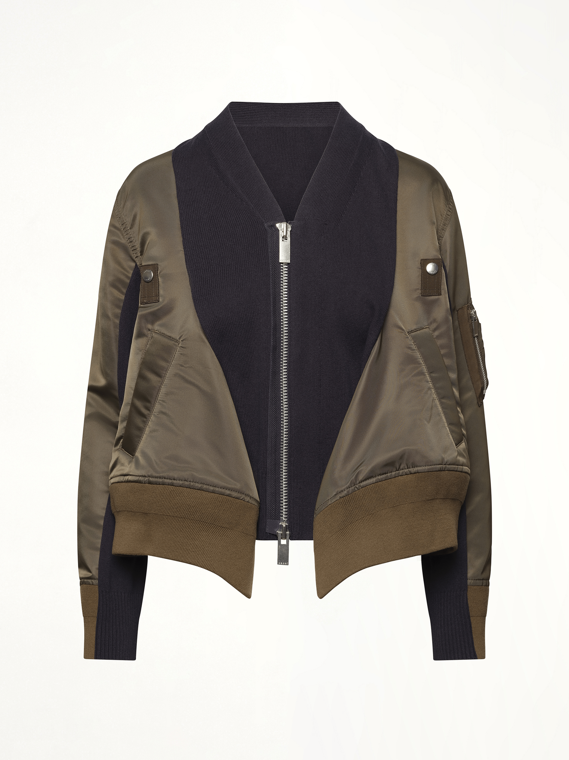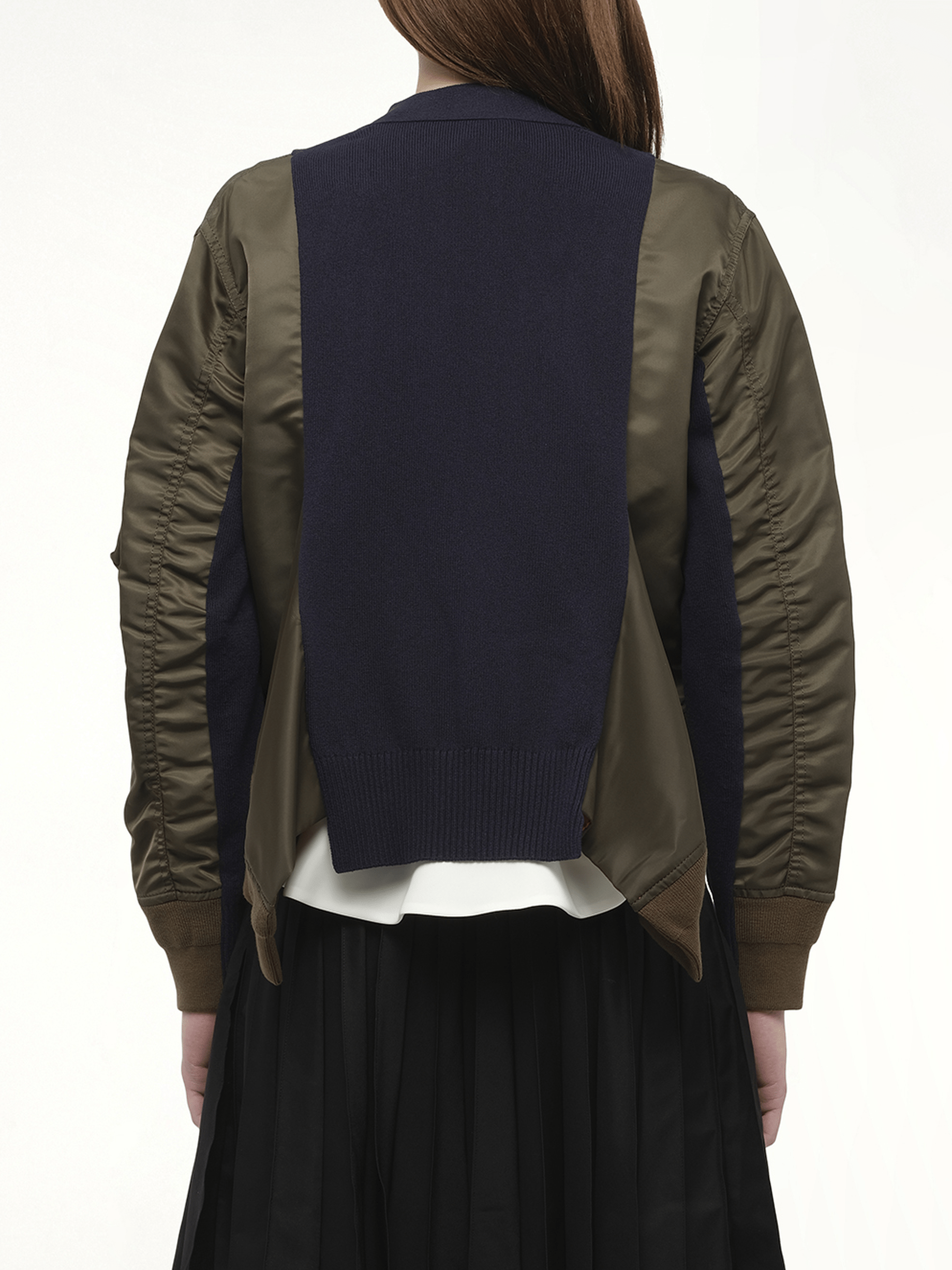 Nylon Twill x Knit Cardigan in Dark Khaki/Navy