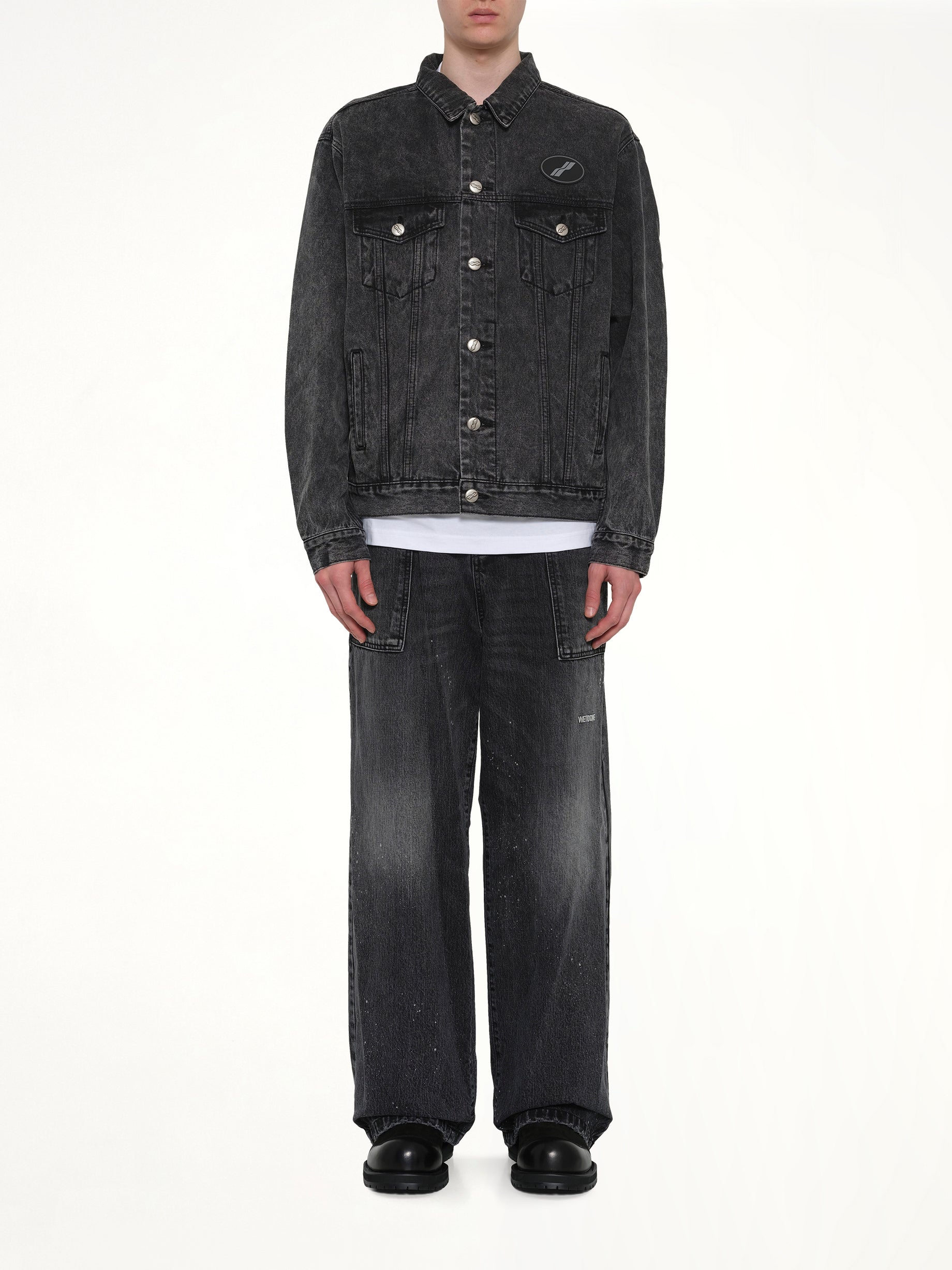 We11done's Oversized Denim Jacket in Washed Black is a statement piece that combines contemporary style with a relaxed fit. Perfect for layering, this jacket offers a versatile addition to any wardrobe.