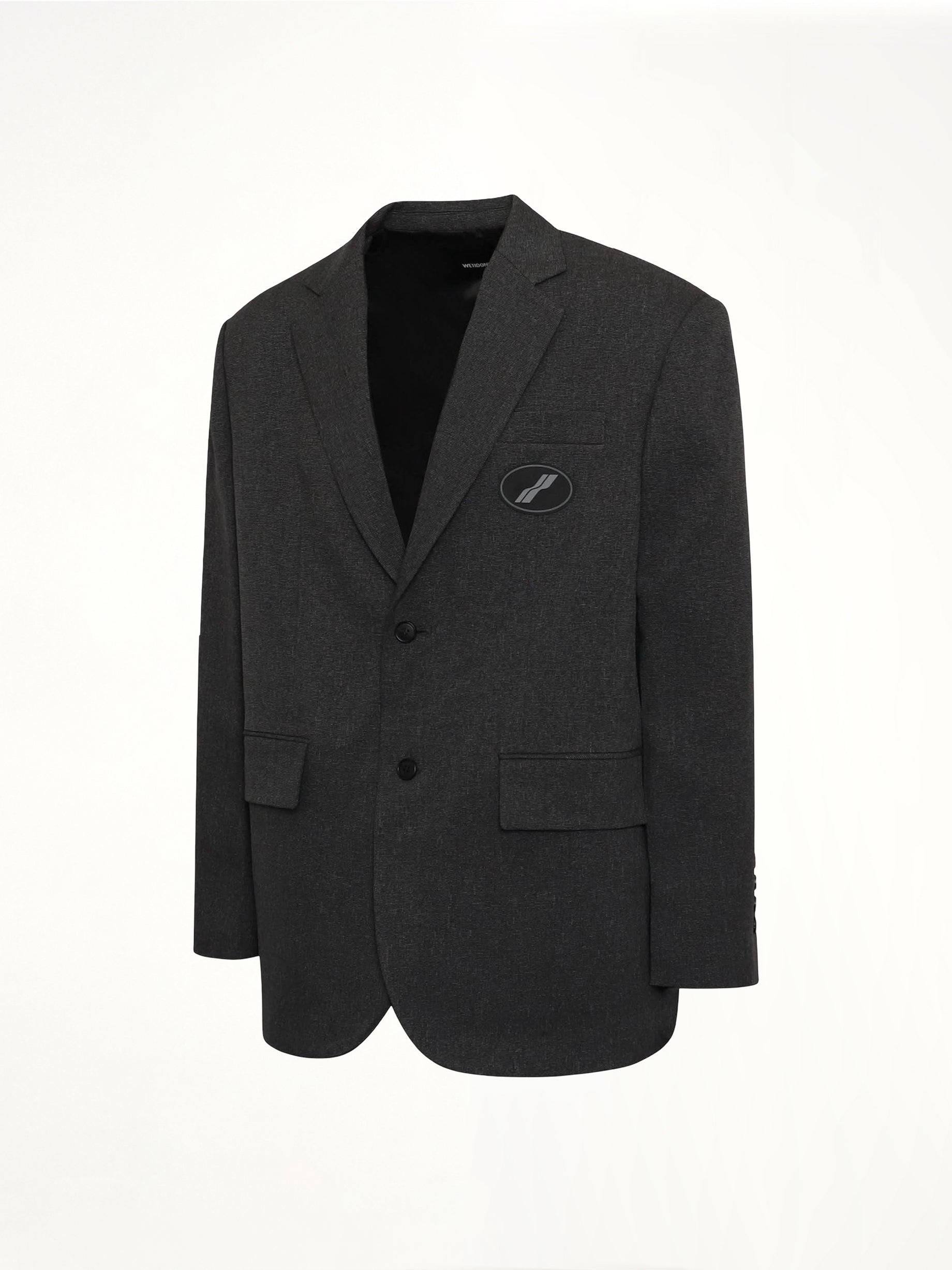 We11done's Oversized Suit Logo Blazer in Charcoal is a statement piece that combines modern tailoring with a relaxed fit. This blazer features a subtle logo detail, adding a touch of brand identity to its classic design.