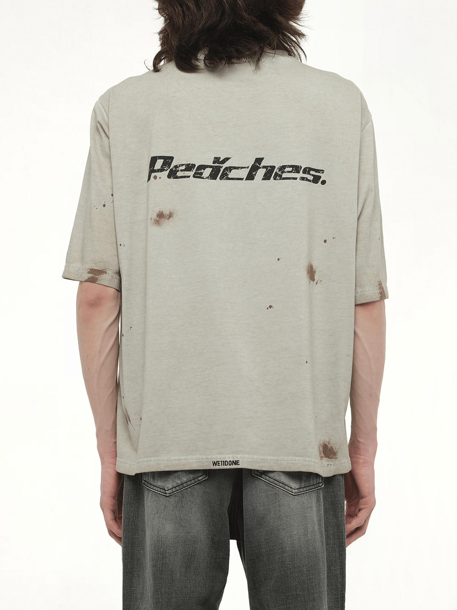 WE11DONE's Peaches Print T-Shirt in Beige is a stylish and contemporary piece that adds a playful touch to any wardrobe. Perfect for casual outings, this t-shirt effortlessly combines comfort with a unique design.