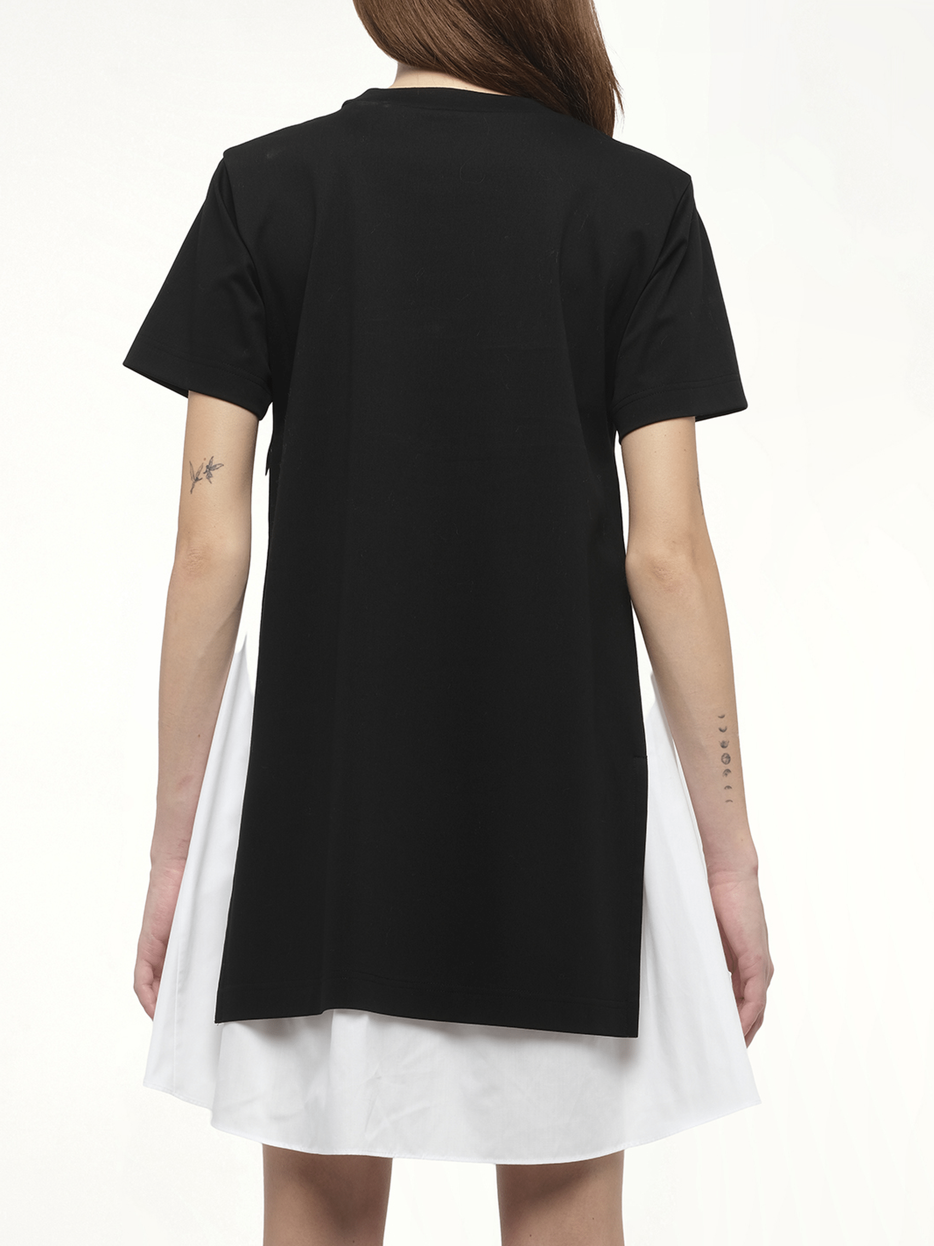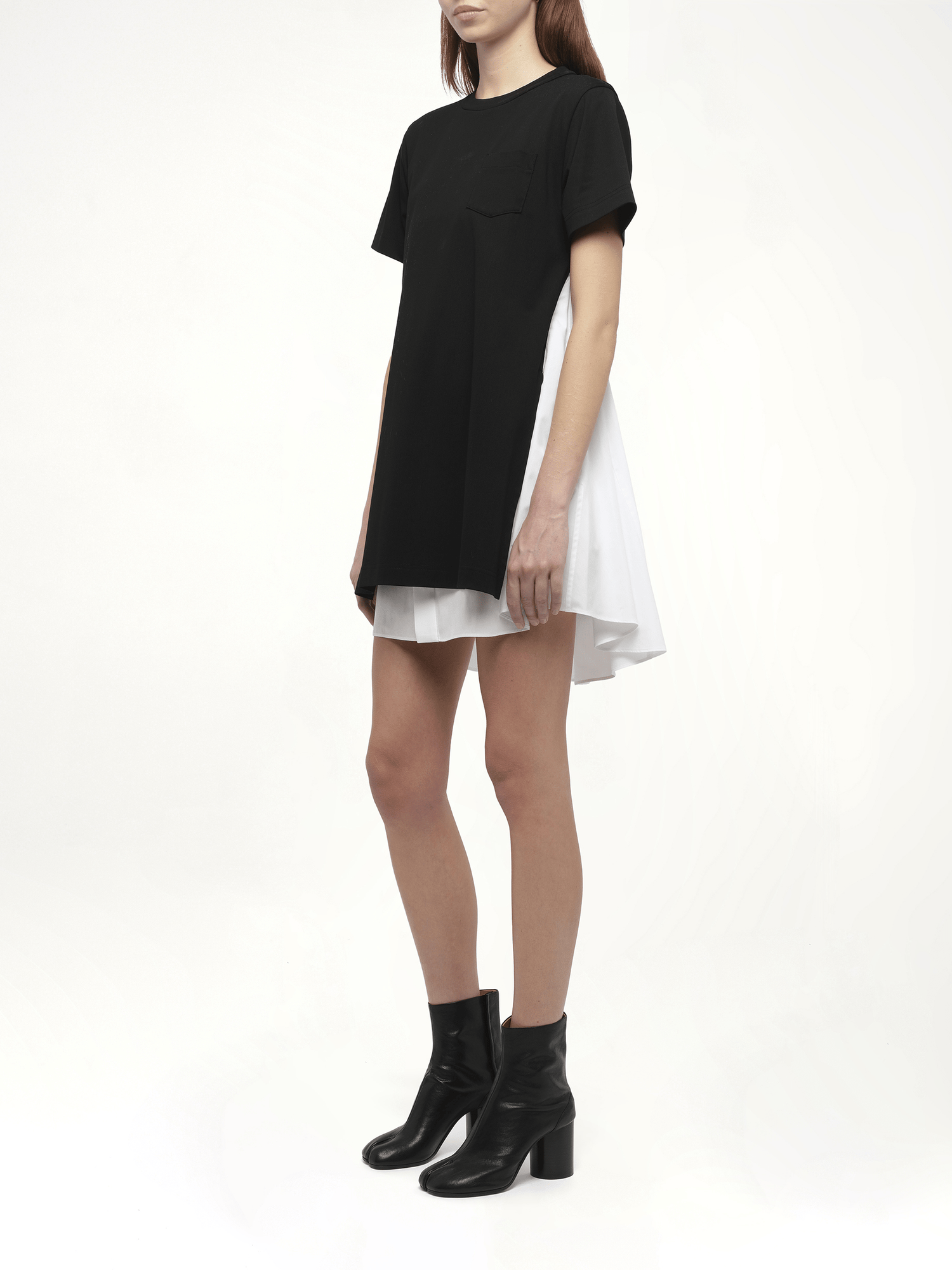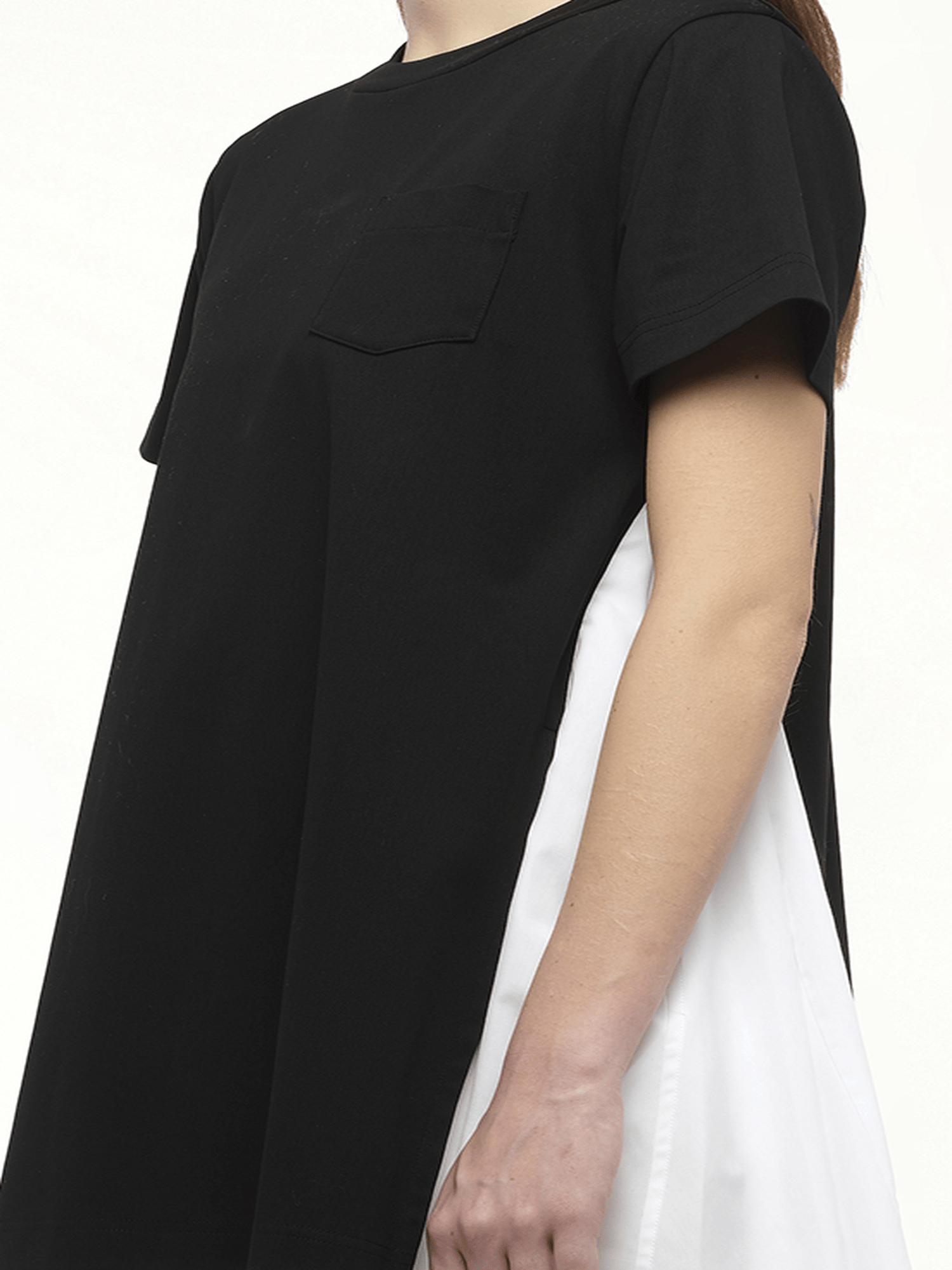 Poplin x Cotton Jersey Dress in Black/Off White