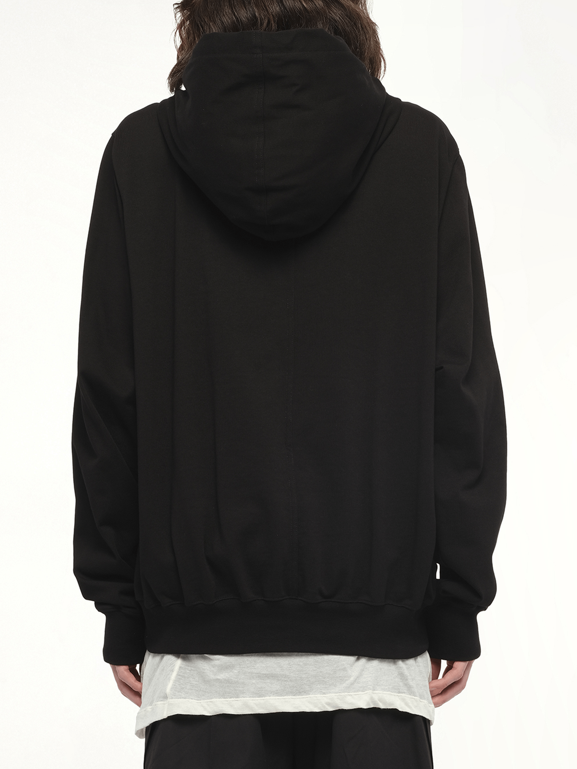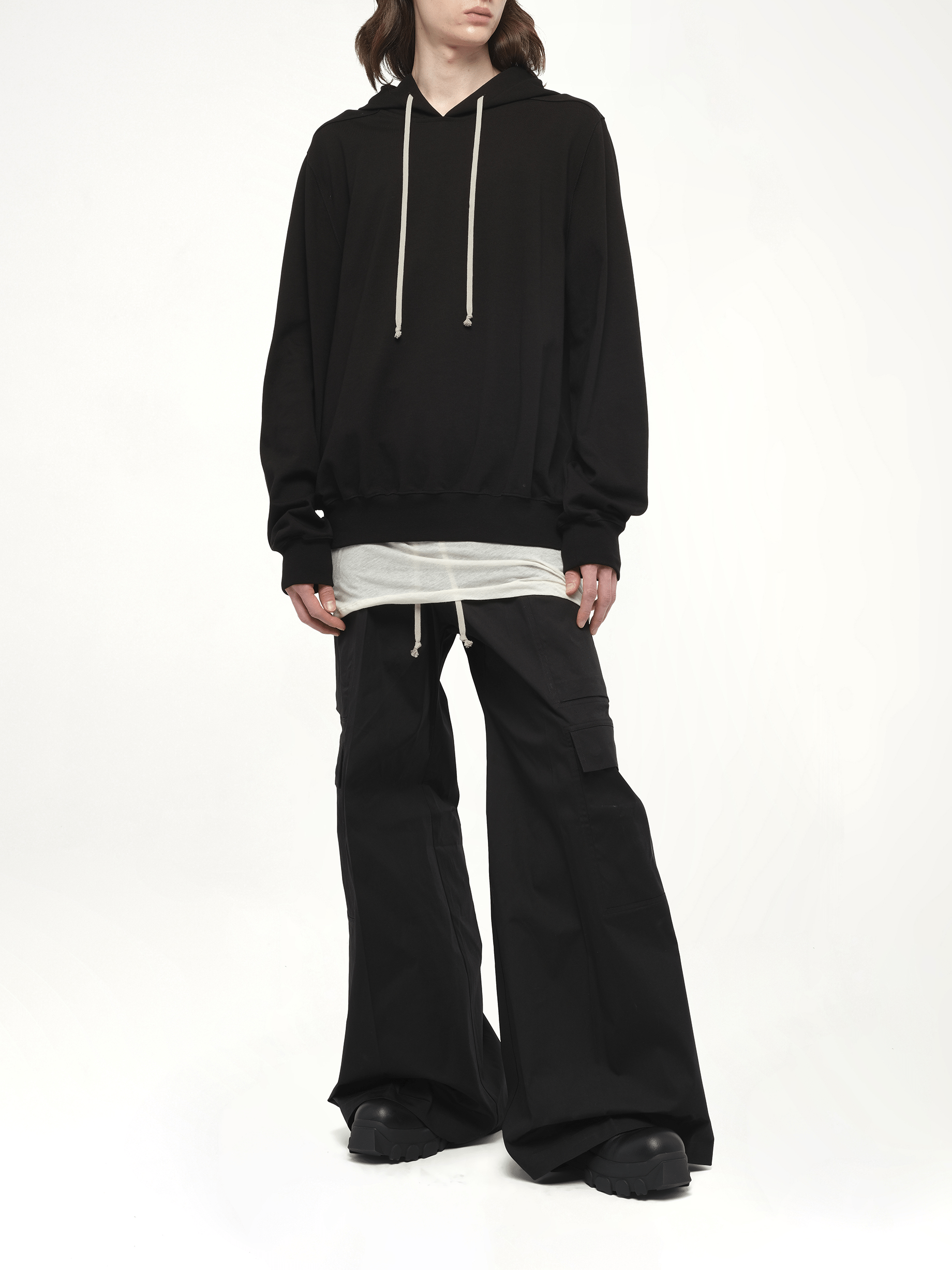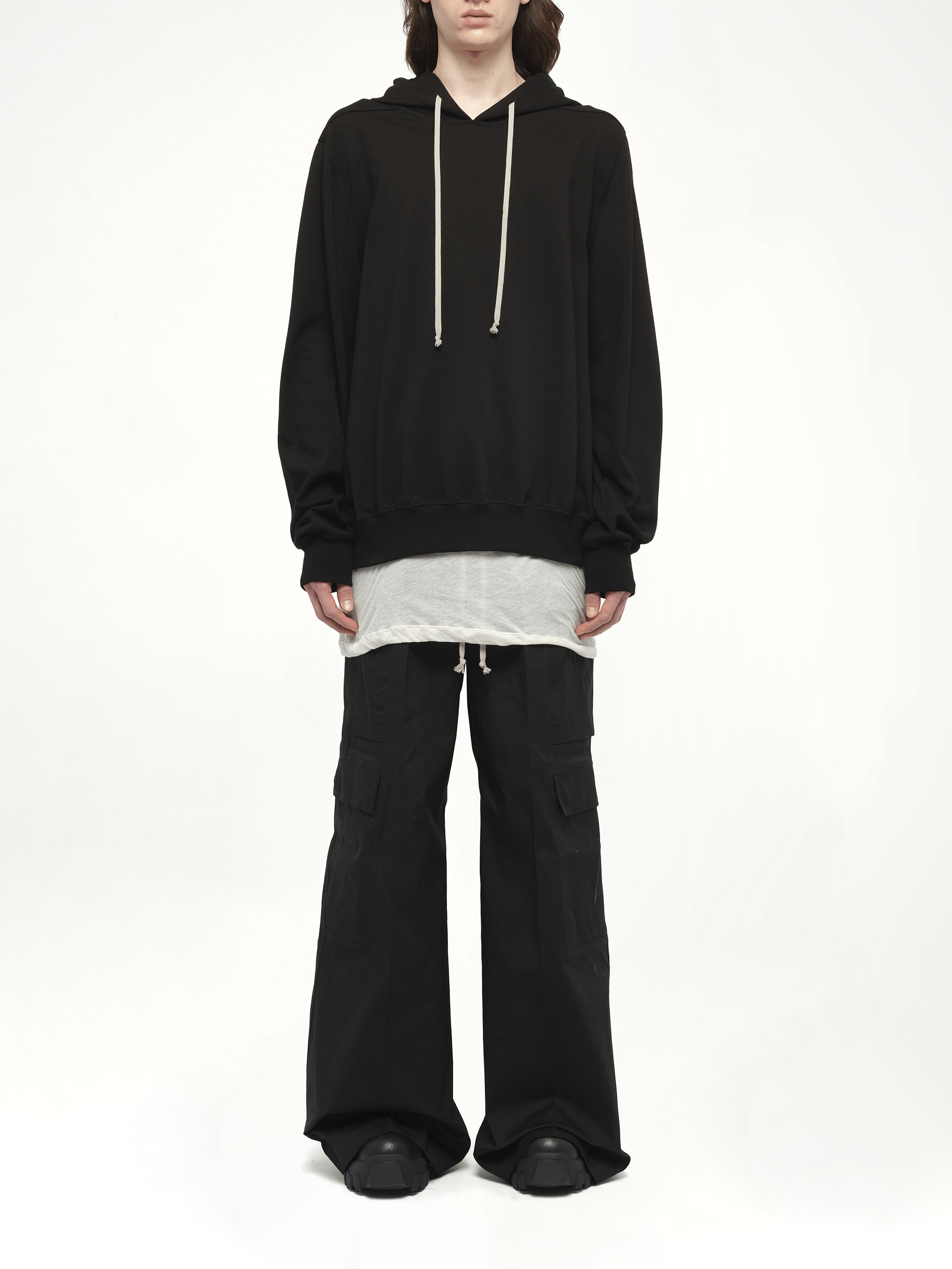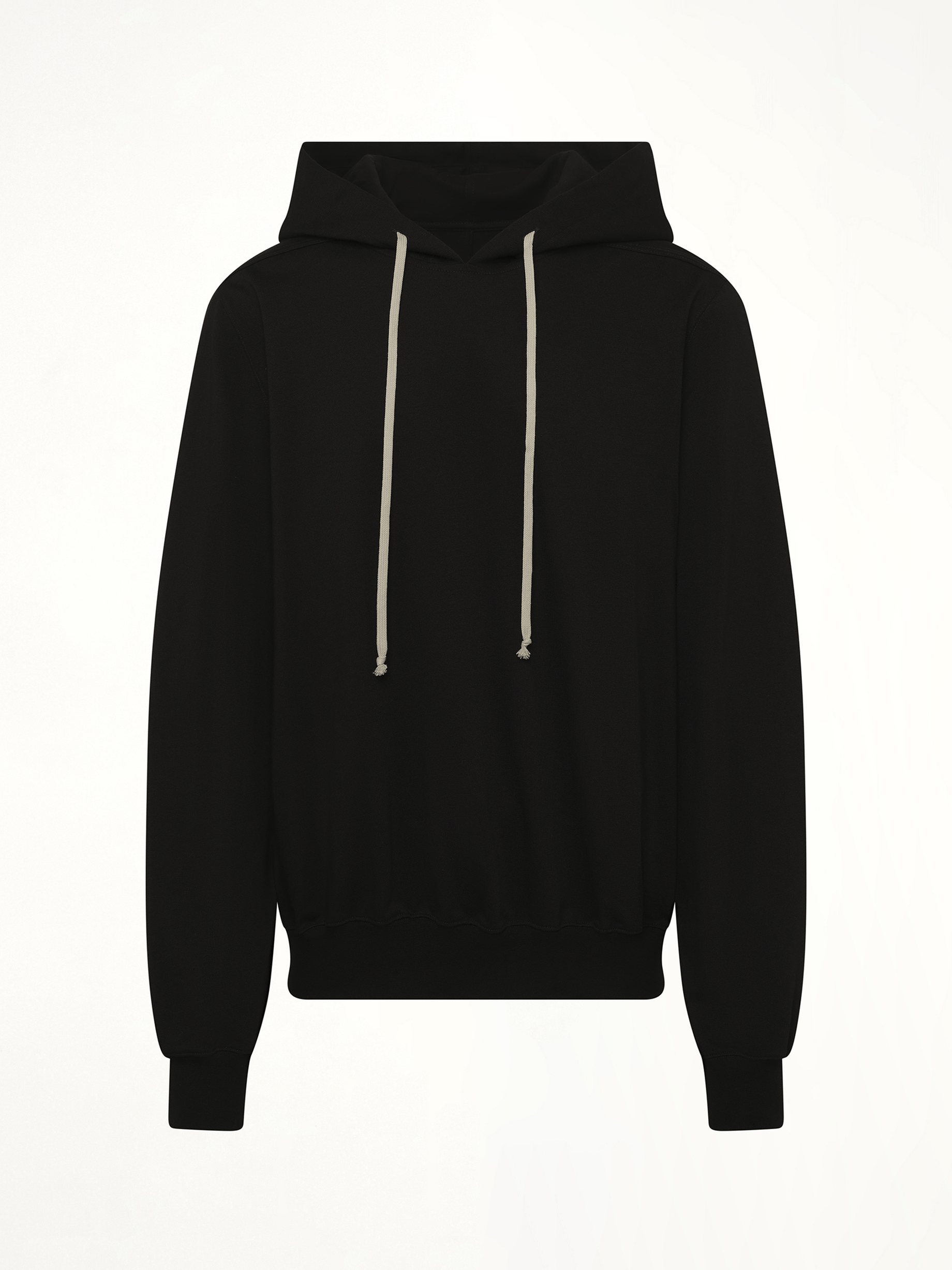 Rick Owens's Pullover Hoodie in Black offers a sleek and modern design, perfect for elevating your casual wardrobe. This versatile hoodie combines comfort with a contemporary edge, making it an essential piece for any fashion-forward individual. Experience the perfect blend of style and functionality with this must-have addition to your collection.