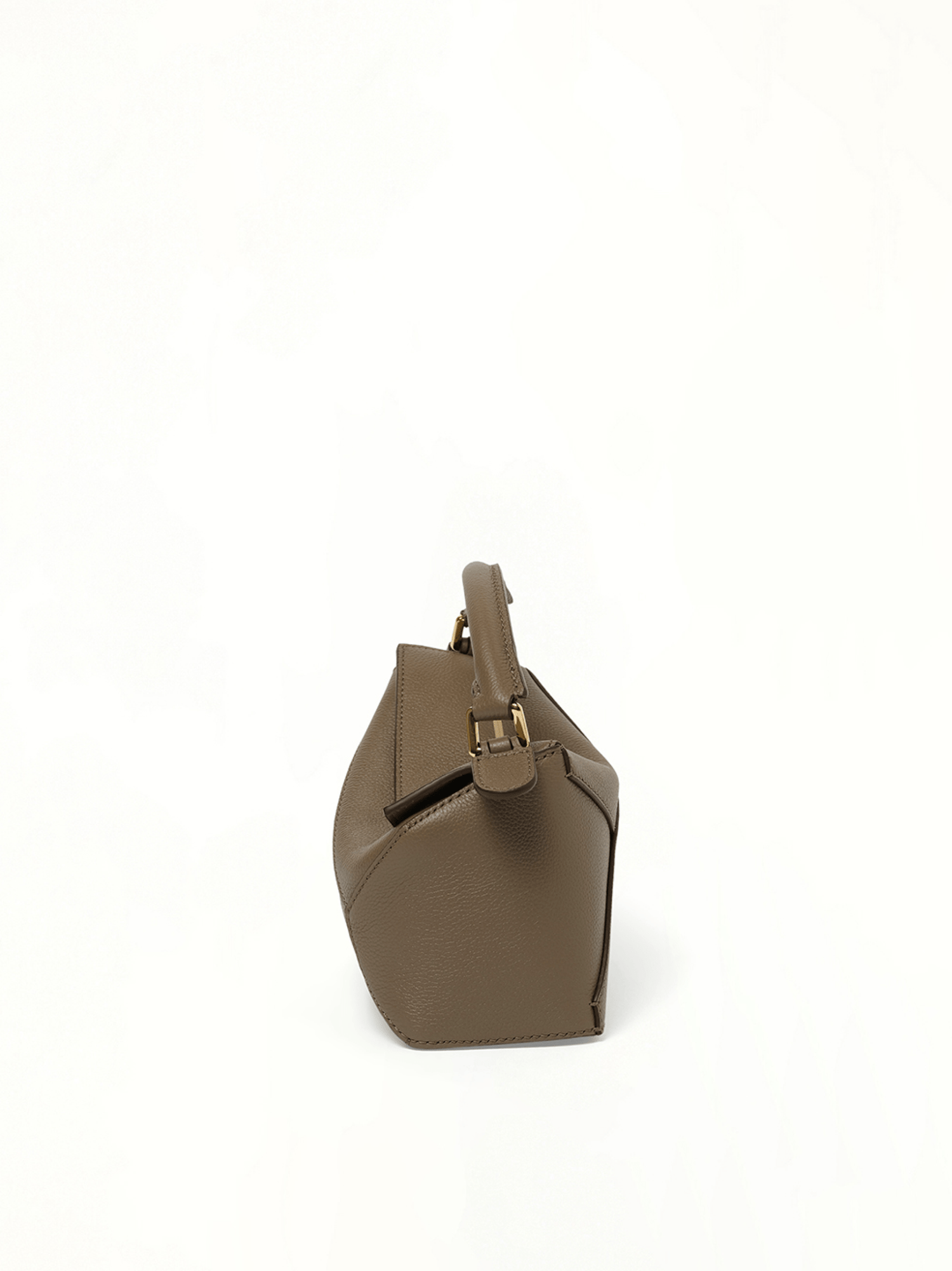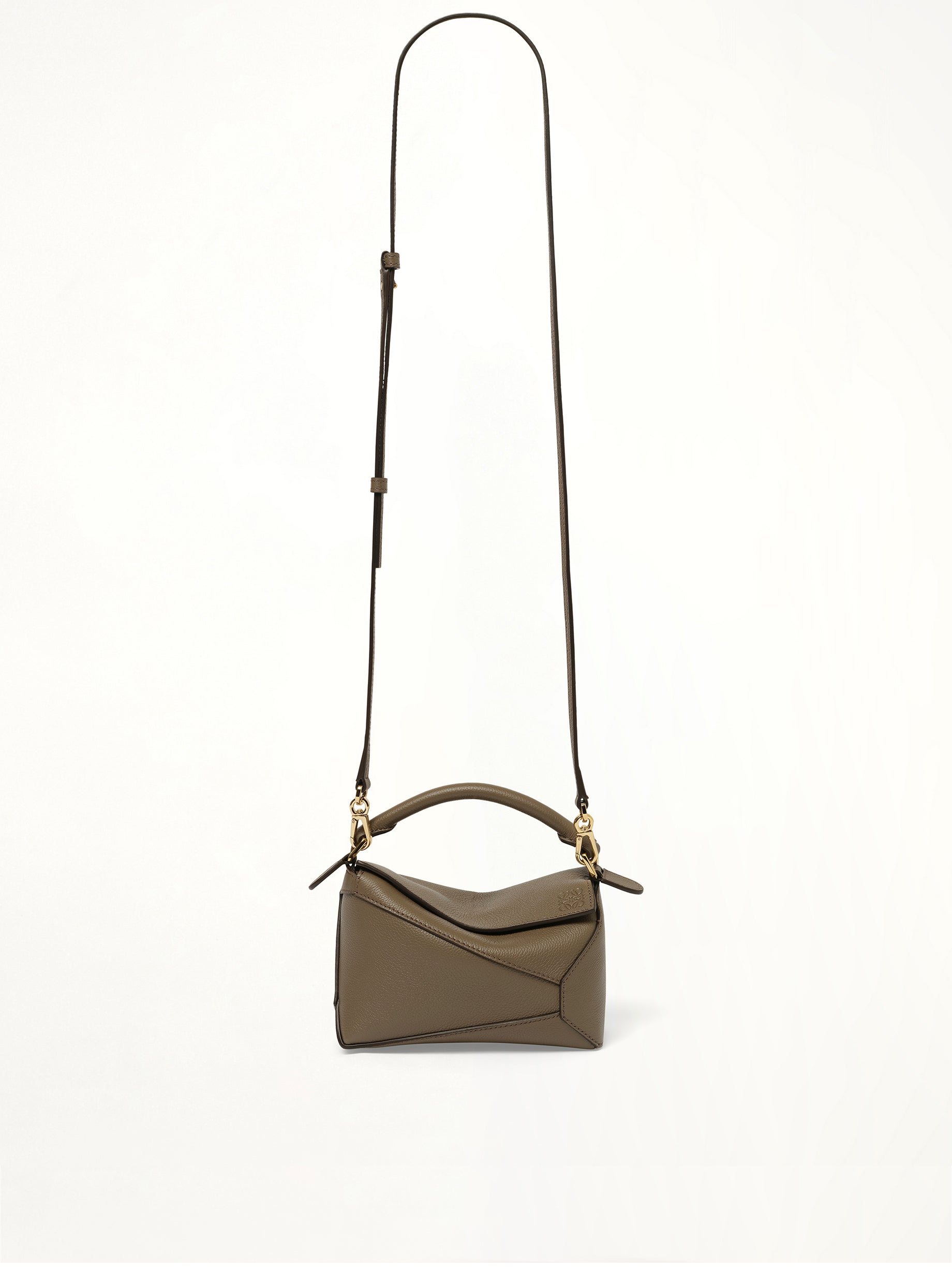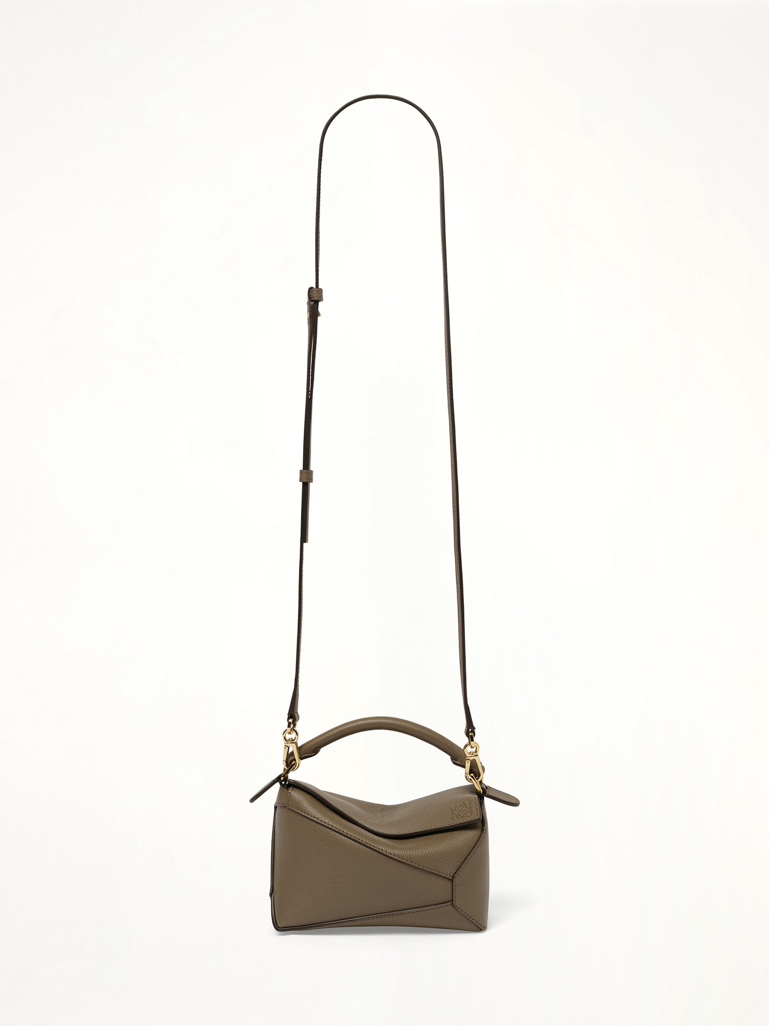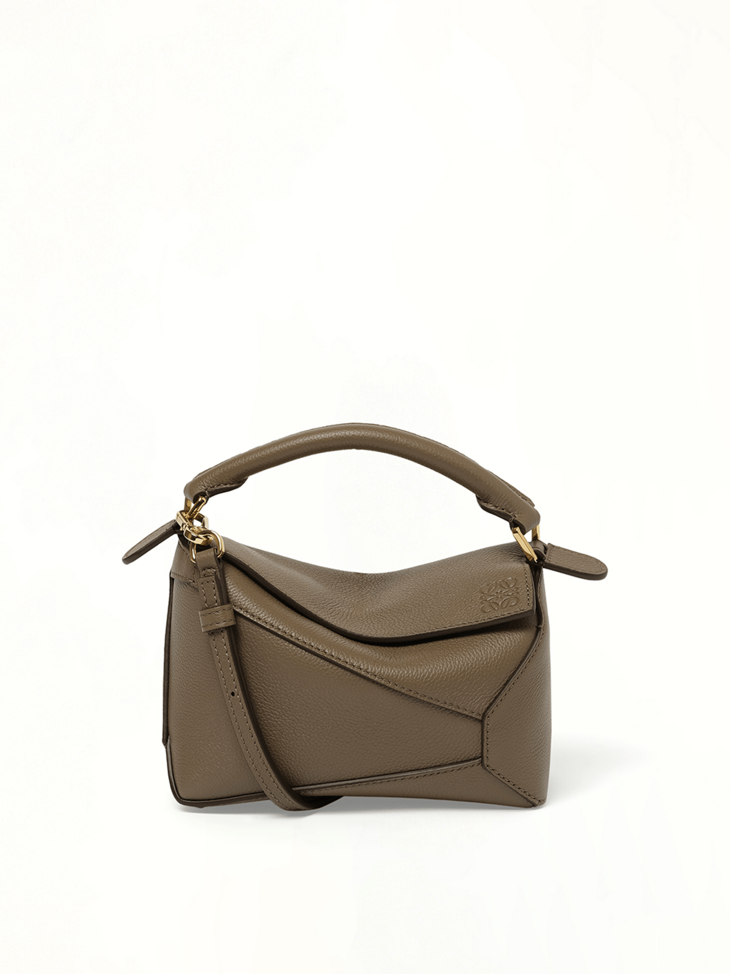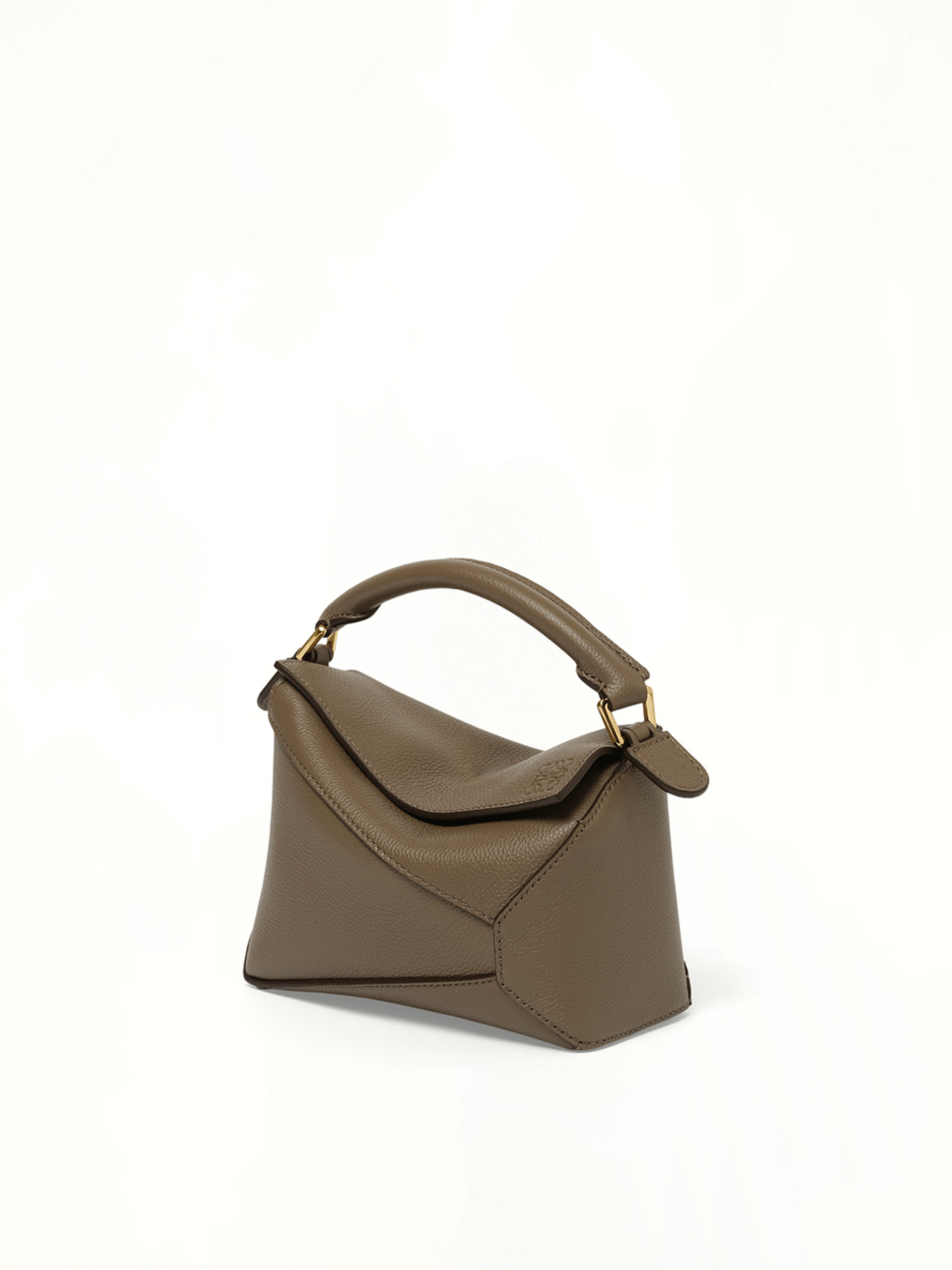 Loewe's Puzzle Edge Mini Bag in Taupe is a sophisticated and versatile accessory, perfect for elevating any ensemble. Its unique geometric design and compact size make it an ideal choice for both day and night.