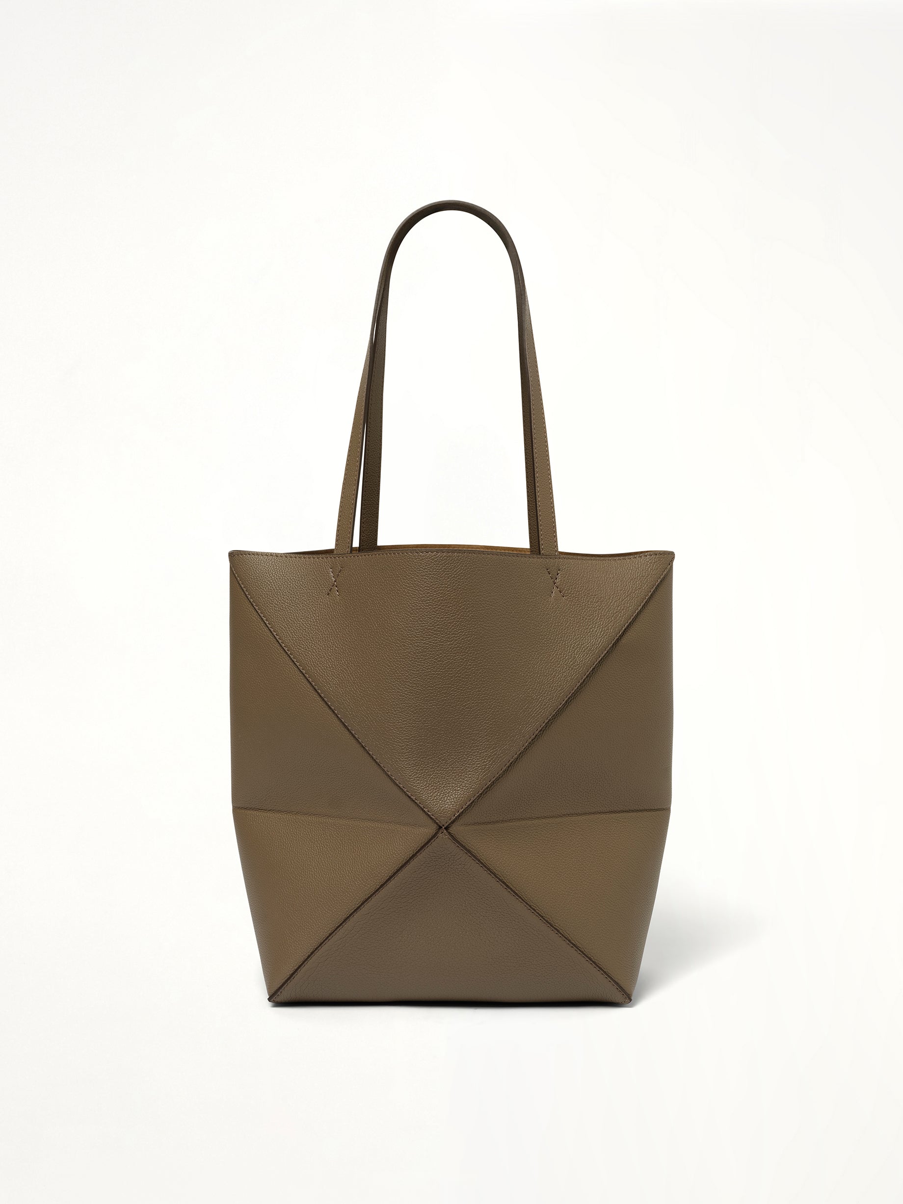 Loewe's Puzzle Fold Tote Medium in Taupe is a sophisticated and versatile accessory, perfect for both casual and formal occasions. Its unique design and practical features make it a must-have for any fashion-forward individual.