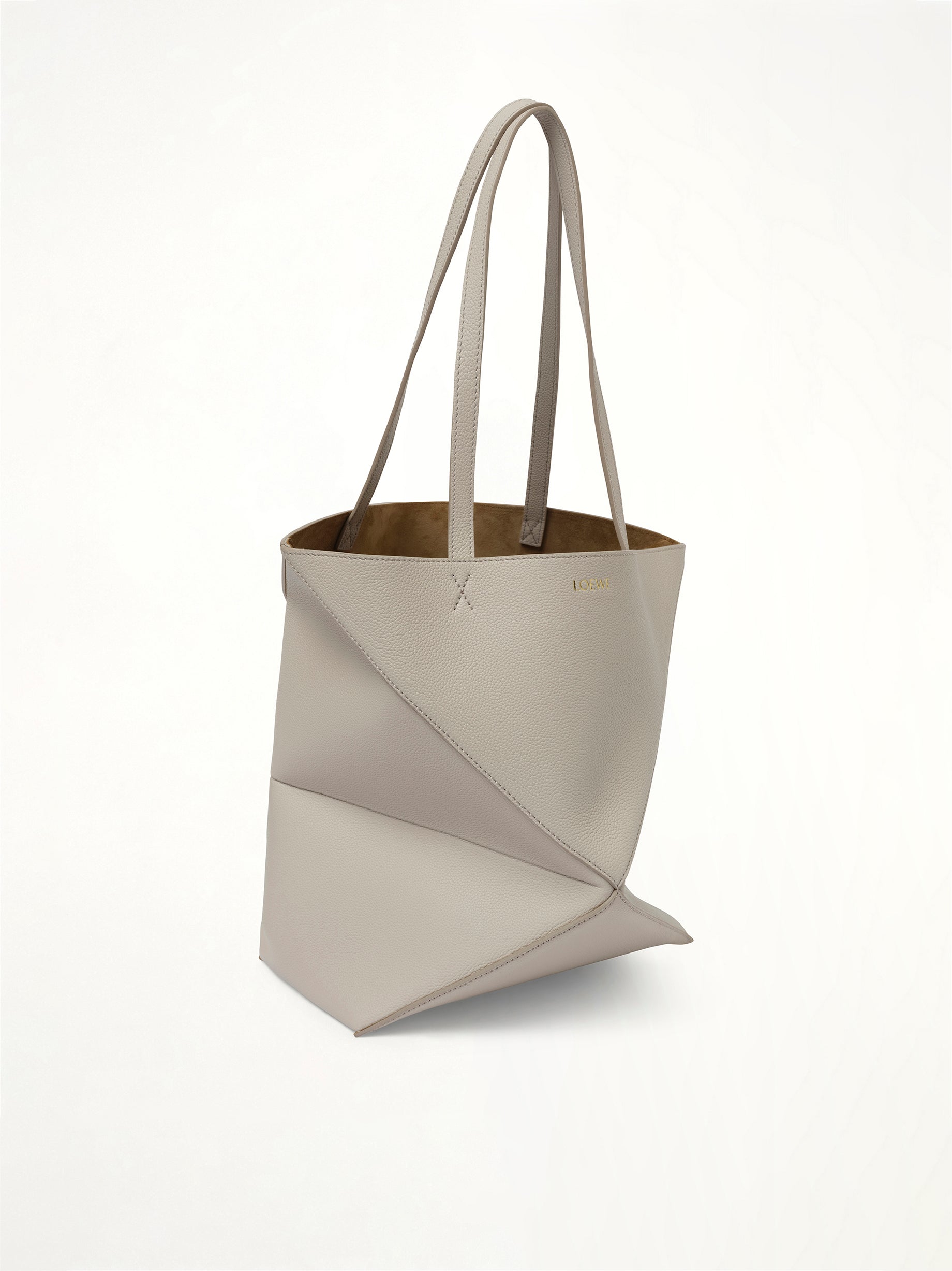 Loewe's Puzzle Fold Tote Medium in Light Ghost is a sophisticated and versatile accessory, perfect for elevating any ensemble. Its unique geometric design and neutral hue make it a timeless addition to your wardrobe.
