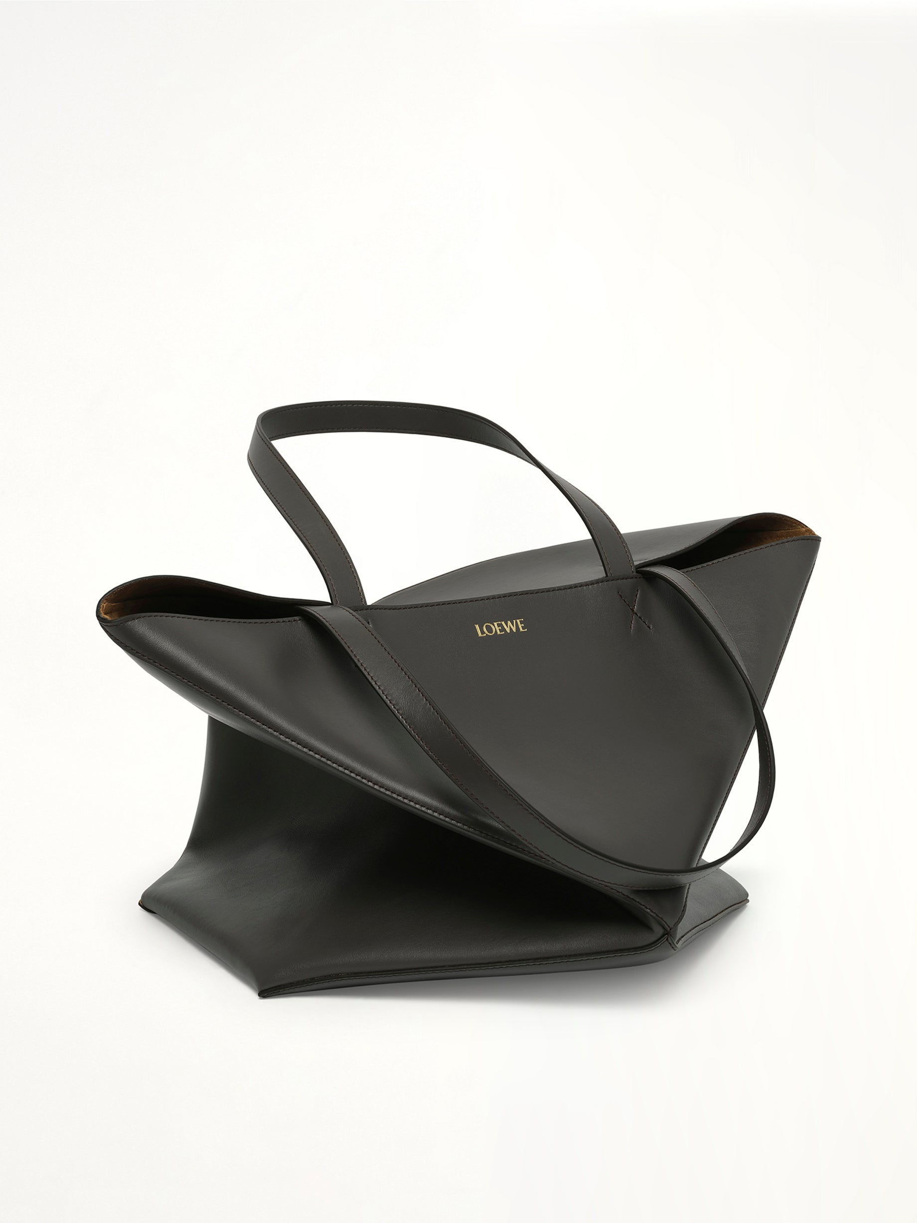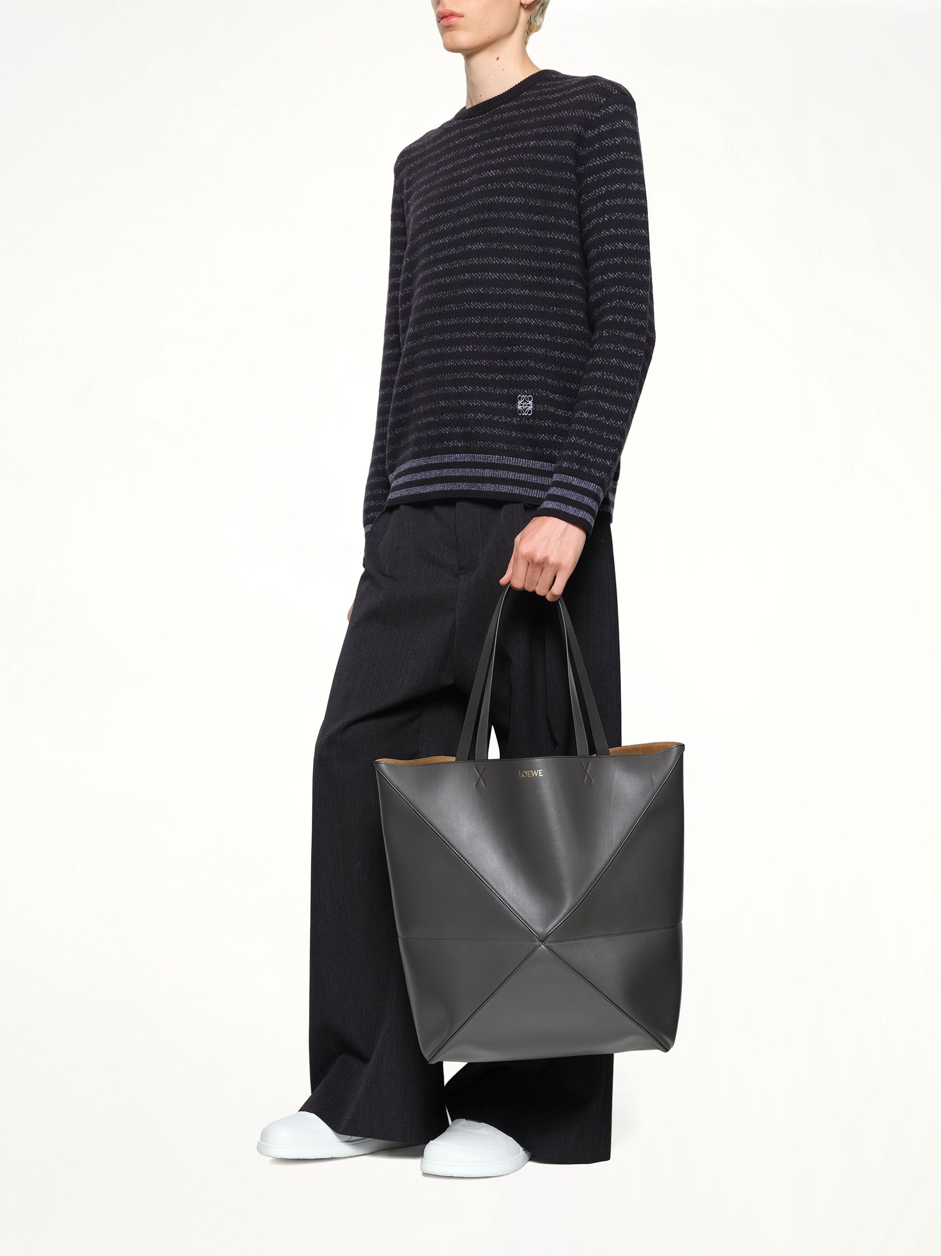 LOEWE's Puzzle Fold Tote XL in Dark Grey is a sophisticated and versatile accessory designed for the modern individual. Its unique geometric design and spacious interior make it perfect for both everyday use and special occasions.