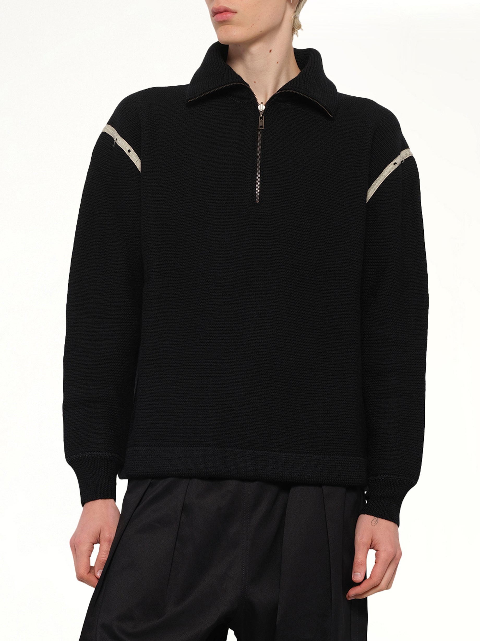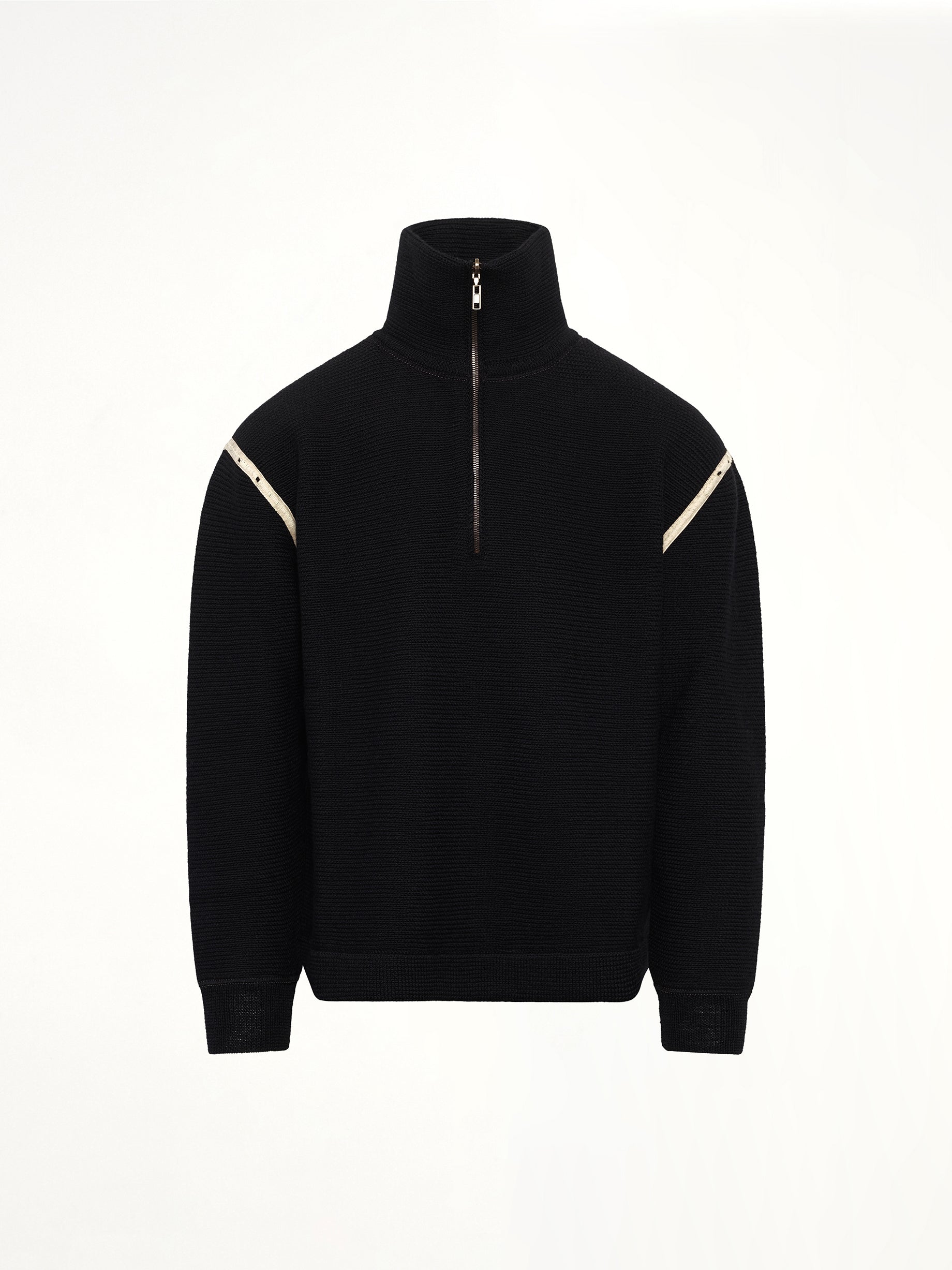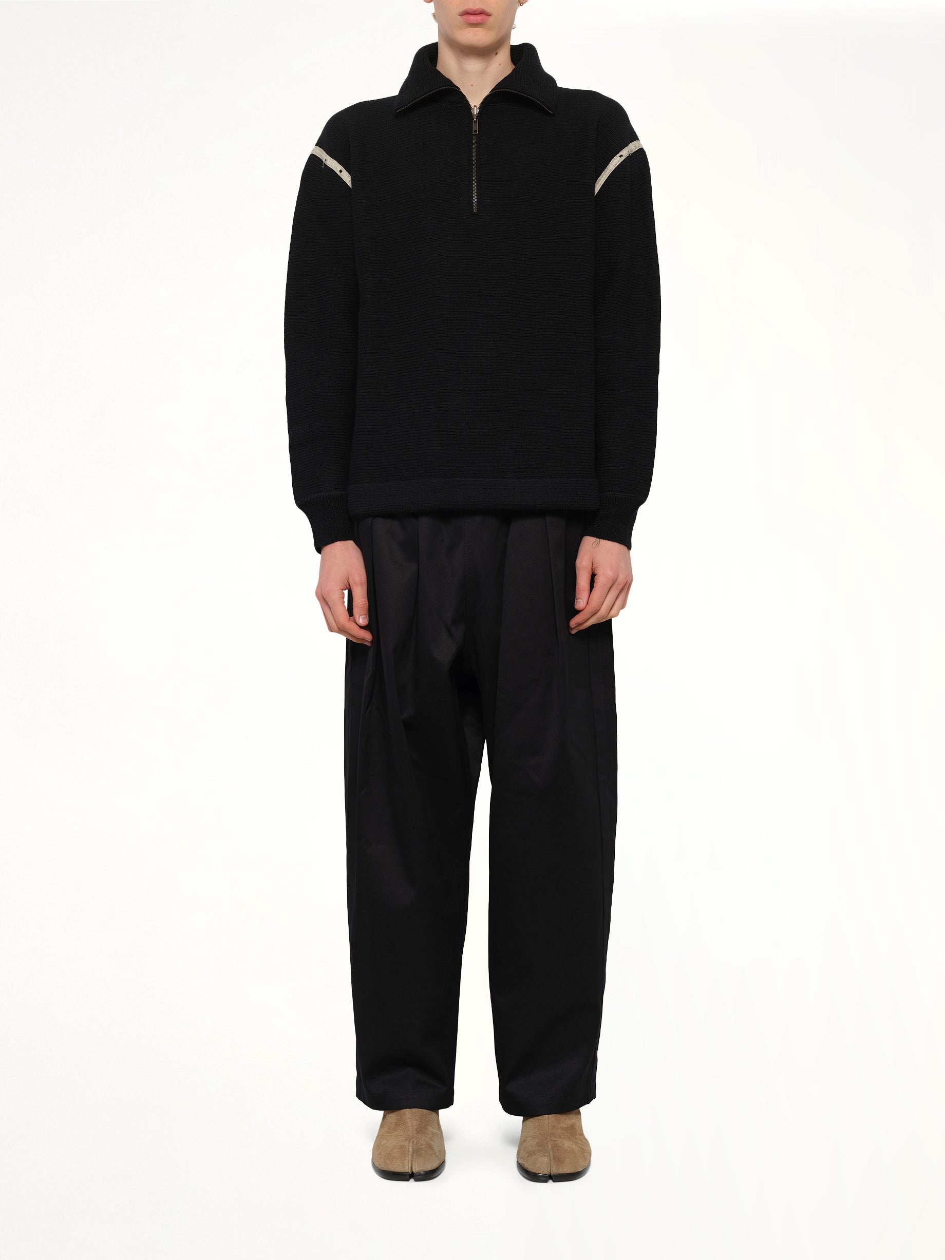Maison Margiela's Quarter Zip Sweater in Black is a sophisticated blend of style and comfort, perfect for any modern wardrobe. This versatile piece offers a sleek silhouette and a timeless design.