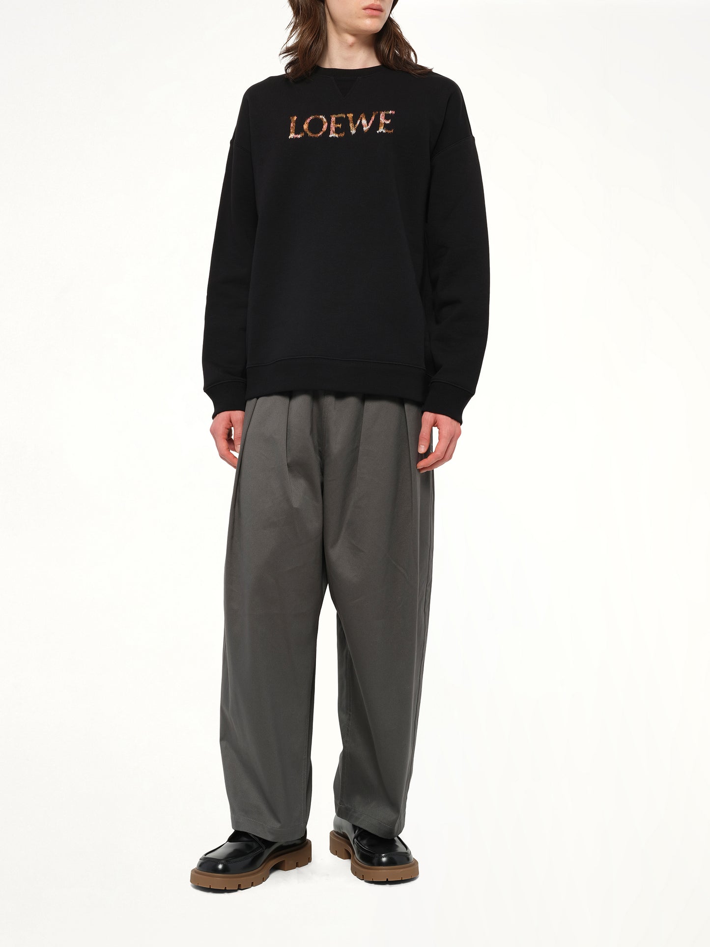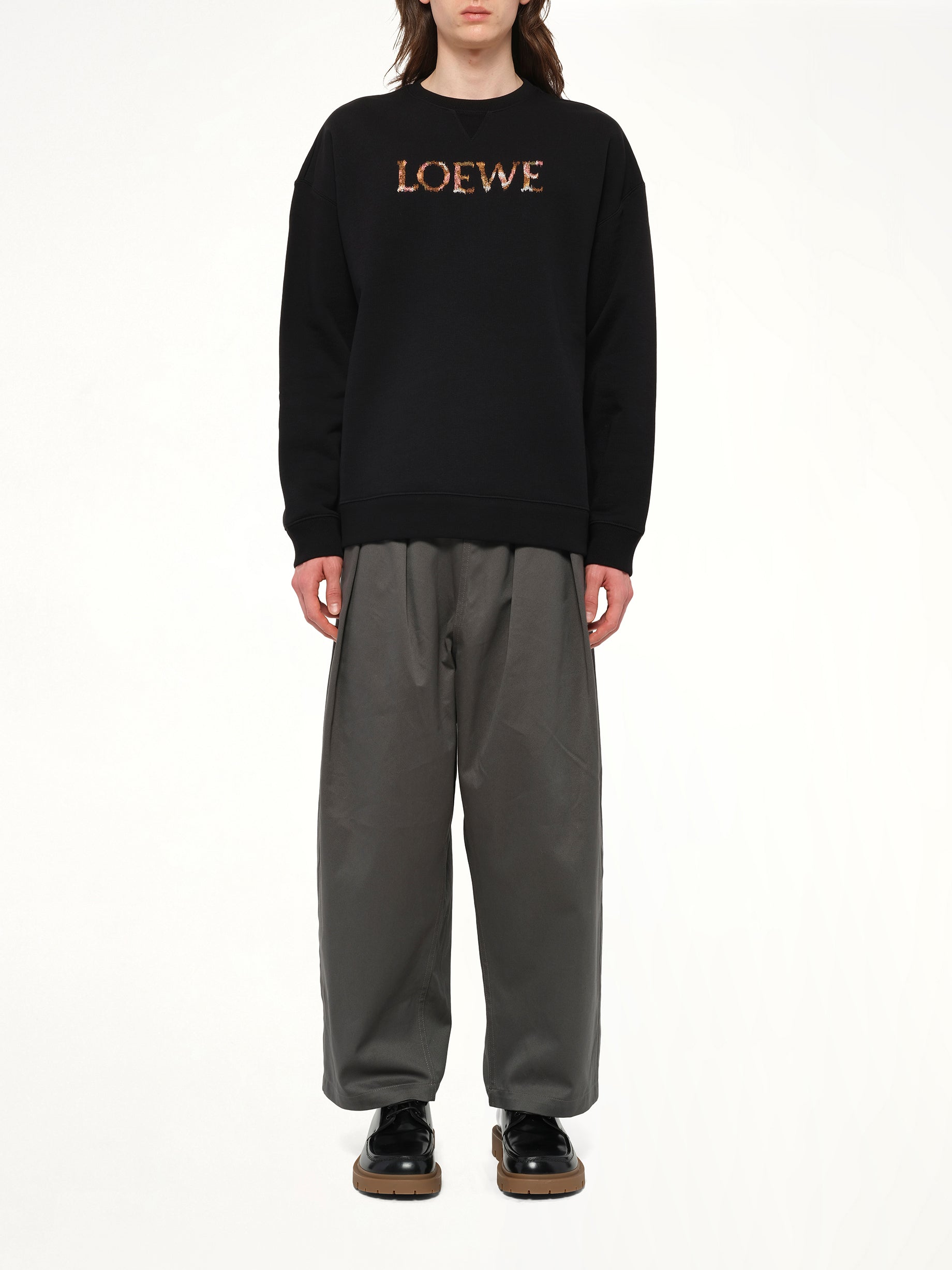 Loewe's Regular Fit Sweatshirt in Black is a versatile and stylish addition to any wardrobe. Perfect for casual outings or relaxed evenings, this sweatshirt combines comfort with a modern aesthetic.