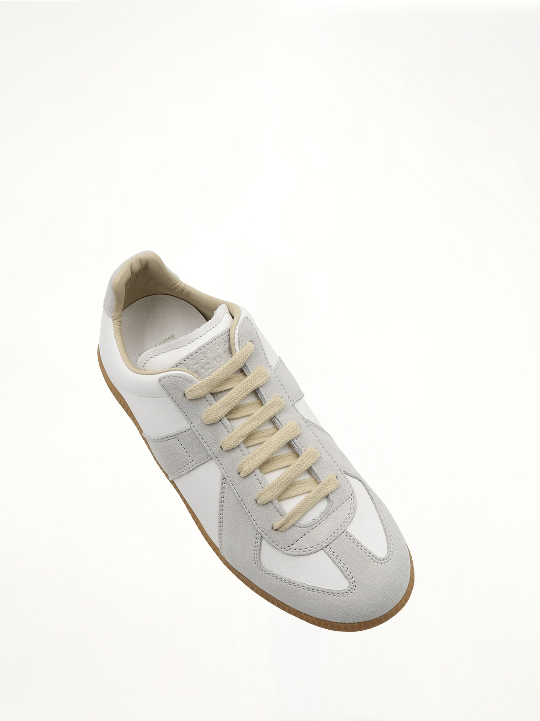 The Maison's iconic Replica sneakers are inspired by Austrian sports shoes from the seventies. Details on the Replica pairs are continually reworked in line with the season's inspirations. This iconic Replica sneaker in white panelled design and suede trim provide a classic look that will never go out of style, perfect for any season.