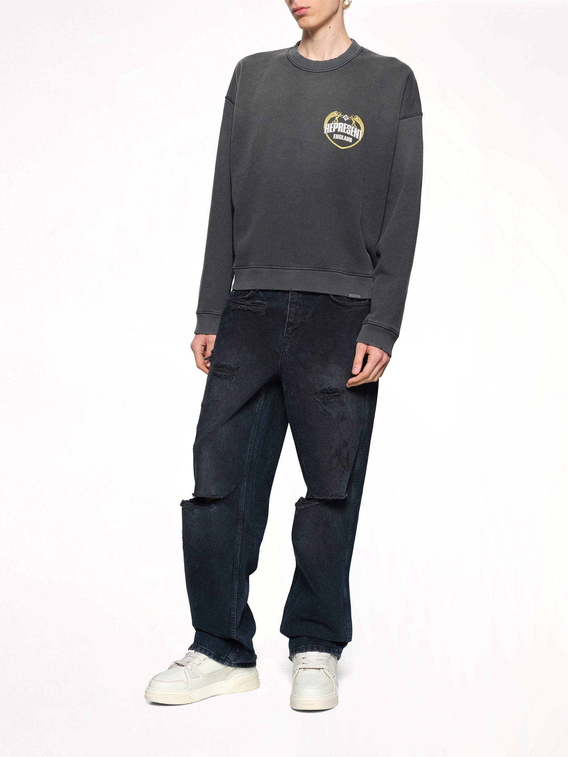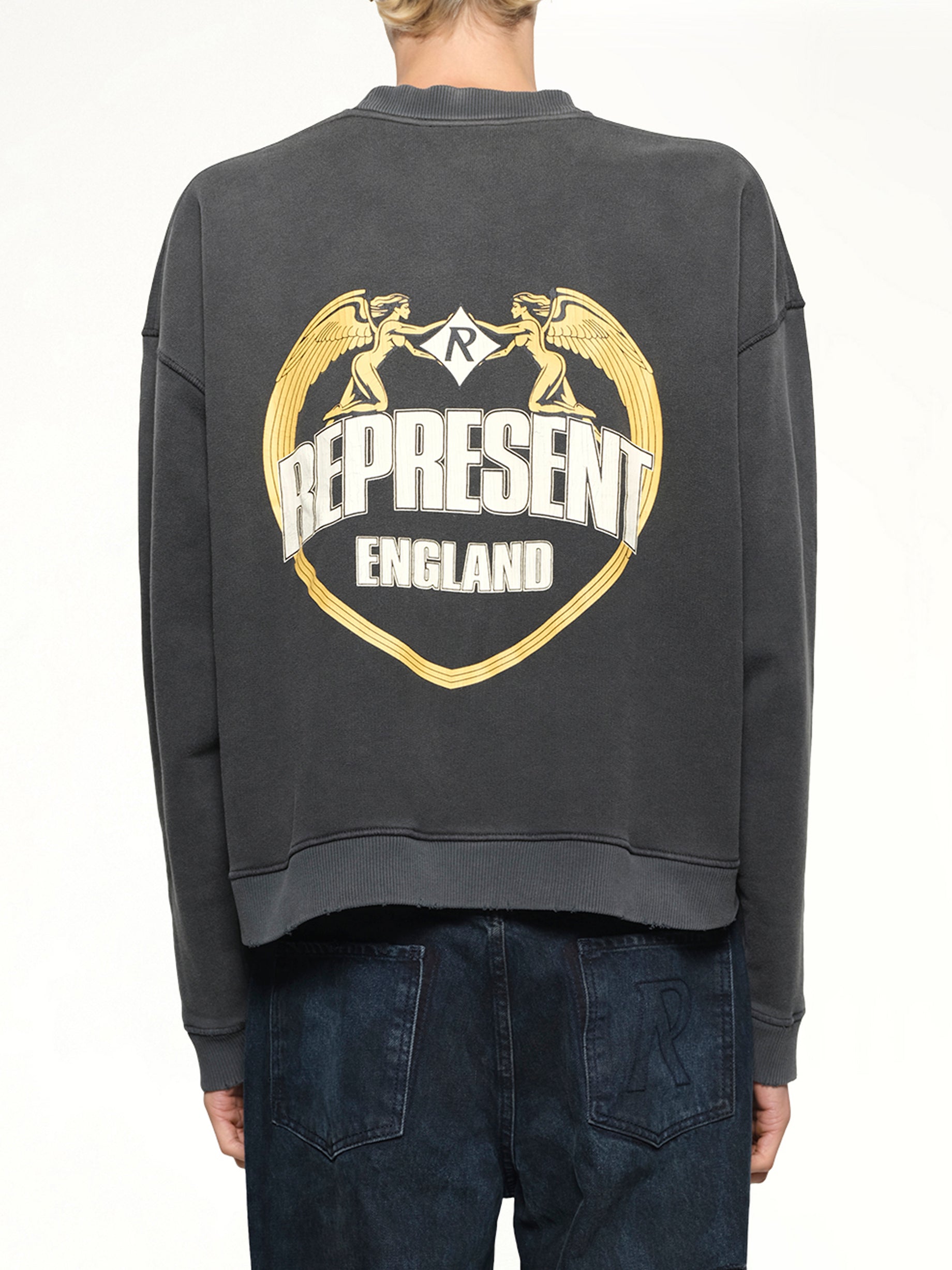 Represent's Represent Angel Border Sweatshirt in Stained Black is a stylish and comfortable addition to any wardrobe. This sweatshirt features a unique design that combines modern aesthetics with a classic fit.