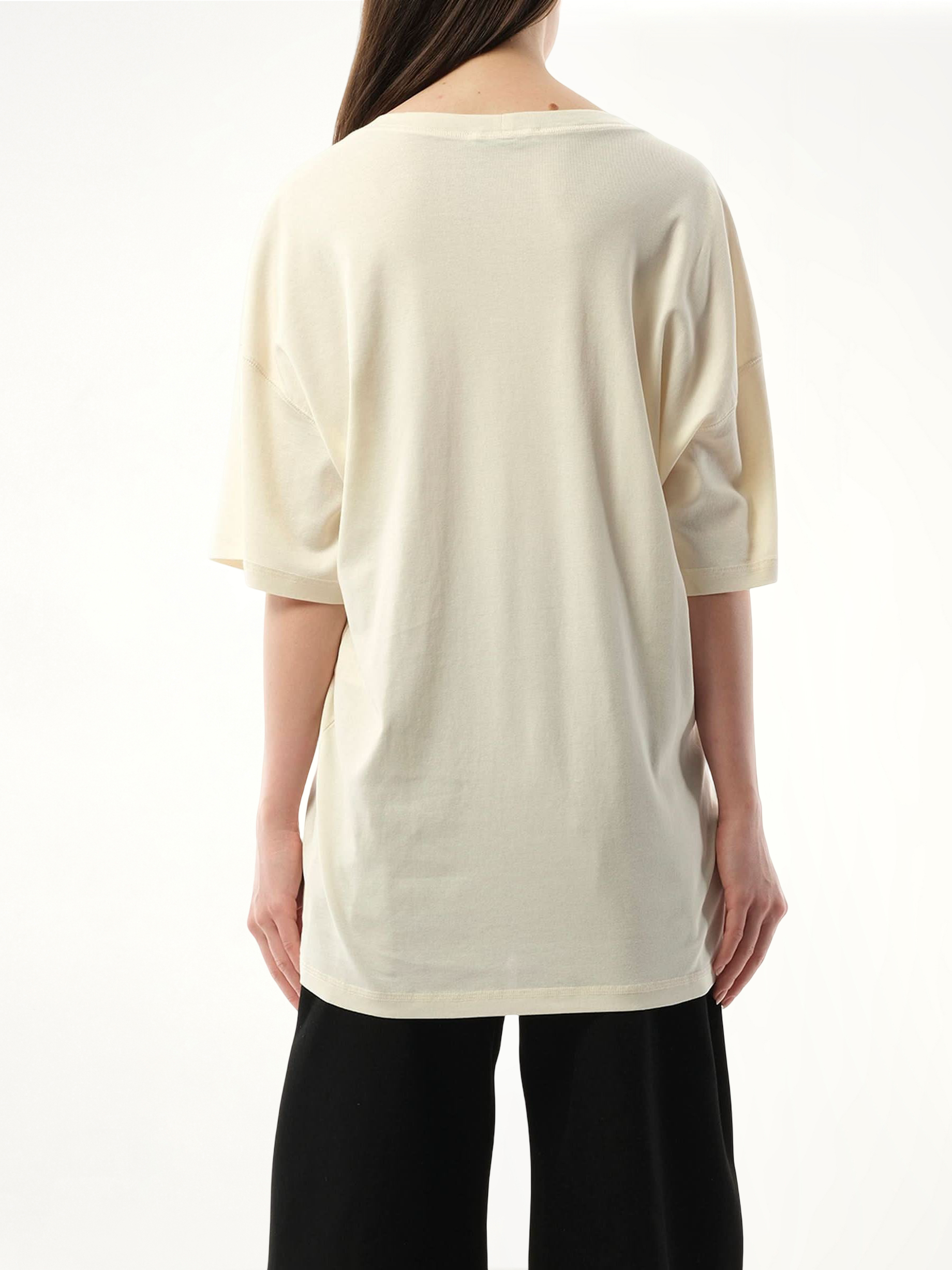This rib t-shirt in light cream is a versatile addition to any wardrobe. Made with a ribbed fabric, it offers a comfortable and flattering fit. With its light cream color, it can easily be dressed up or down for any occasion.