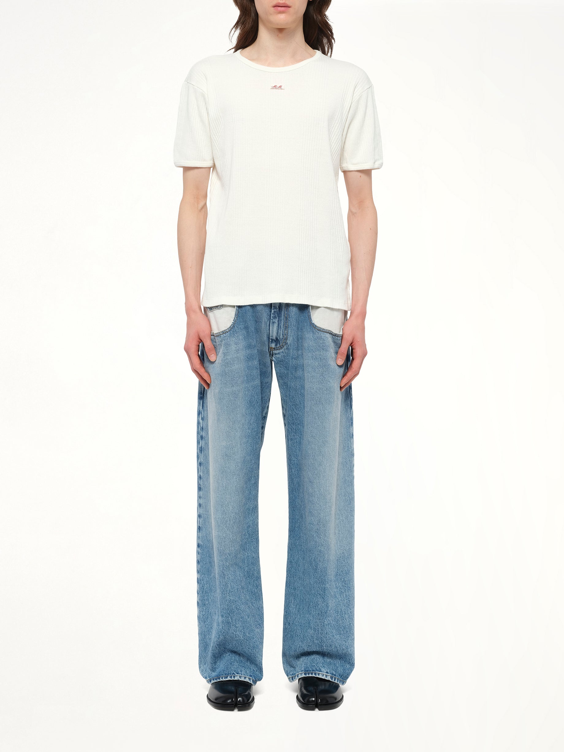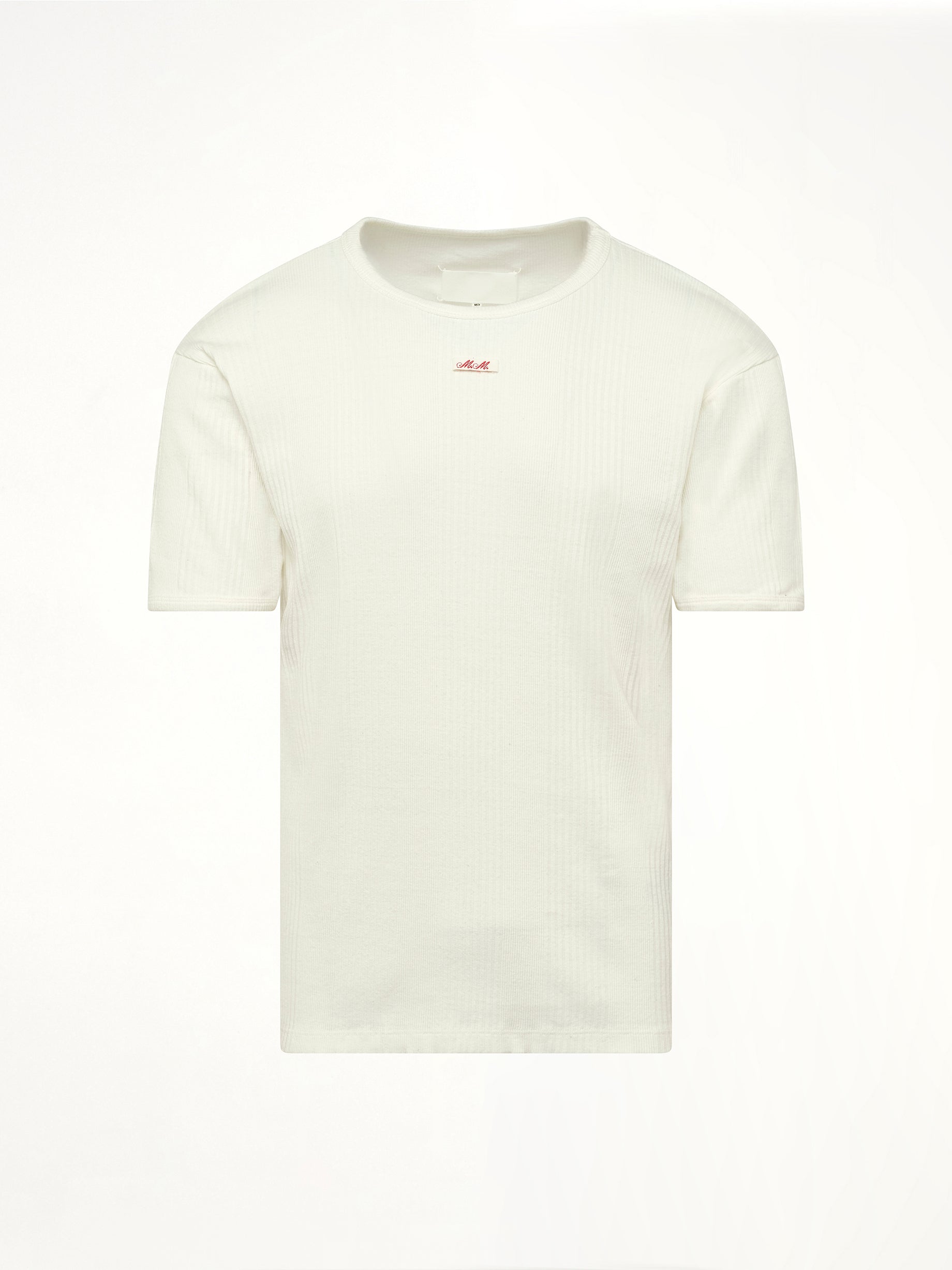 Maison Margiela's Rib T-Shirt in Off White is a versatile wardrobe staple that combines minimalist design with a comfortable fit. This essential piece is perfect for layering or wearing on its own, offering a timeless look for any occasion.