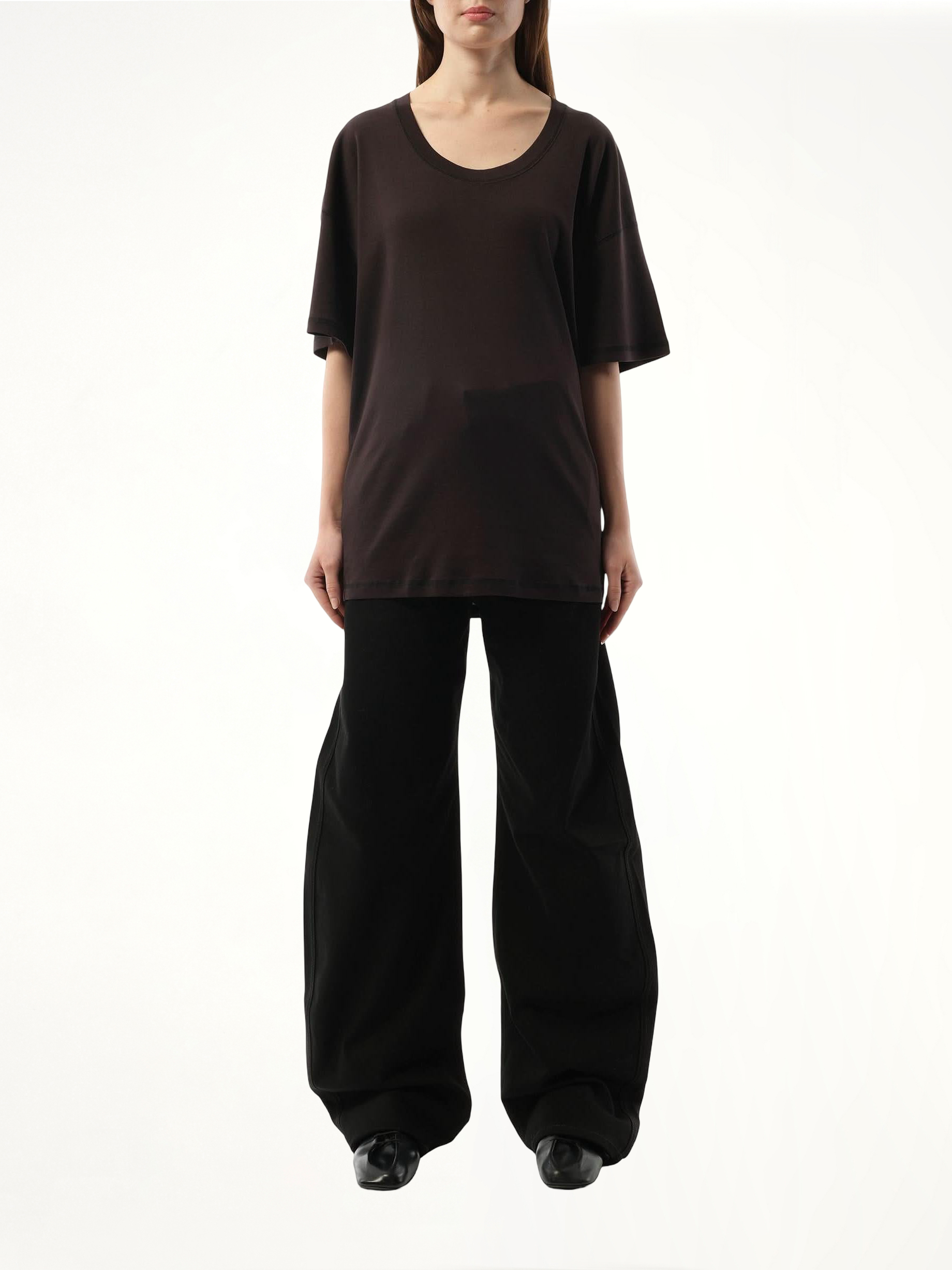 This rib t-shirt in squid ink is a versatile addition to any wardrobe. Made with a ribbed fabric, it offers a comfortable and flattering fit. With its squid ink color, it can easily be dressed up or down for any occasion.