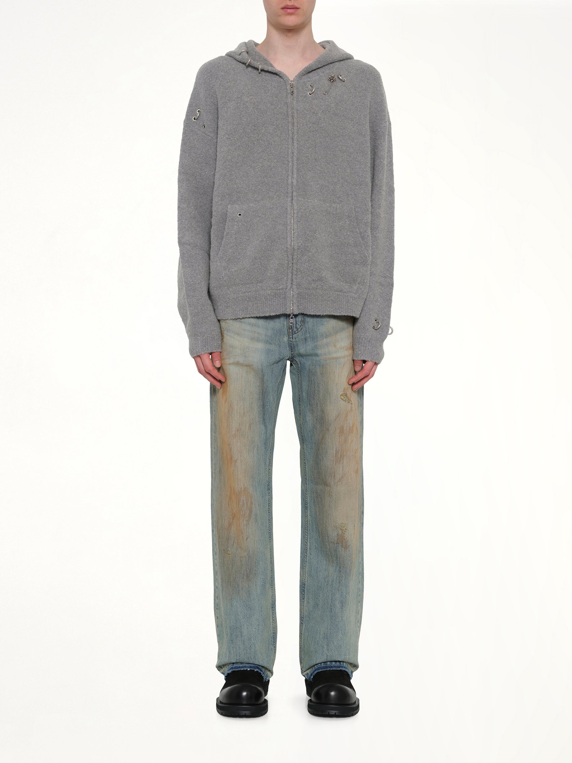 We11done's Rose with Thorns Zip-Up Hoodie in Grey is a stylish and contemporary piece that combines comfort with edgy design. Perfect for casual outings, this hoodie features a unique rose with thorns graphic that adds a touch of rebellious flair.