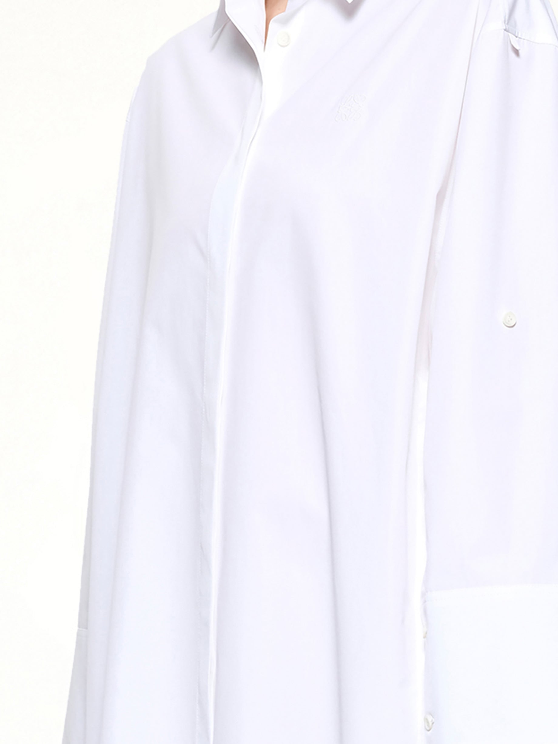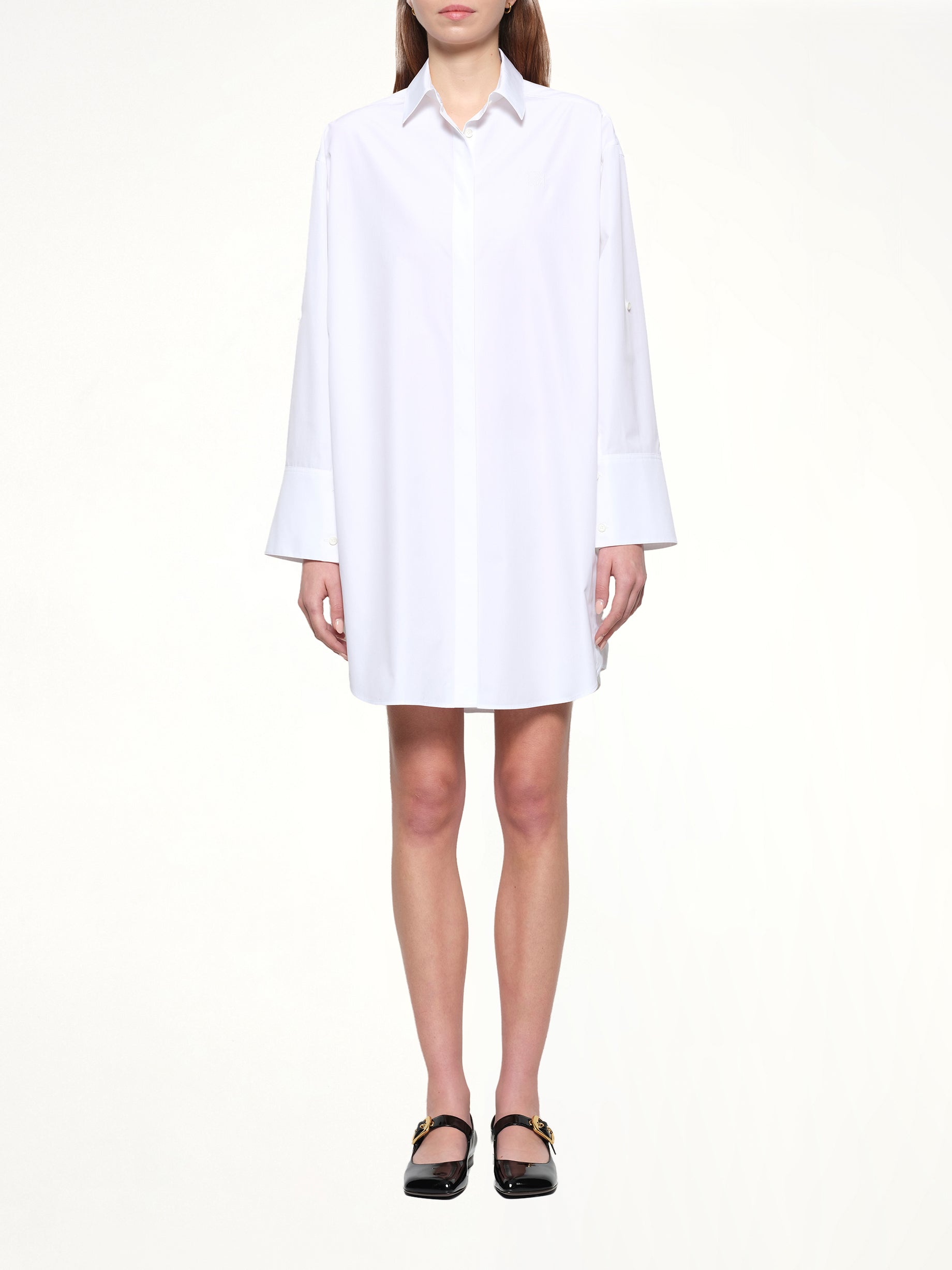 Loewe's Shirt Dress in White is a sophisticated blend of classic tailoring and modern design, perfect for any occasion. Its minimalist aesthetic and versatile silhouette make it a wardrobe staple.