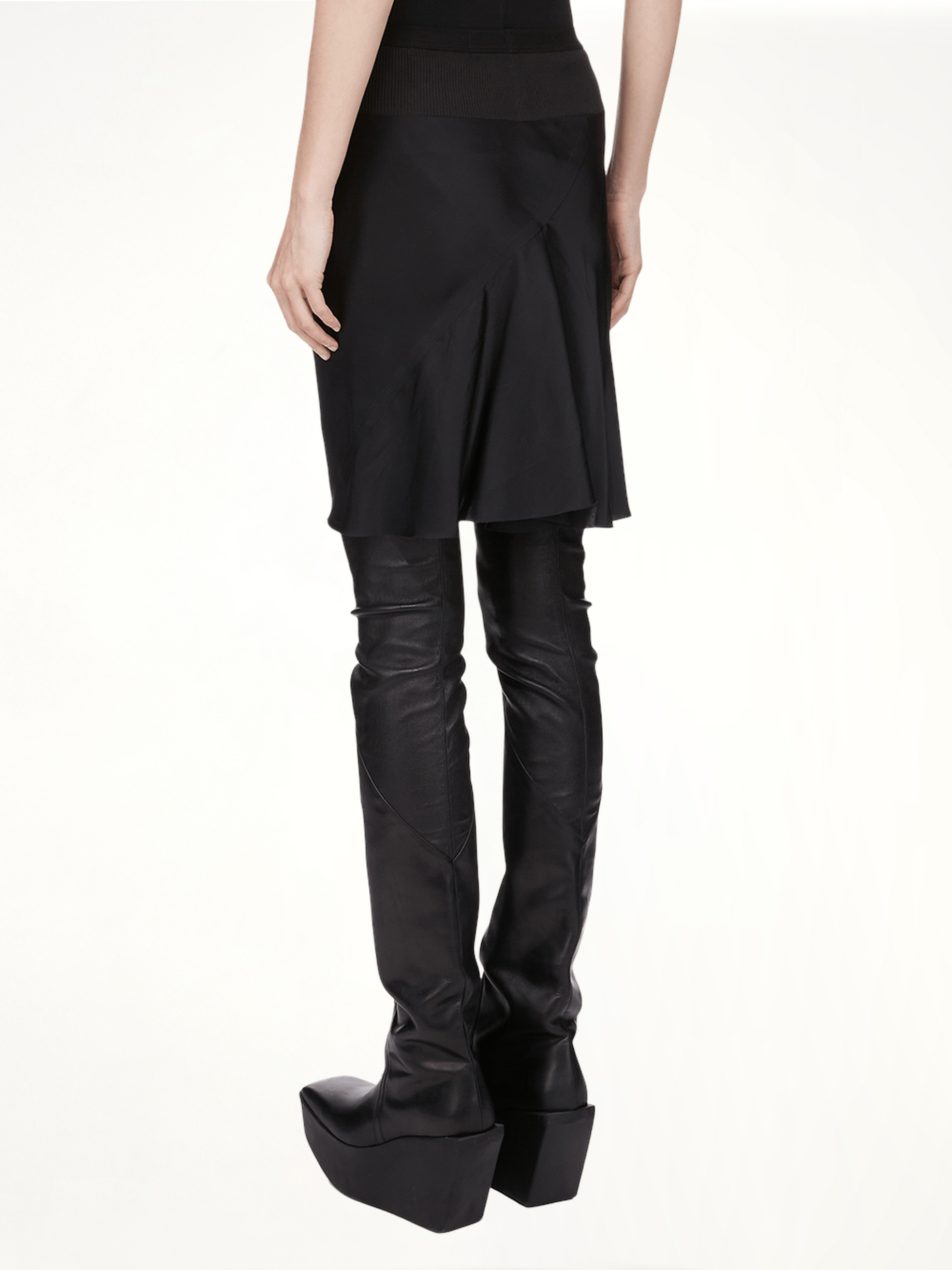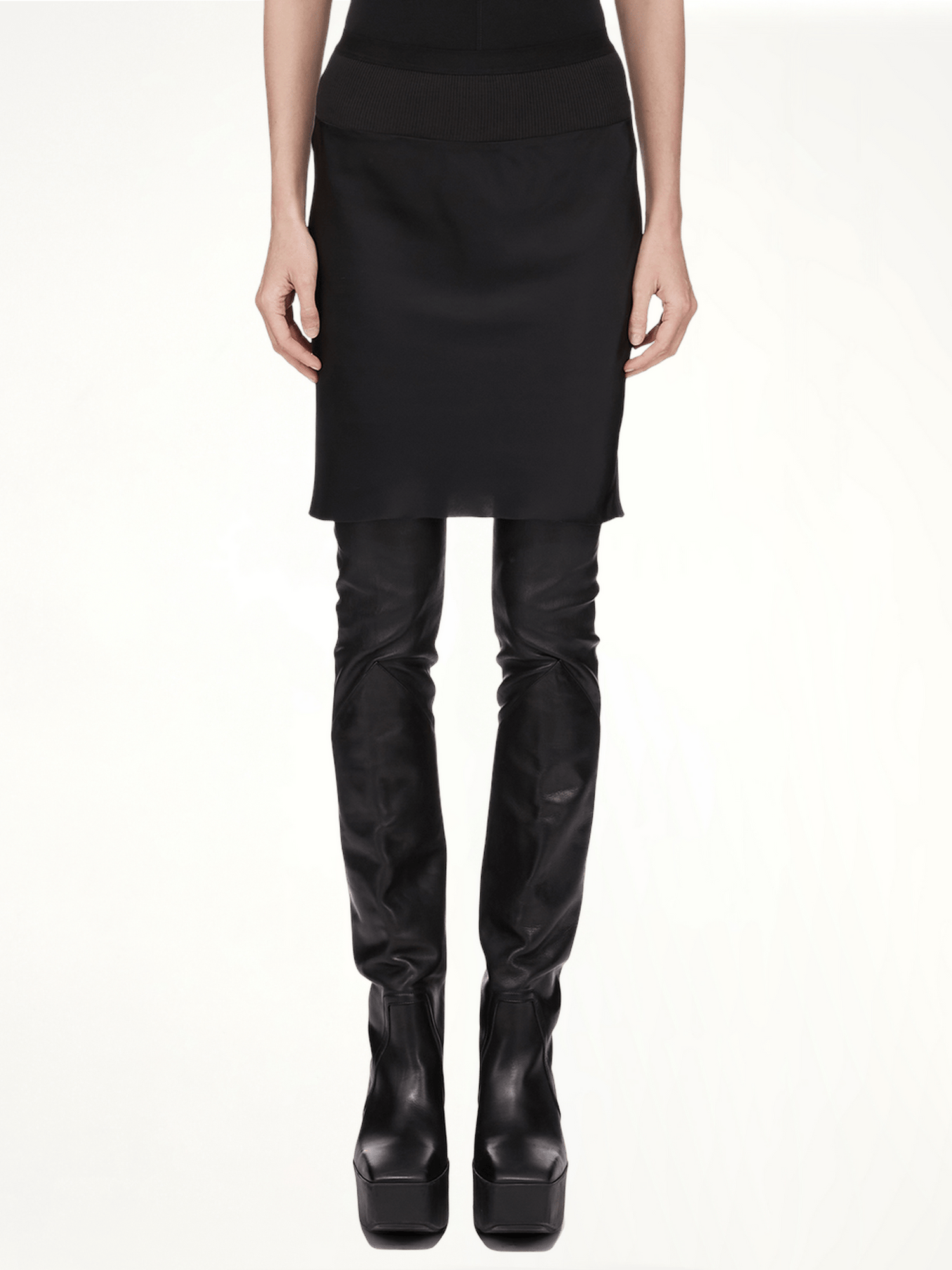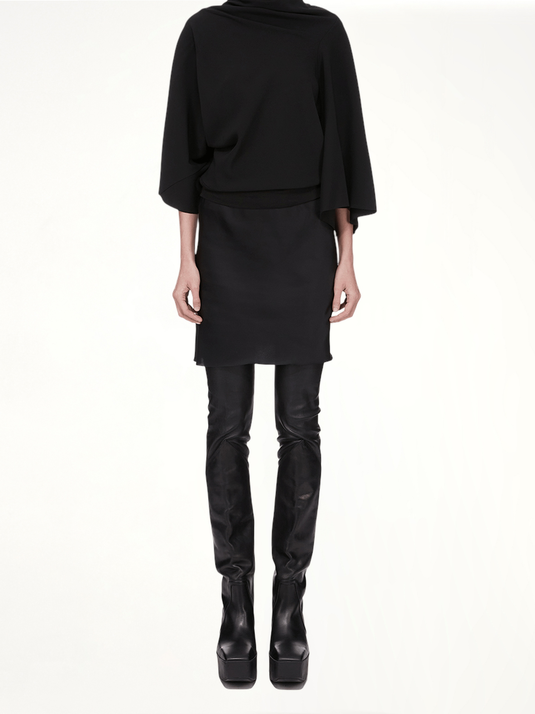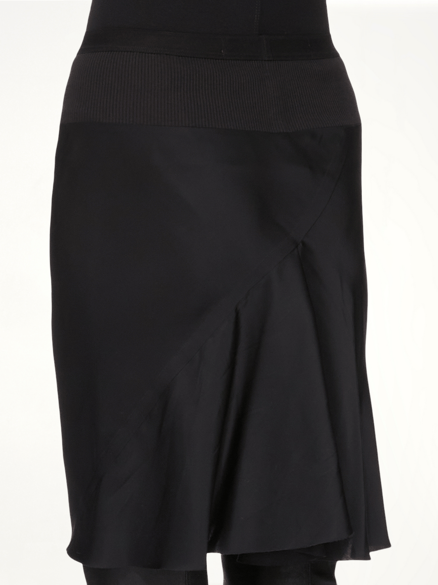 Rick Owens's Short Bias Skirt in Black is a sophisticated piece that embodies the designer's avant-garde aesthetic. This skirt features a unique bias cut that drapes elegantly, offering a modern silhouette.