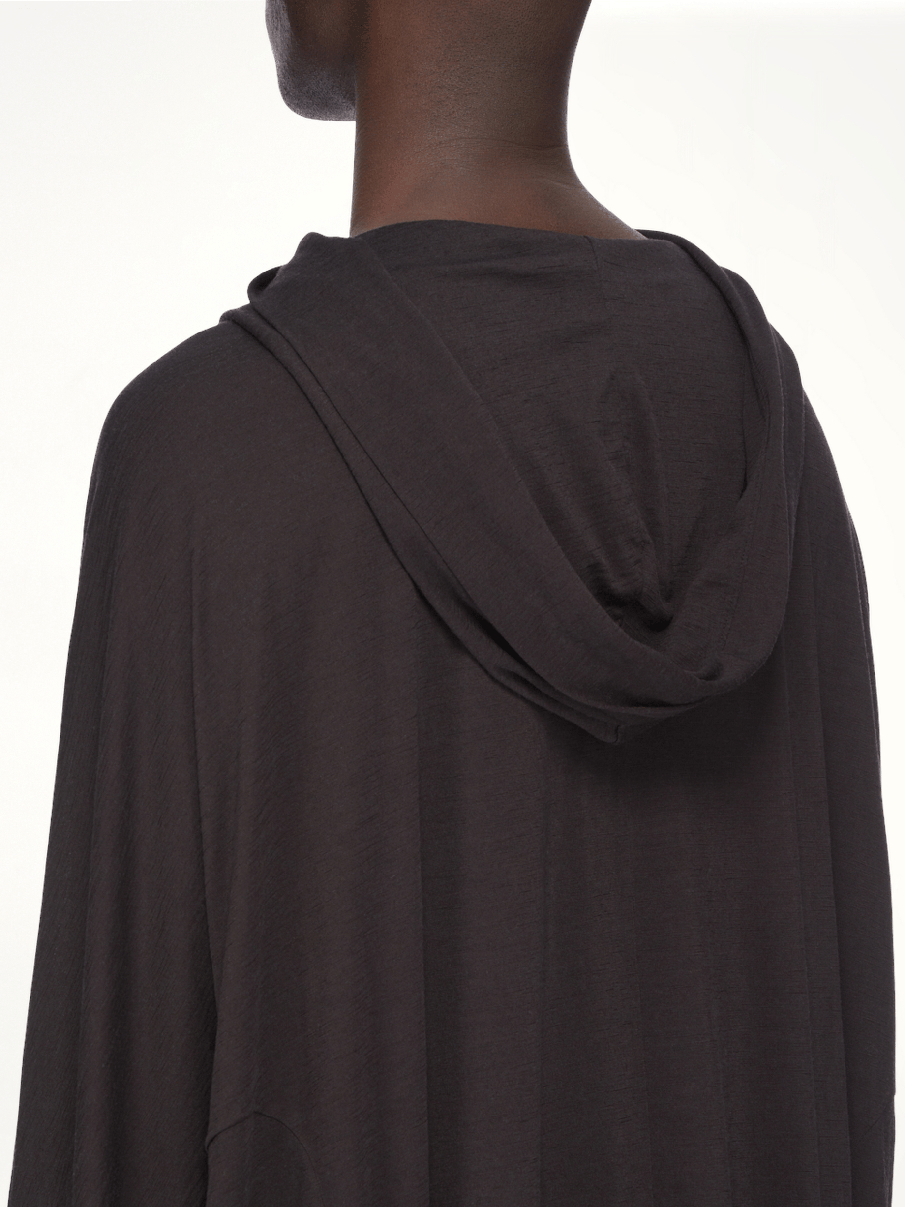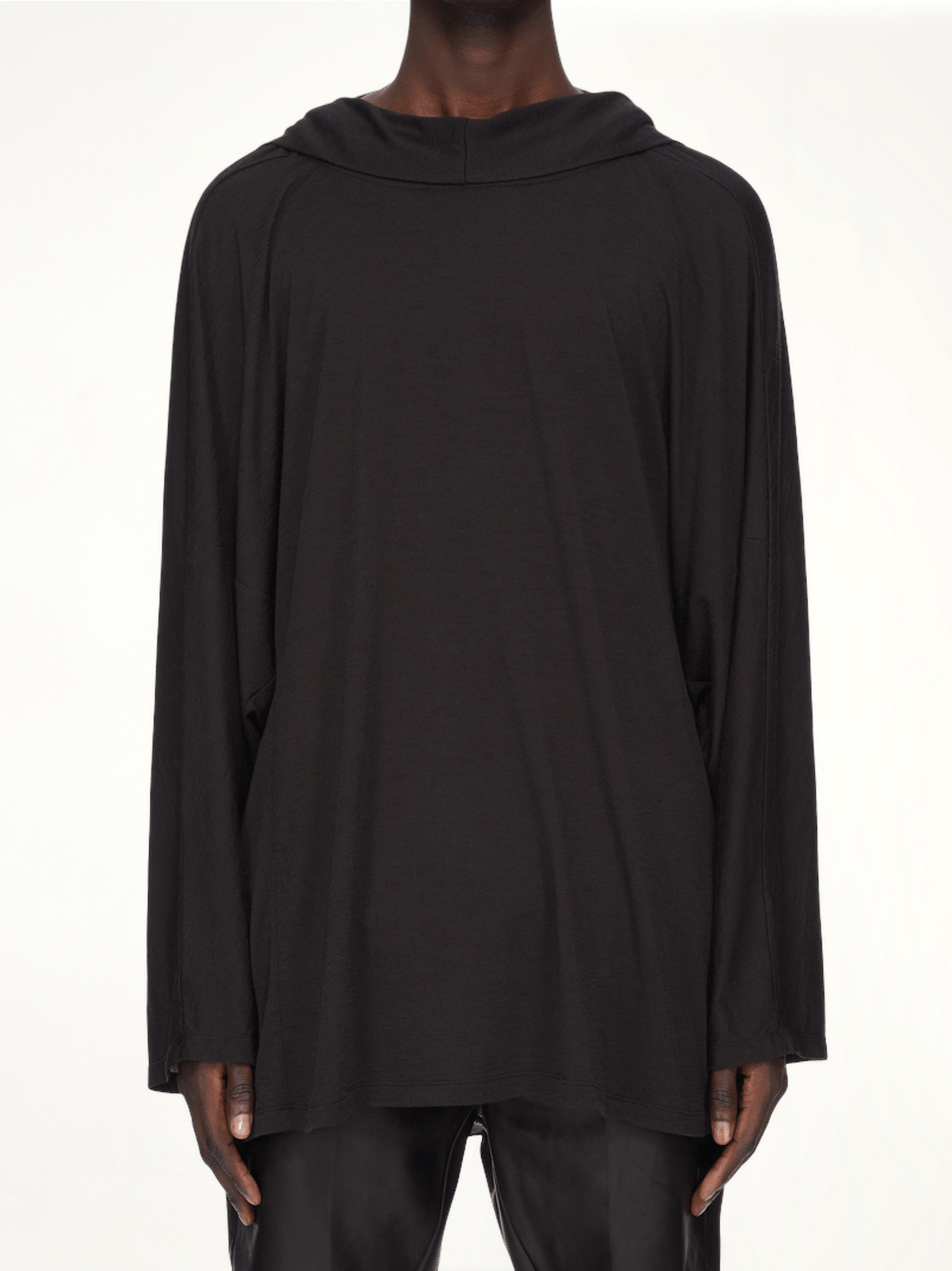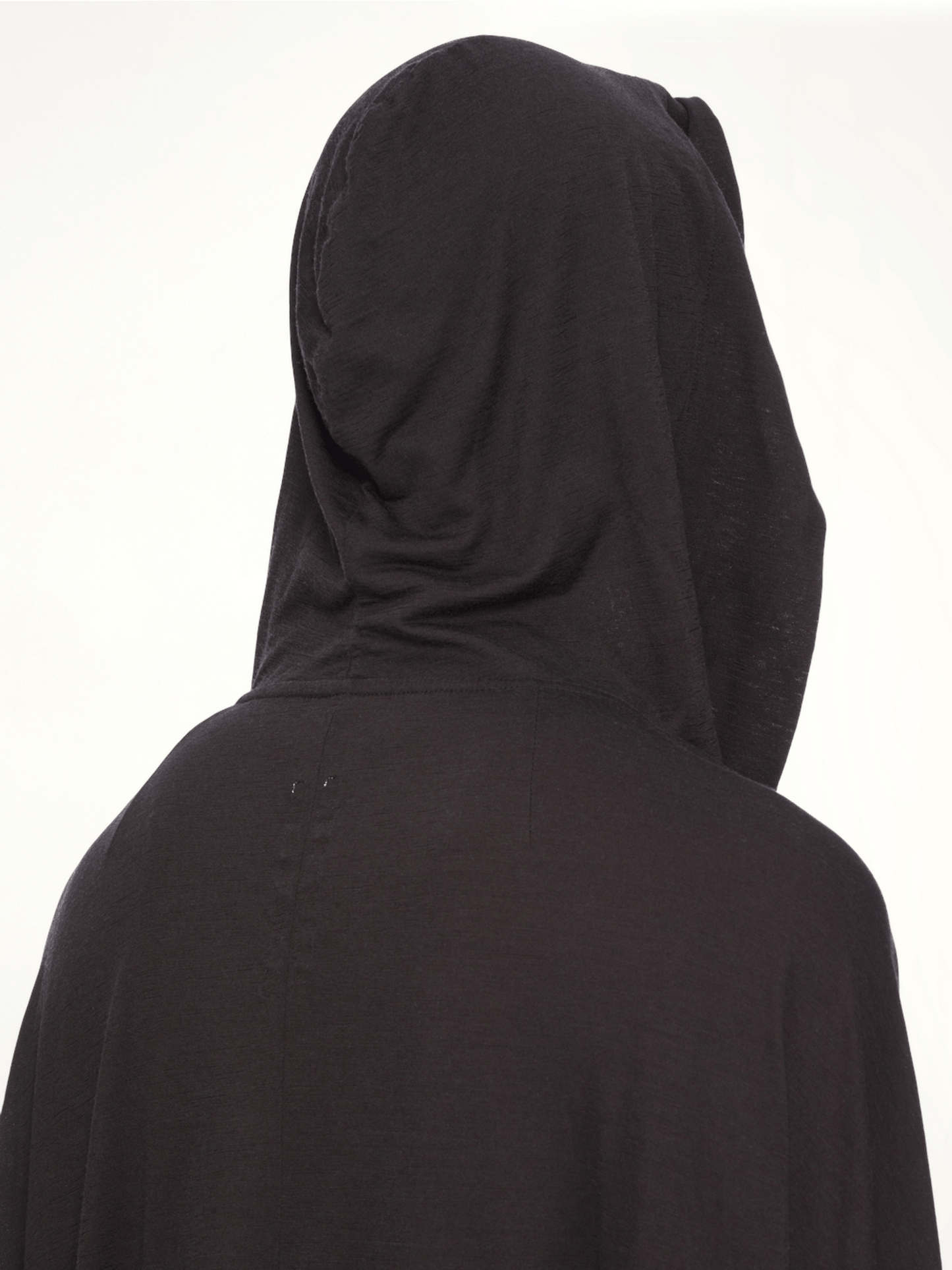 Rick Owens's Silk Wool Hooded Tunic in Black is a sophisticated blend of modern design and timeless elegance. This versatile piece is perfect for elevating any wardrobe with its unique silhouette and luxurious feel.