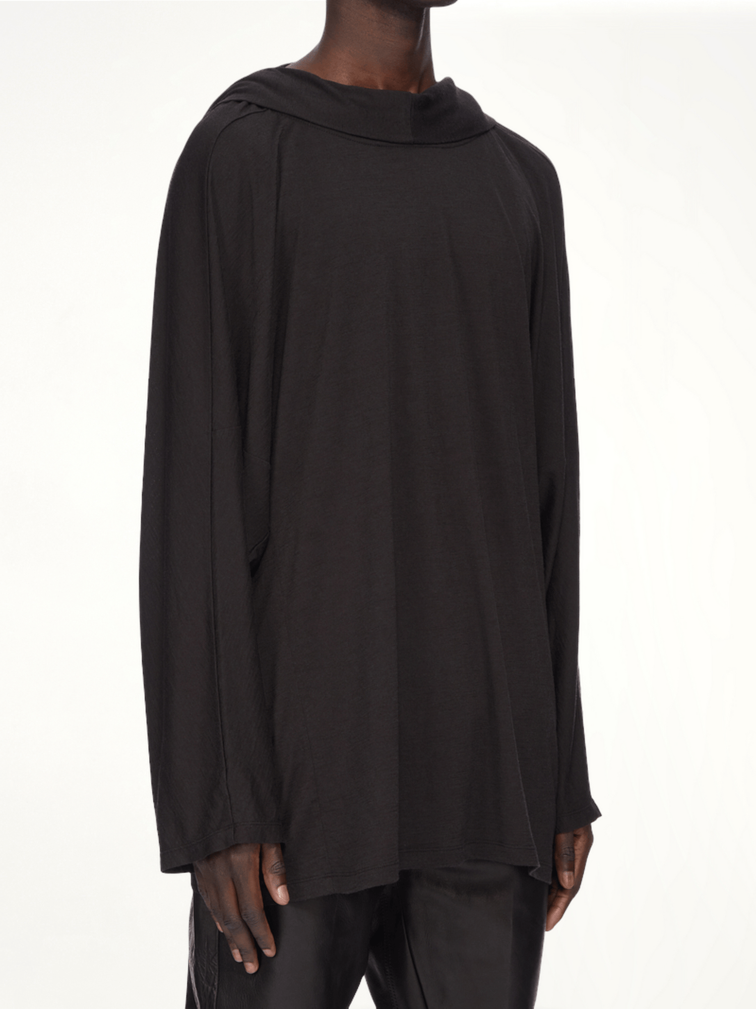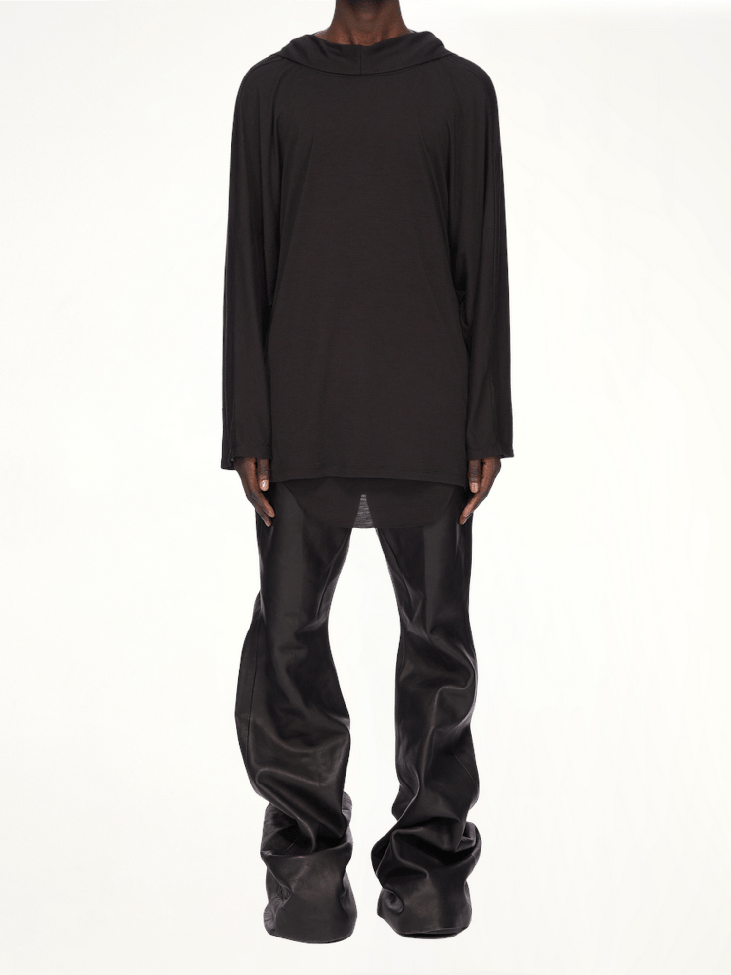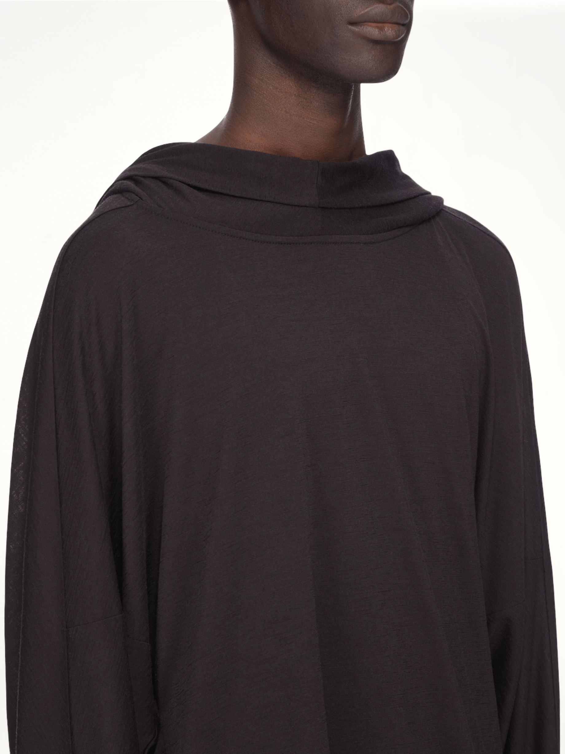 Rick Owens's Silk Wool Hooded Tunic in Black is a sophisticated blend of modern design and timeless elegance. This versatile piece is perfect for elevating any wardrobe with its unique silhouette and luxurious feel.