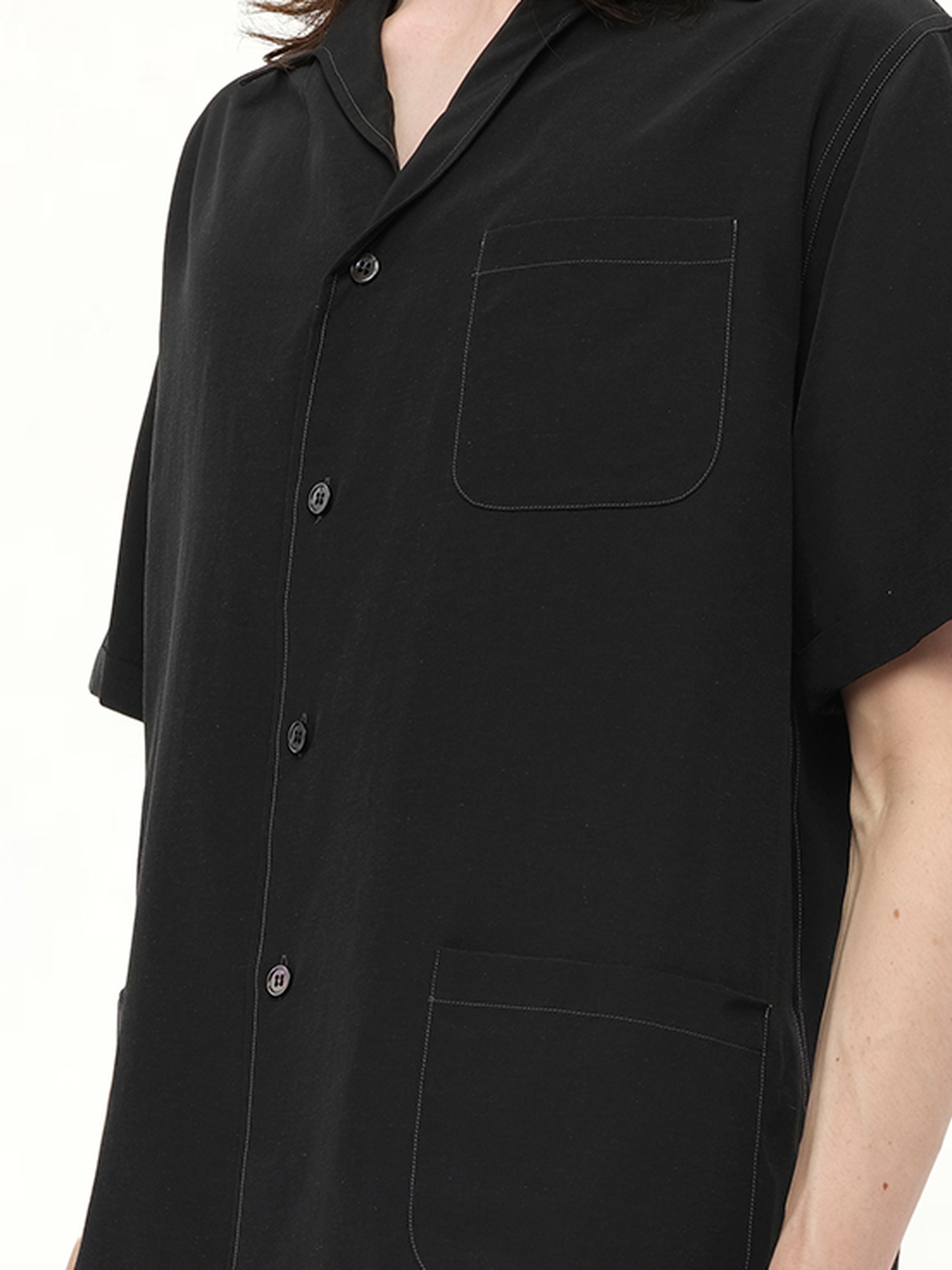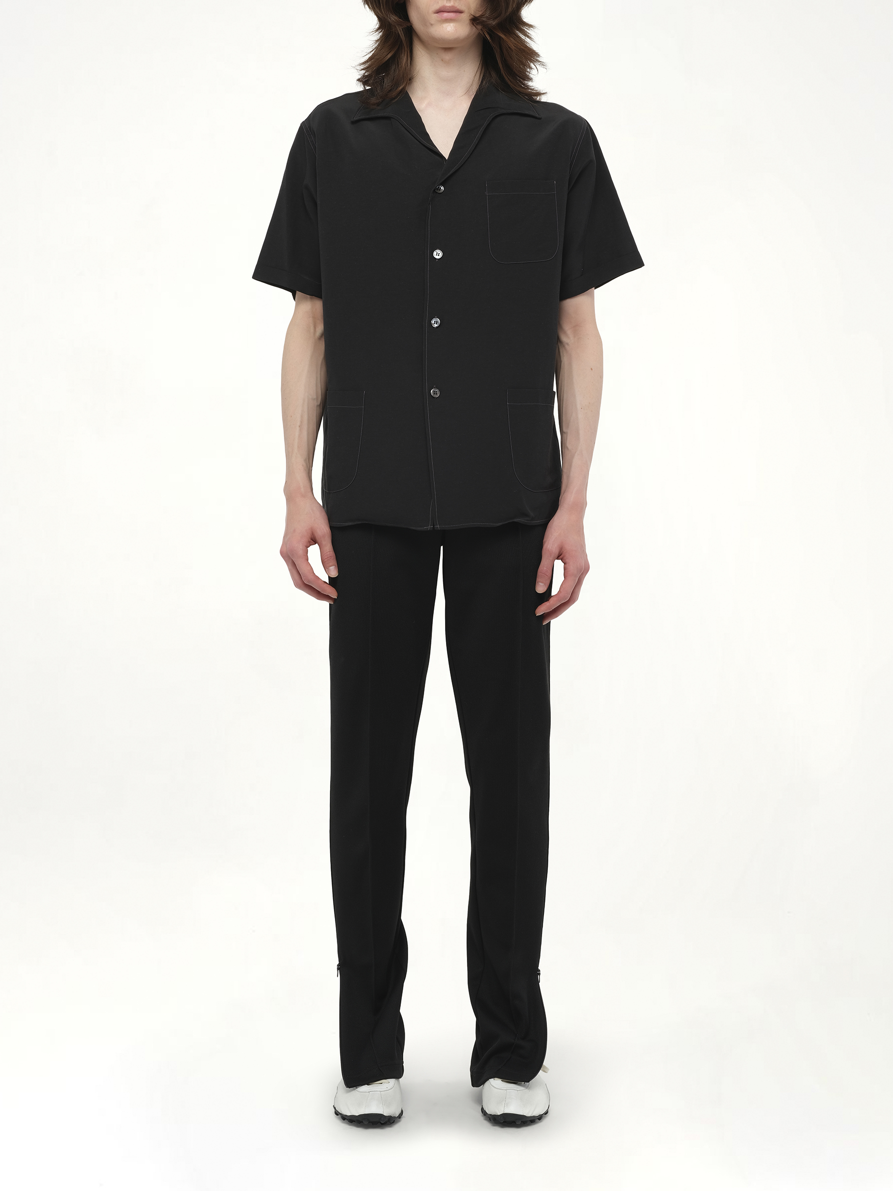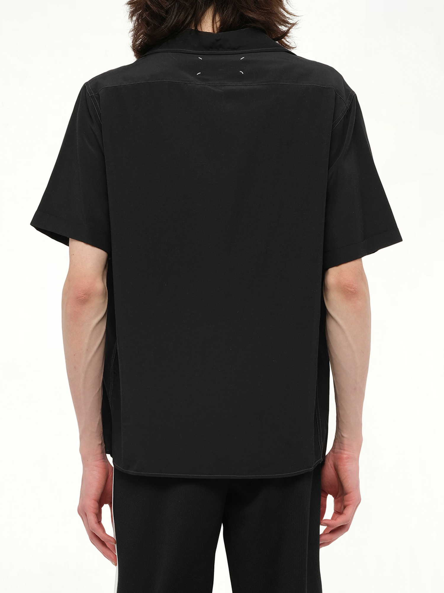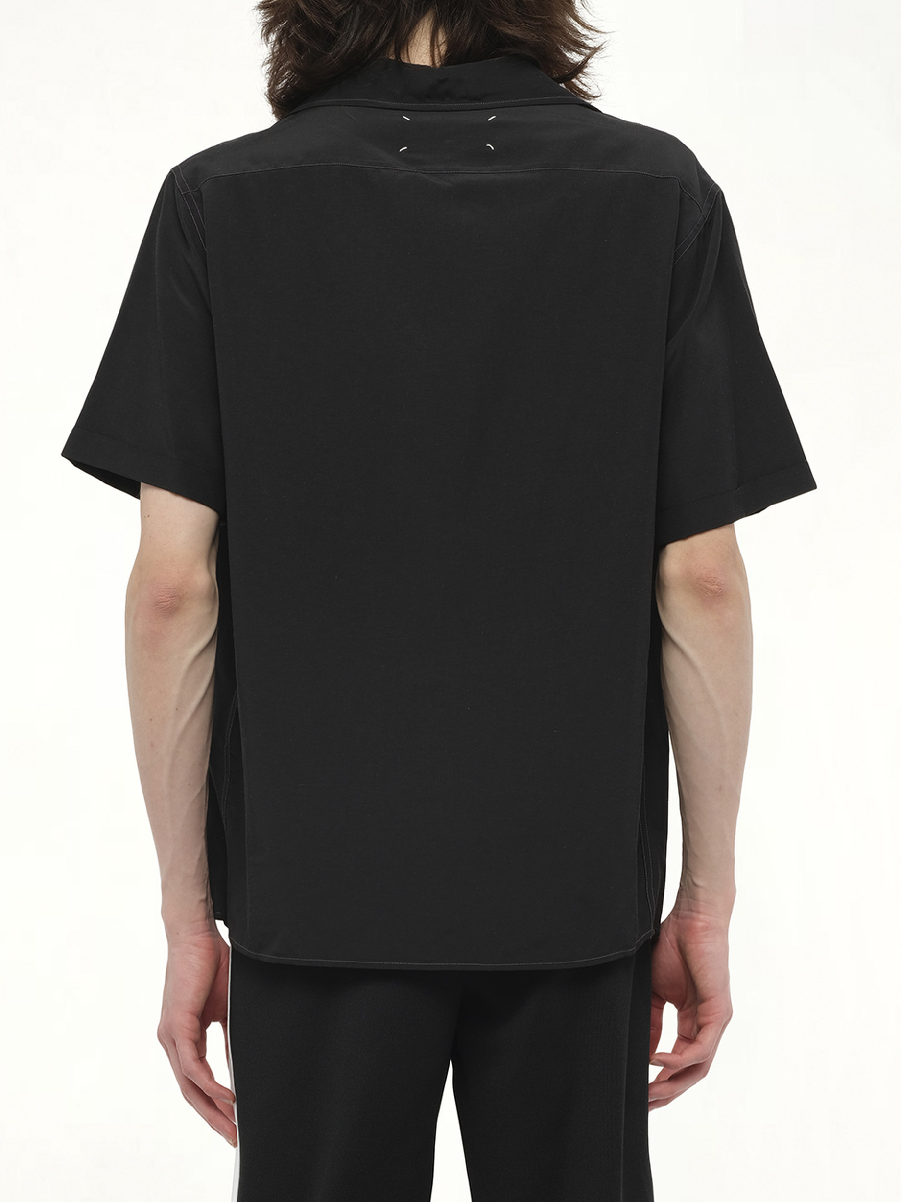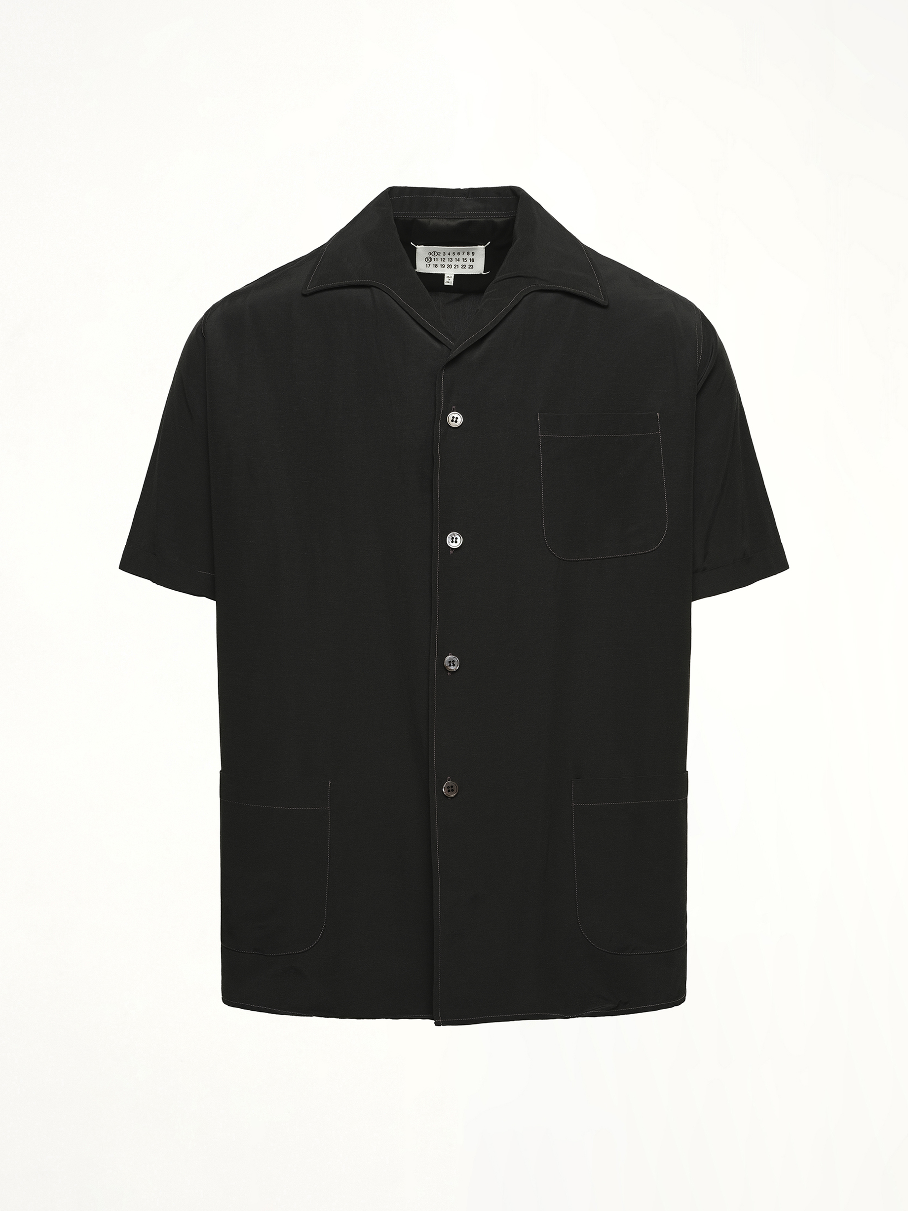 Maison Margiela's Soft Short Sleeve Shirt in Black is a versatile addition to any wardrobe, offering a sleek and modern silhouette. Perfect for both casual and formal occasions, this shirt is a testament to timeless style and comfort.