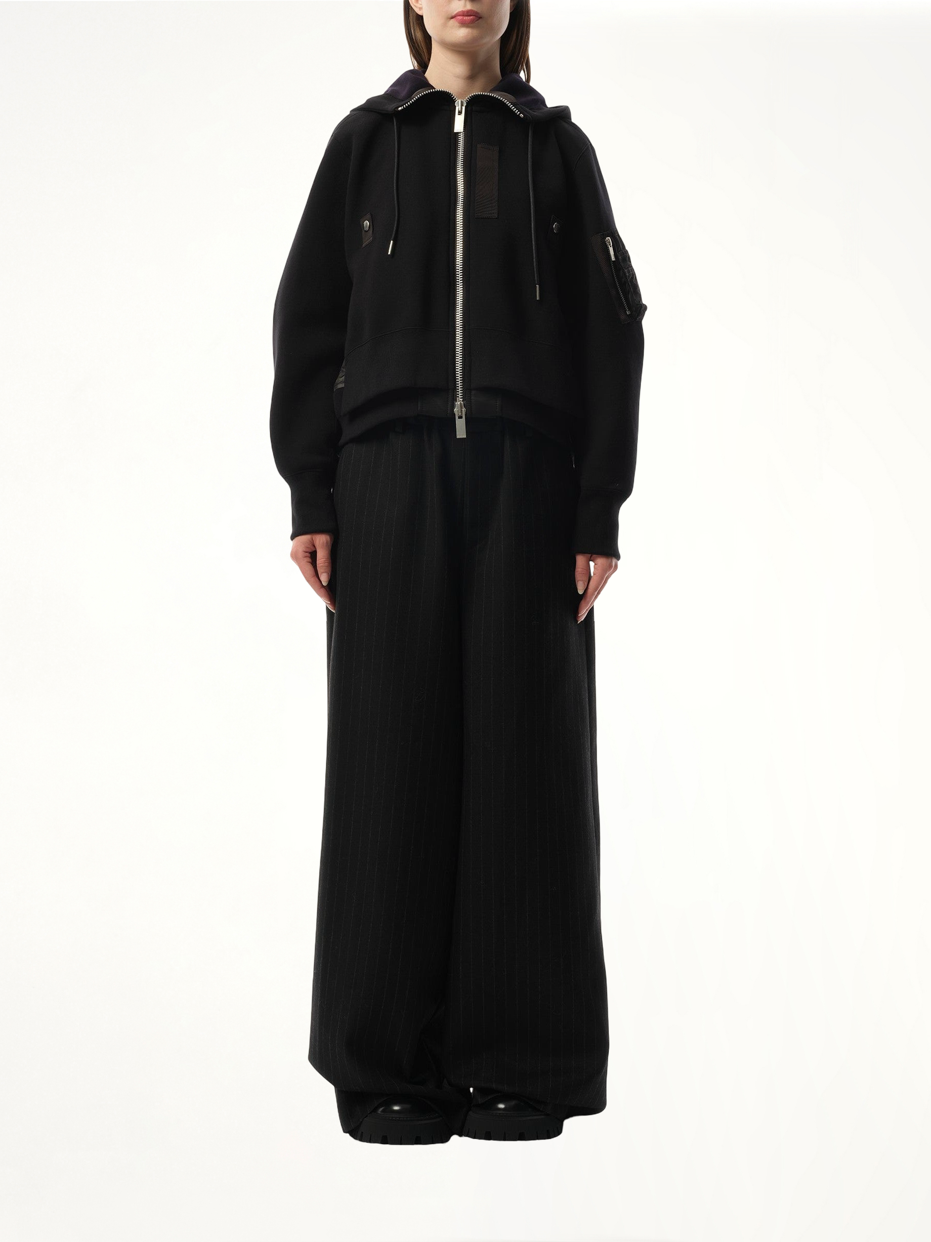 Sponge Sweat x Nylon Twill Zip Hoodie in Black