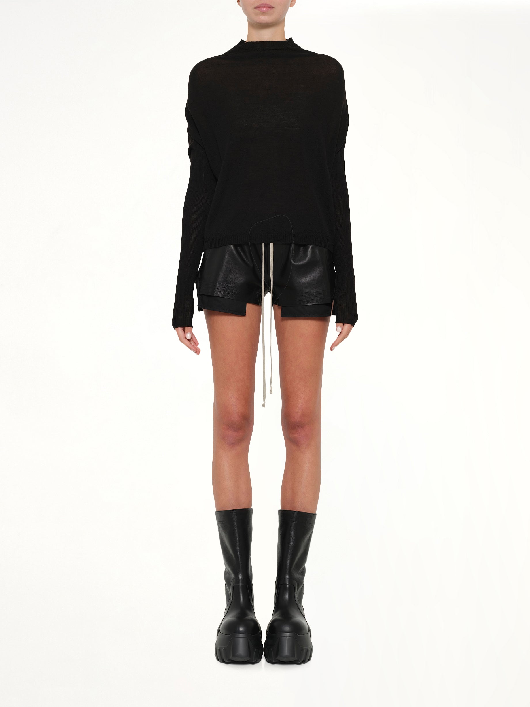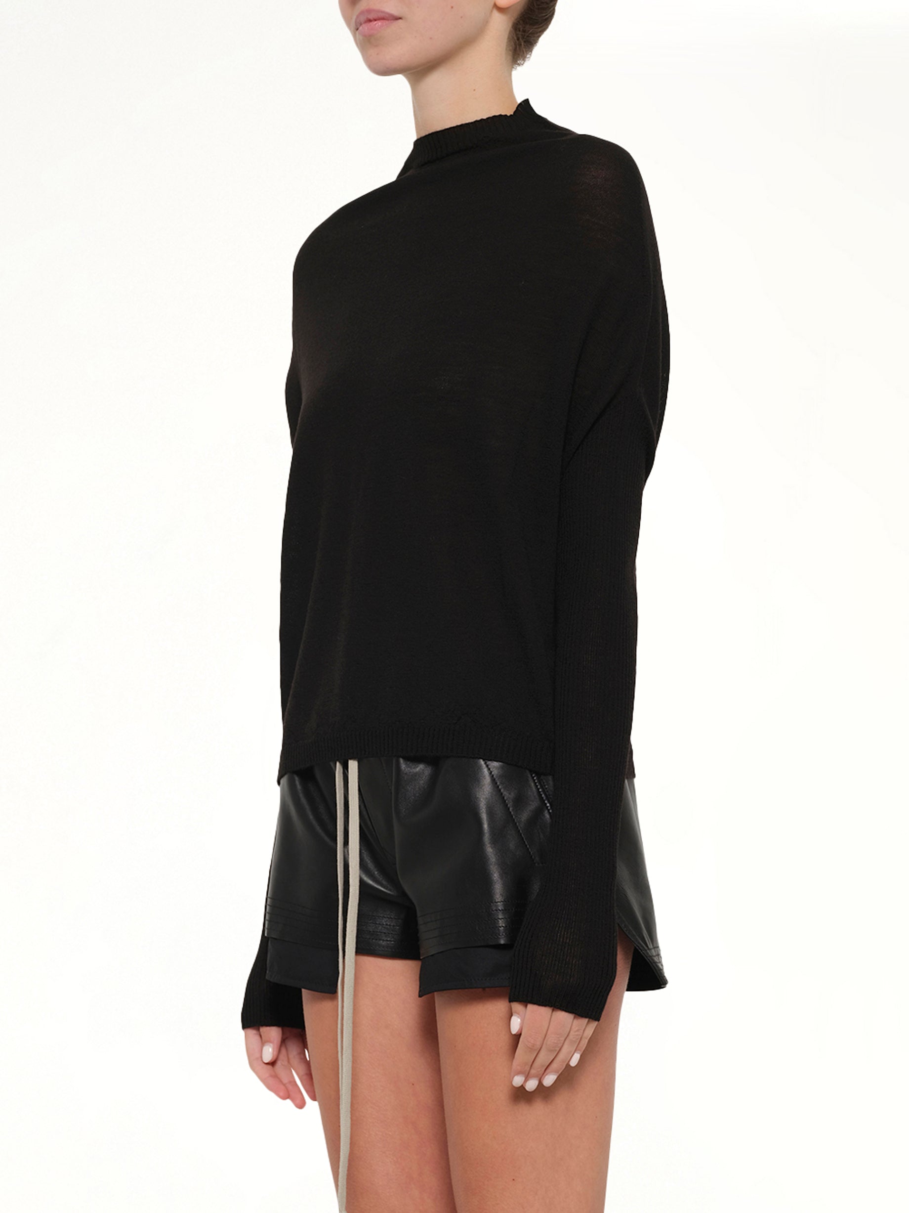 Rick Owens's Crater Knit in Black is a striking piece that embodies the designer's avant-garde aesthetic. This knitwear offers a unique silhouette, perfect for those who appreciate bold fashion statements.