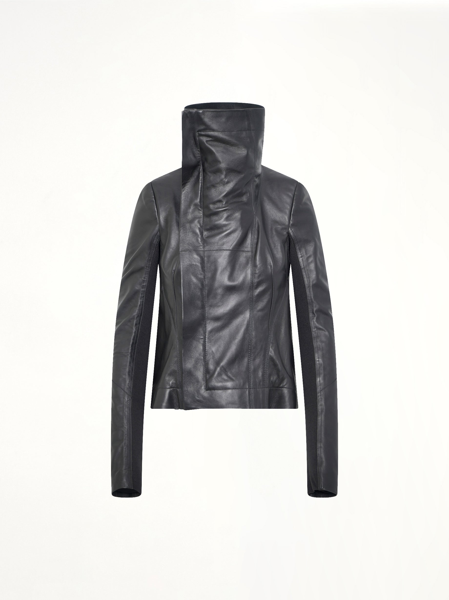 Rick Owens's Naska Biker in Black is a striking piece that combines avant-garde design with a classic biker silhouette. This jacket is a testament to Owens's signature style, featuring unique tailoring and a bold aesthetic.
