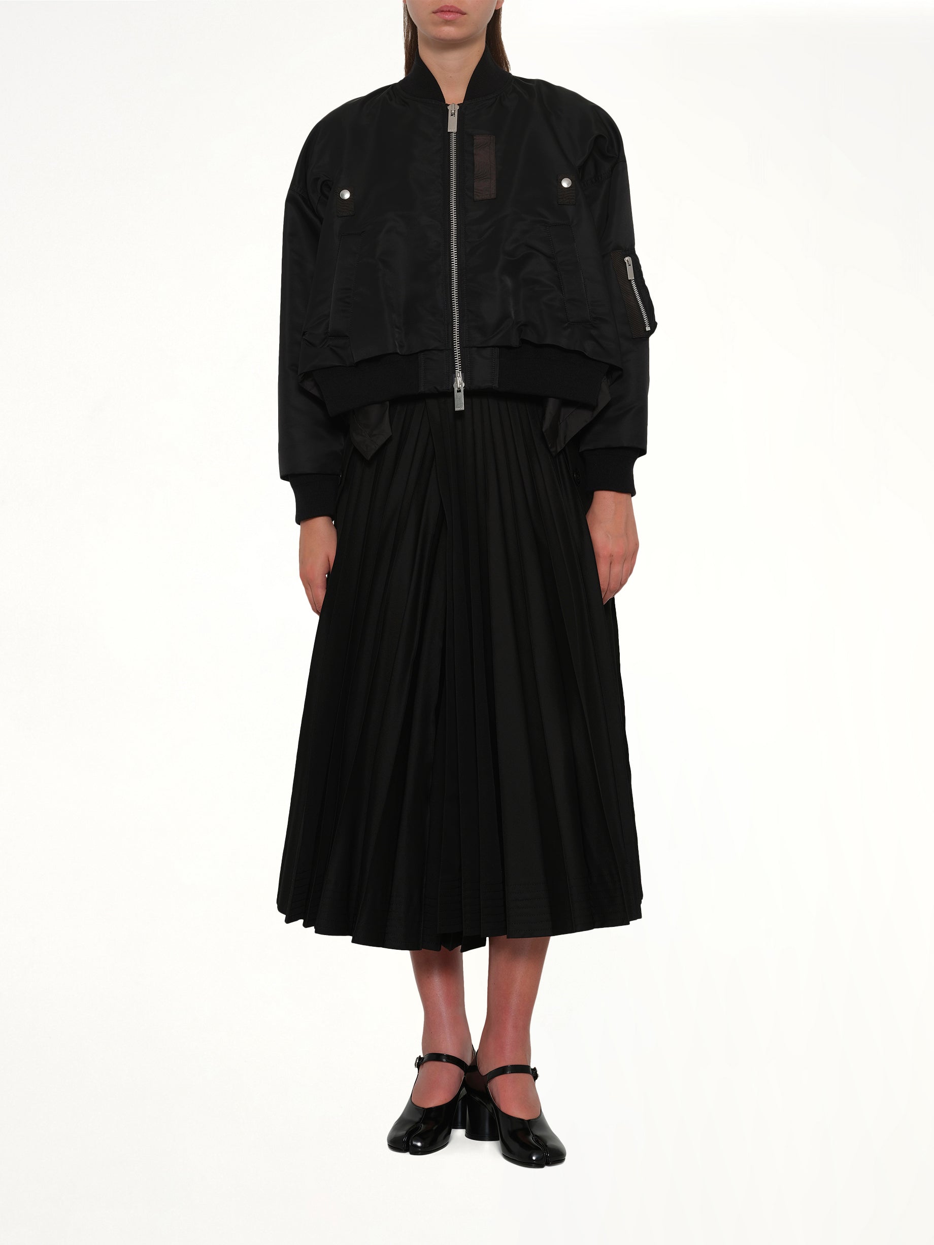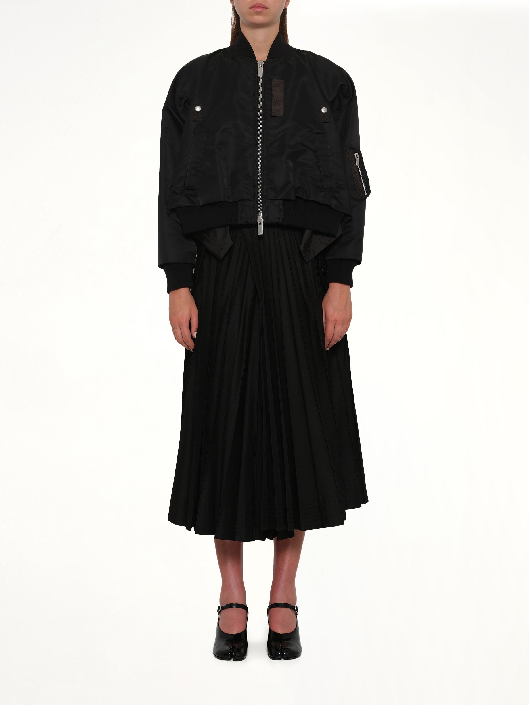 Sacai's Nylon Twill Blouson in Black is a versatile outerwear piece that combines functionality with a modern aesthetic. Designed with attention to detail, this blouson offers a sleek silhouette perfect for any wardrobe.