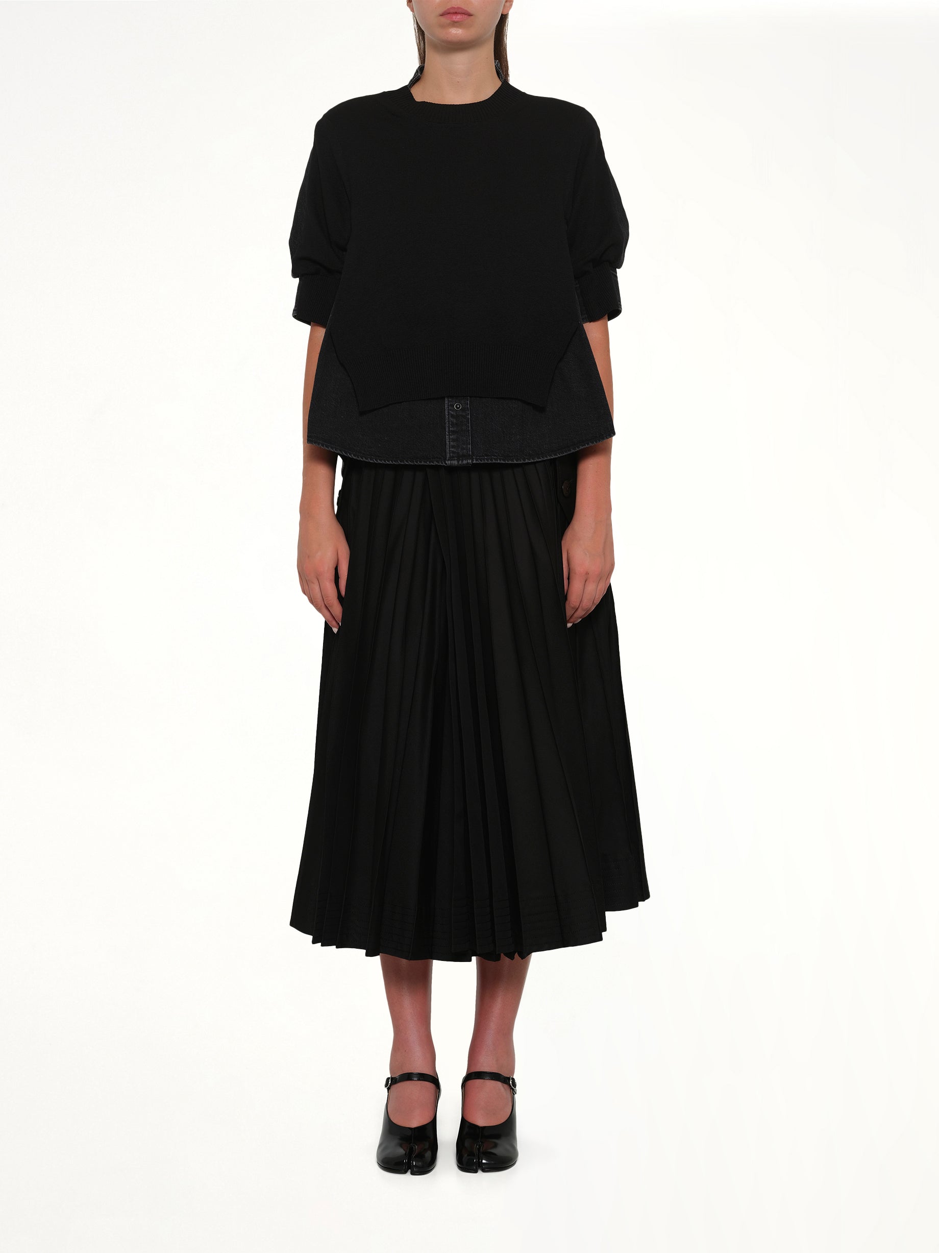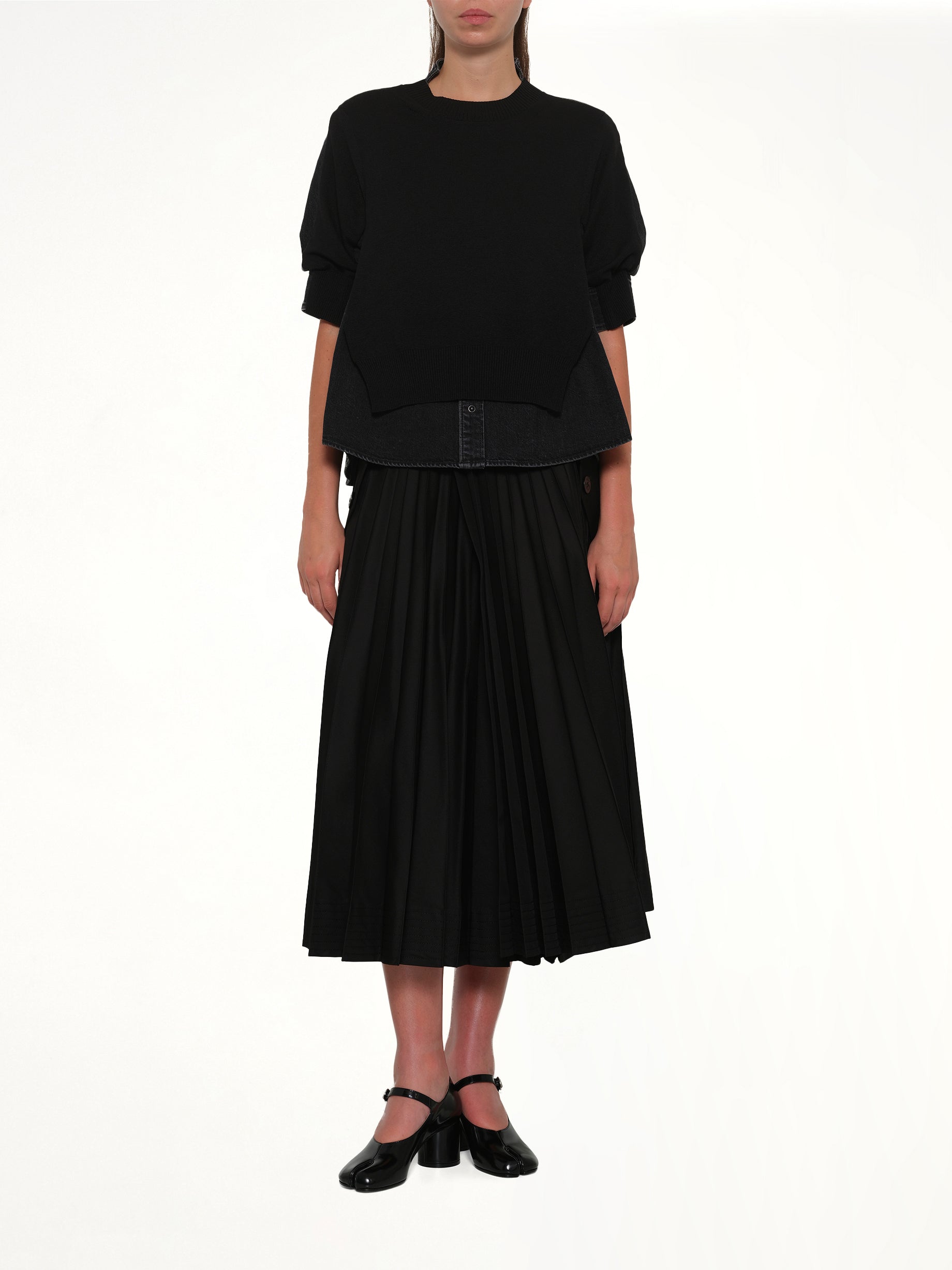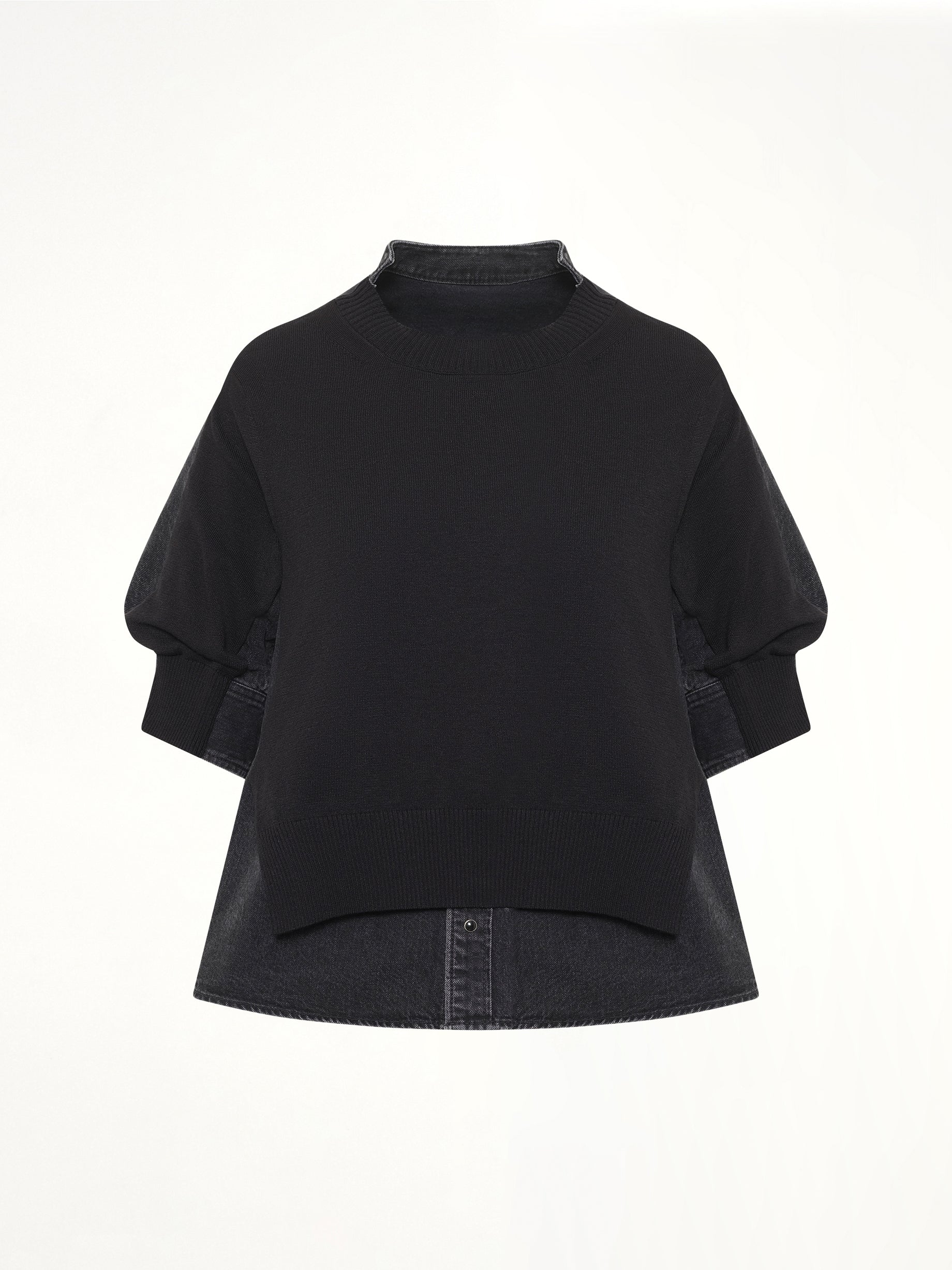 Denim x Knit Pullover in Black