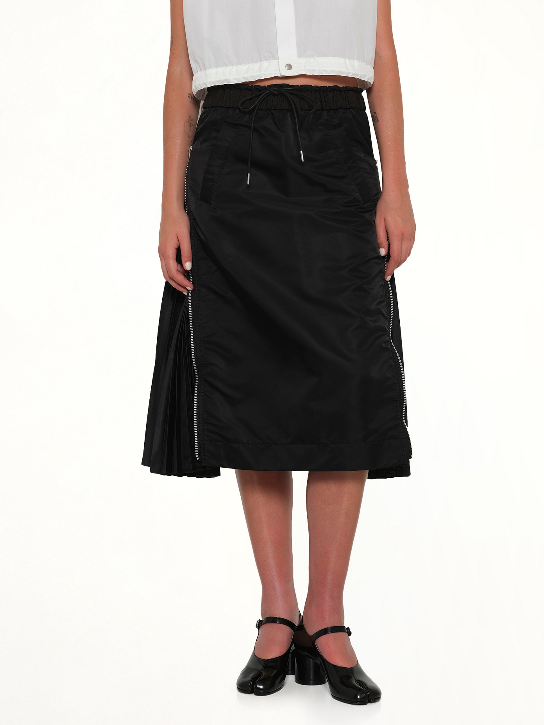 Sacai's Nylon Twill Skirt in Black is a versatile and stylish piece that effortlessly combines modern design with classic elegance. Perfect for both casual and formal occasions, this skirt is a must-have addition to any wardrobe.